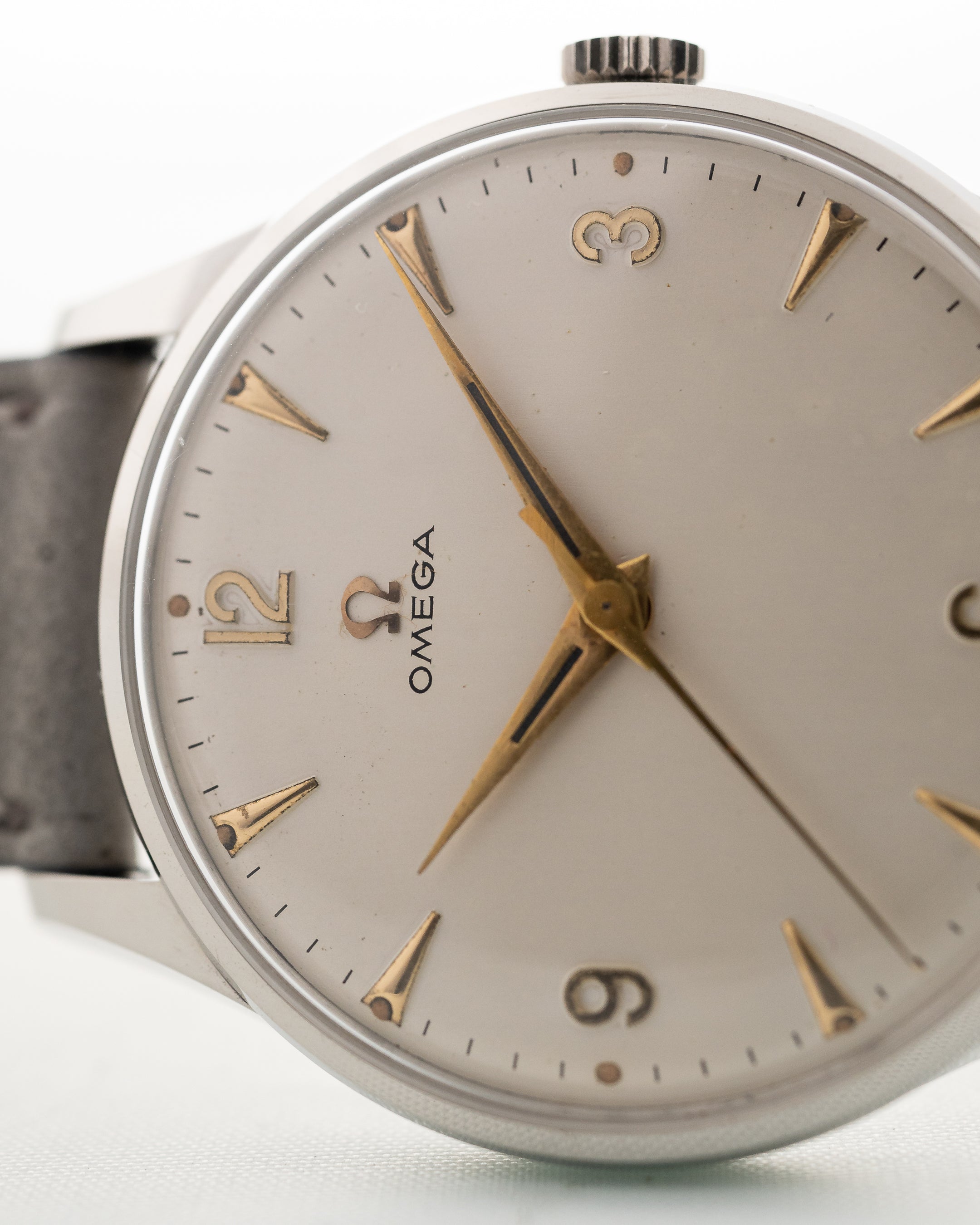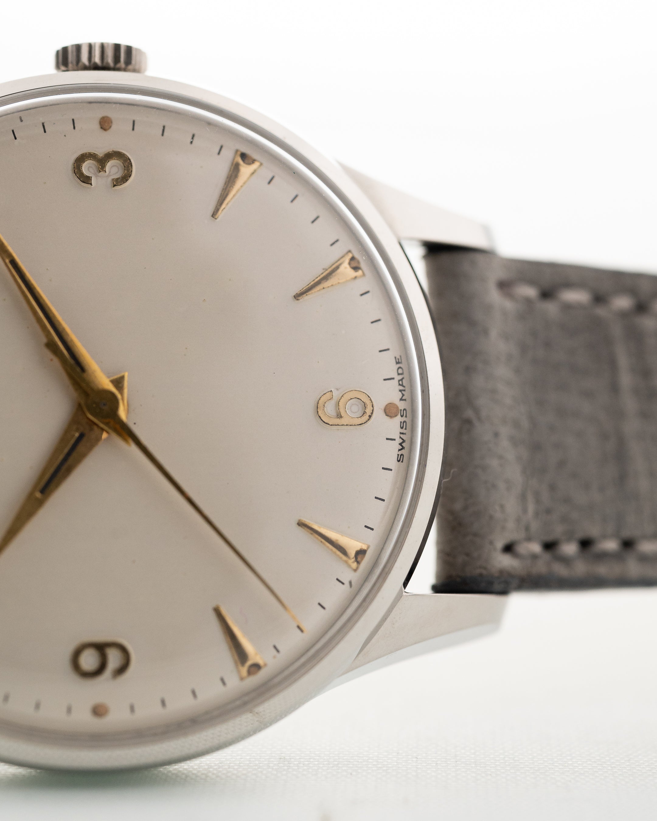 This example is not only good-looking, but substantial, too. Fitted with a 35 mm steel case, beautiful down turned lugs, and with a gorgeous cream dial with arrow hour markers, you really can't beat this watch.