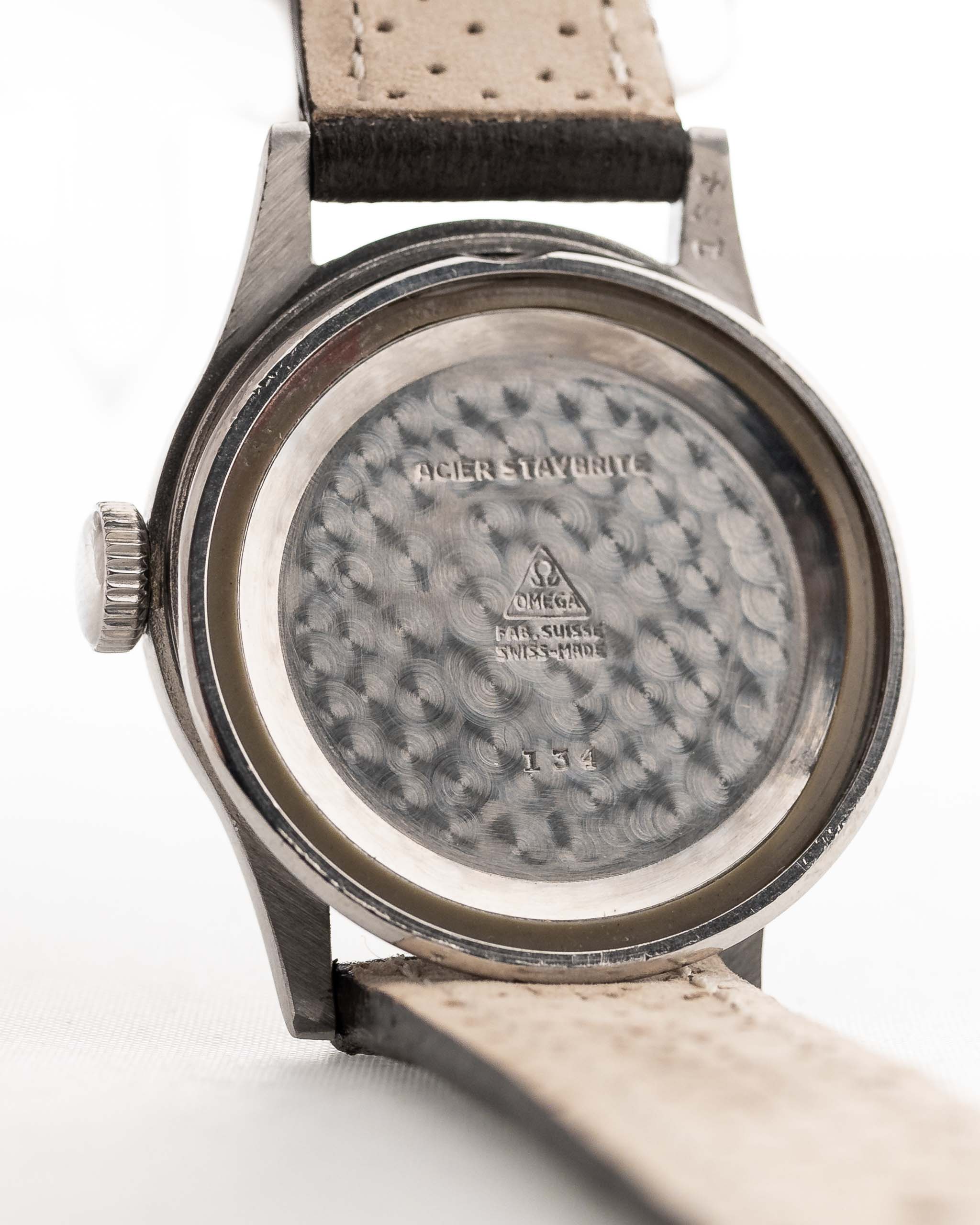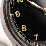 Finding an Omega from the 30s in great condition is difficult, but to find one with a beautiful black glossy dial with golden Arabic numerals and matching syringe hands is nearly impossible.