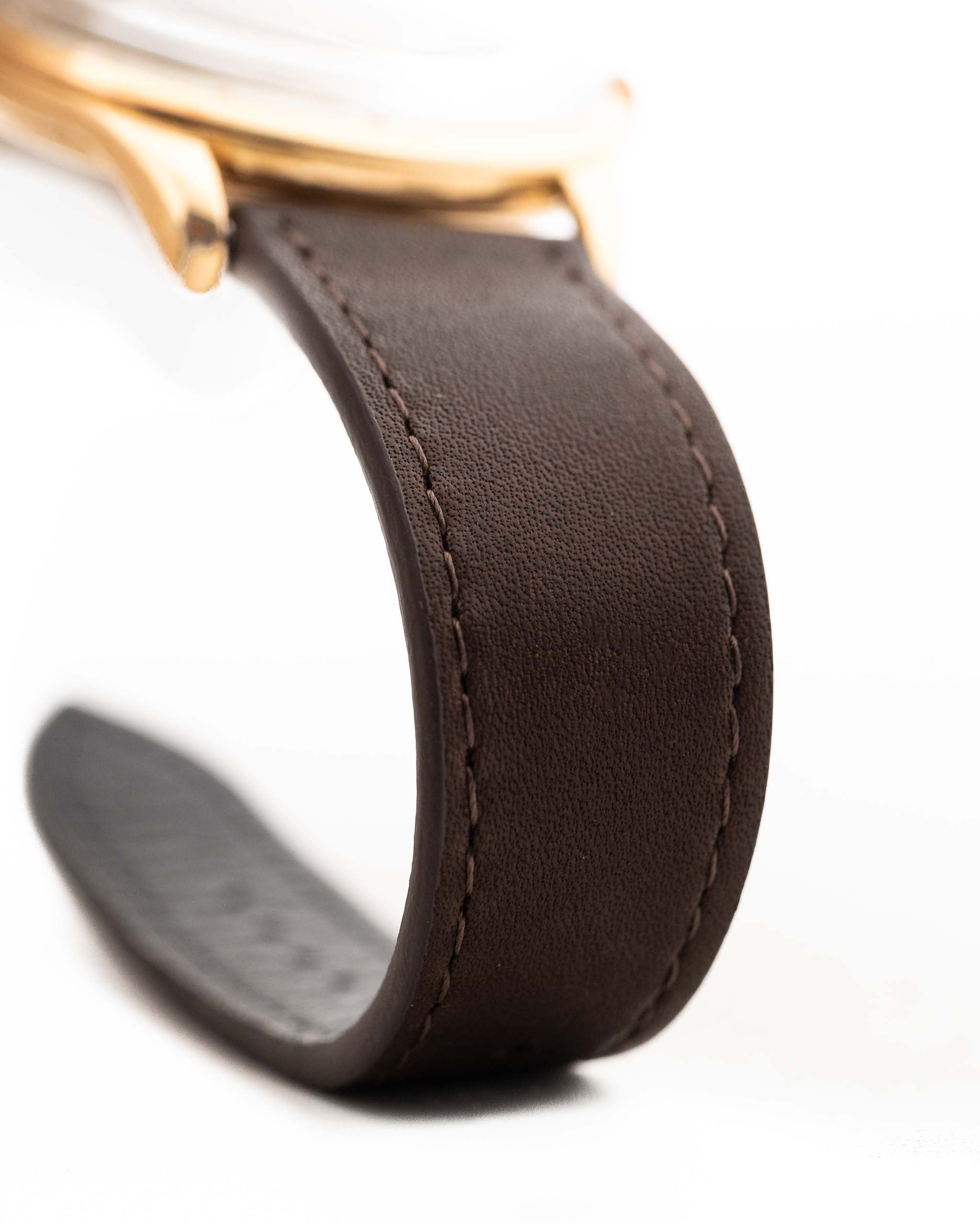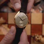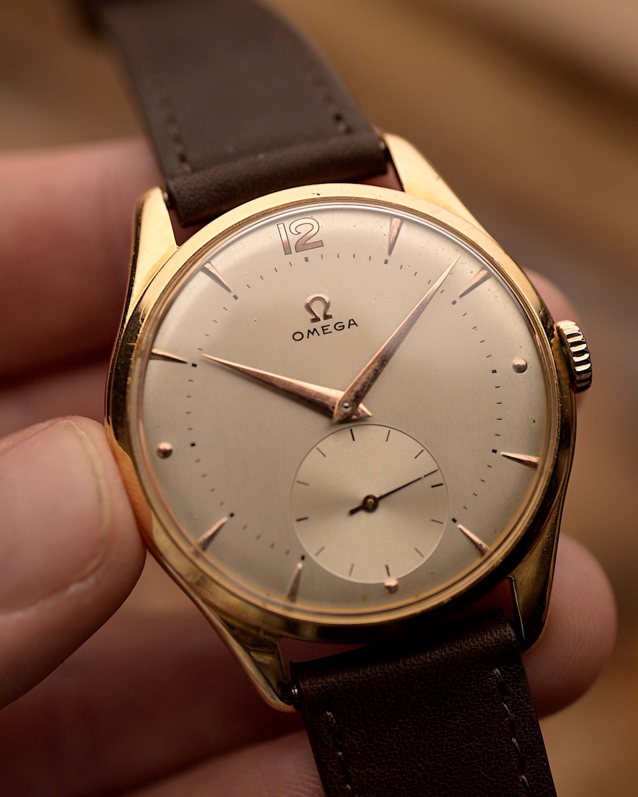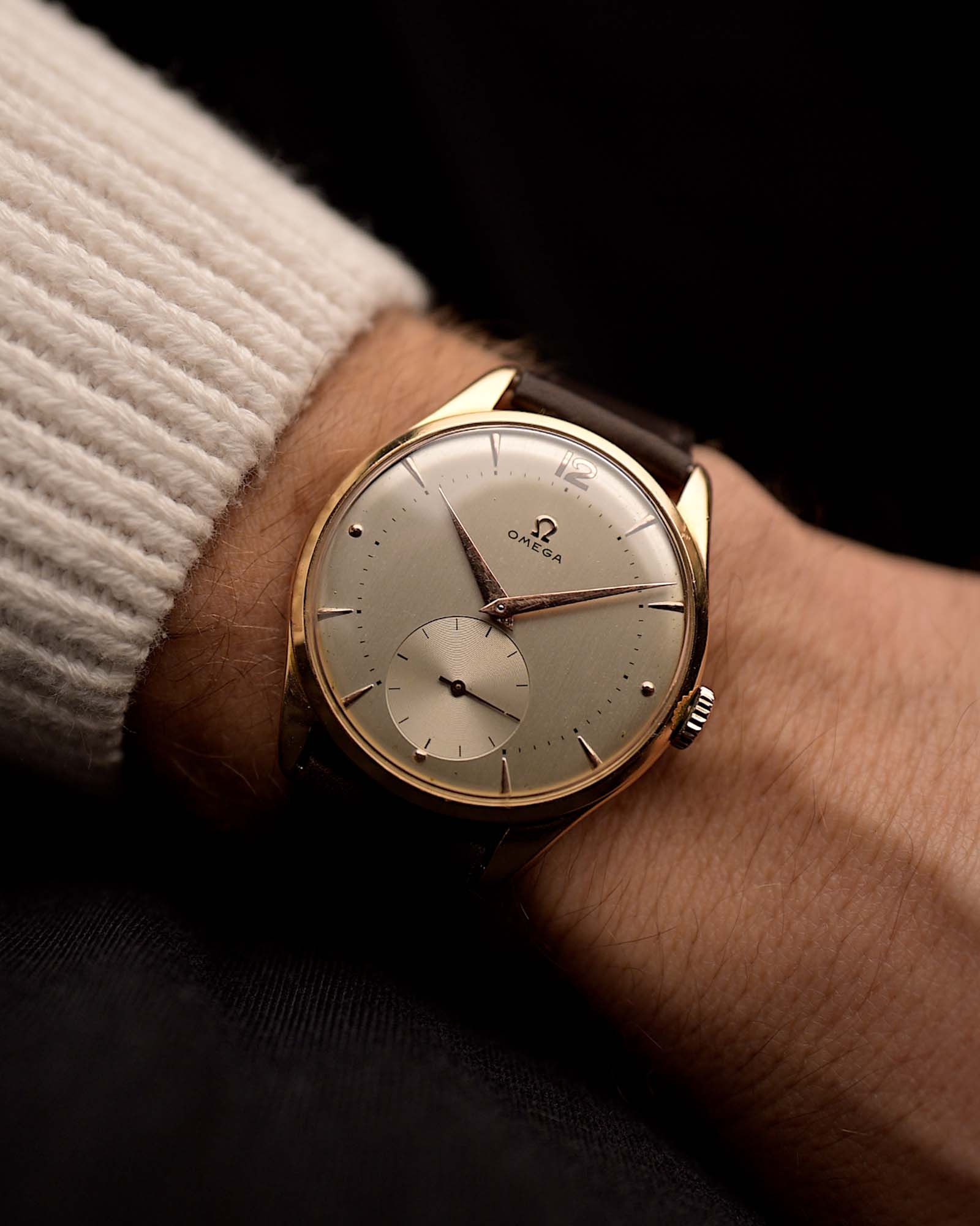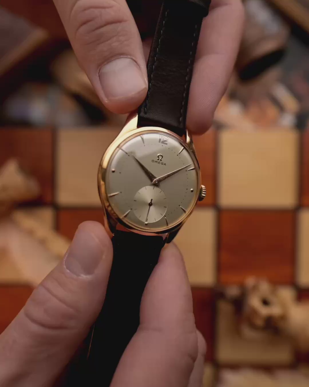 This Omega Ref. 2620 from 1947 is a striking example of the brand’s mid-century elegance, defined by clean geometry, refined details, and beautifully balanced proportions. The Jumbo 38 mm 18k rose gold case— large for its era — gives the watch a confident yet understated presence on the wrist.