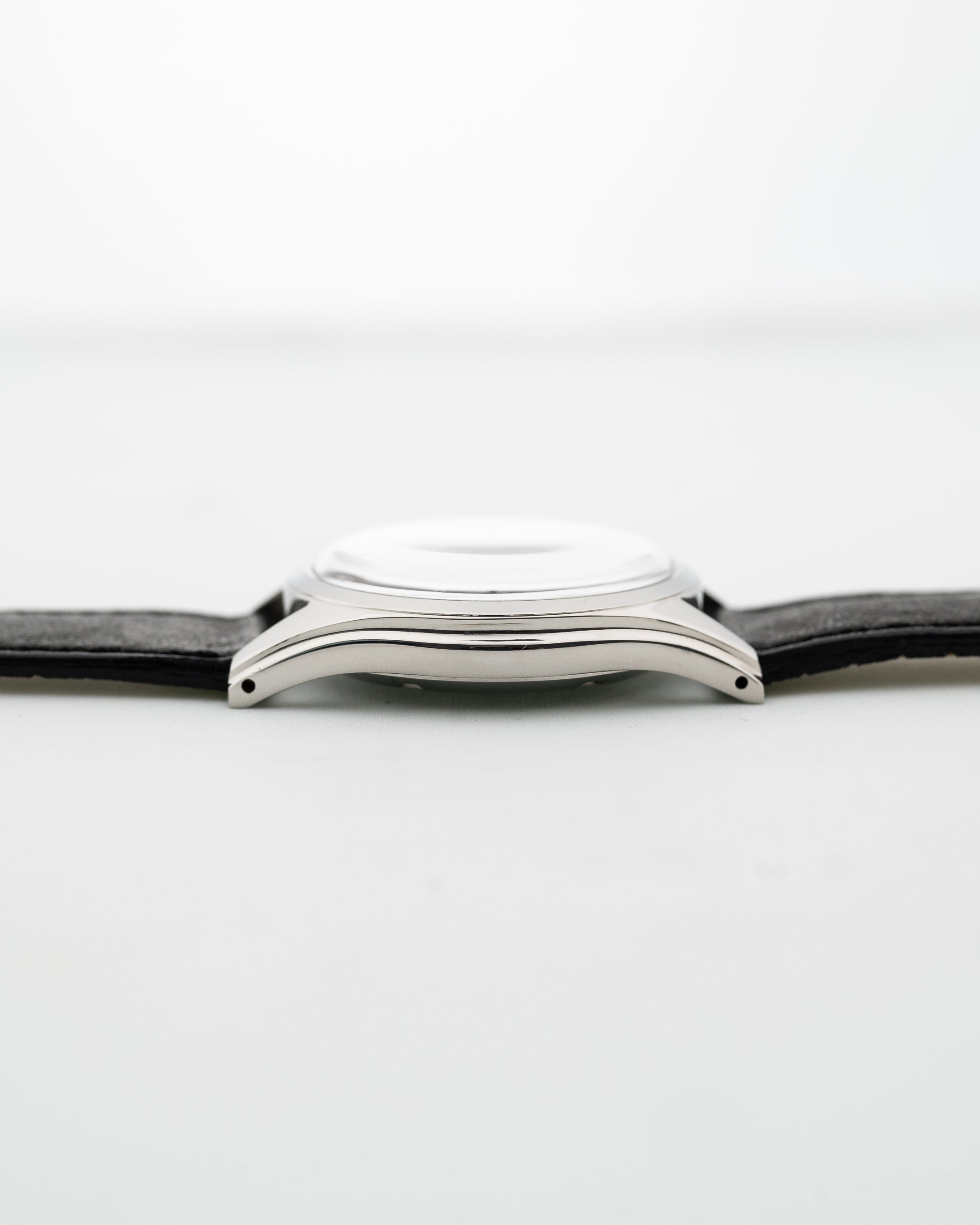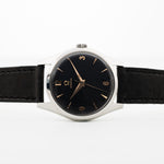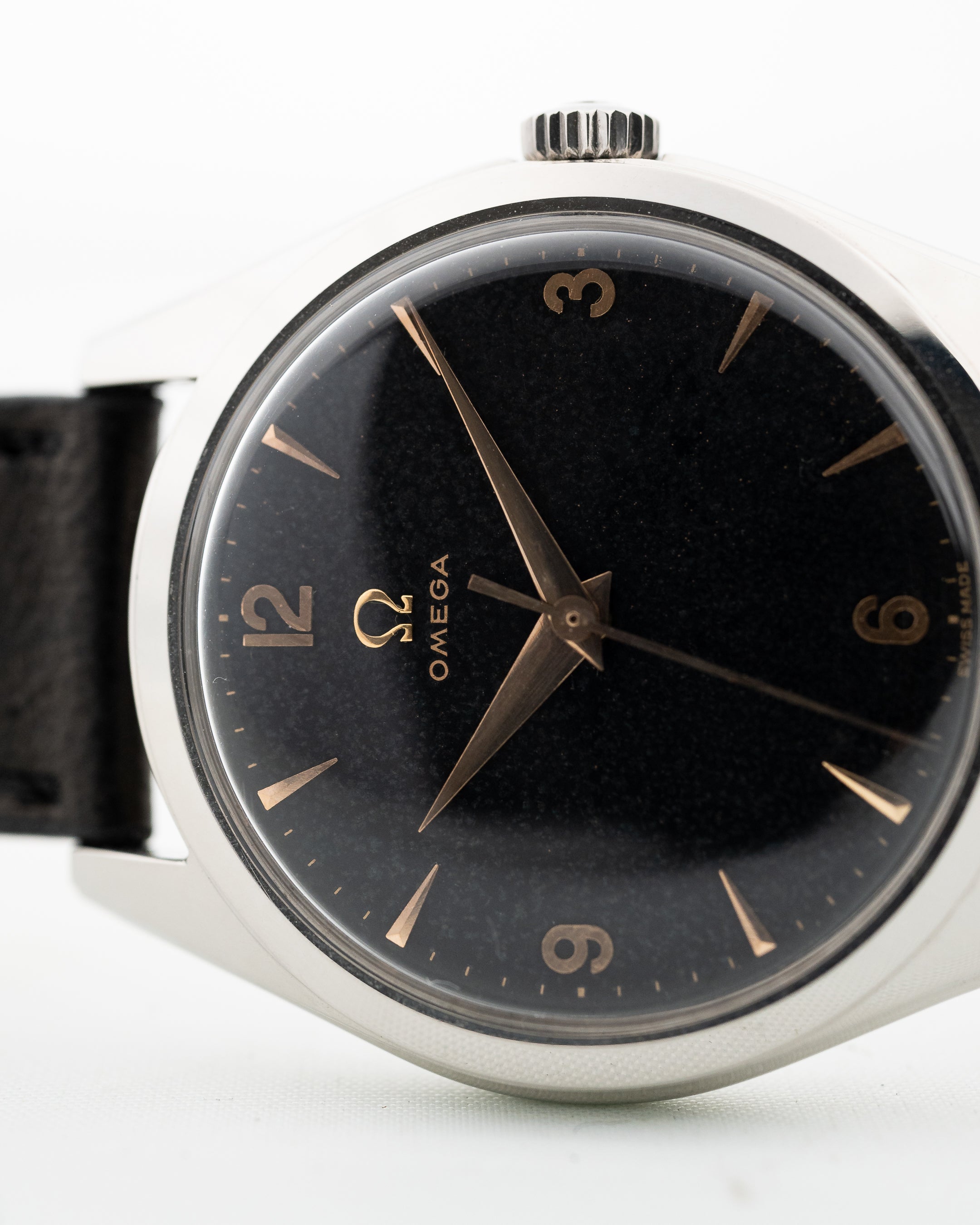 The 1950s was a good time for Omega, as exemplified in this dress watch. This example is not only good-looking, but substantial, too. Fitted with an oversized 36mm steel case, down-turned lugs, and with a gorgeous matt black dial, you really can't beat this watch. The dial has aged beautifully and it features Arabic numerals and a rose gold hour markers and hands, further stepping up this watch's dress game a notch.