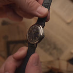 This exceptional Omega from 1949 is a rare survivor from the late 1940s, featuring an midsized 32.5 mm stainless steel case and a striking Railroad dial with radium numerals and handset. The bold, military-inspired layout gives the watch strong field-watch character while retaining classic Omega elegance.