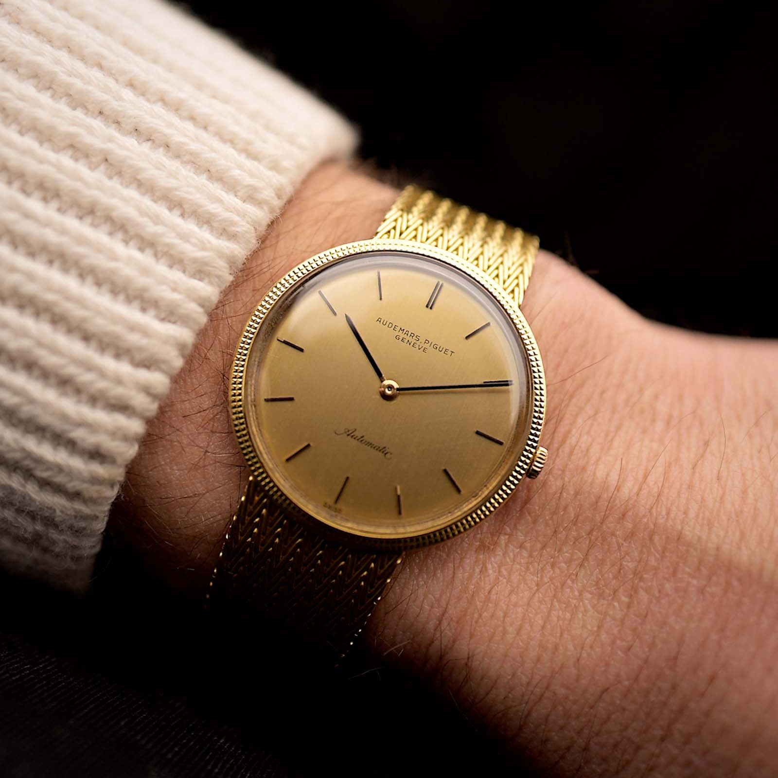 Dating to before the De Ville left the Seamaster family, this example features a 18k yellow gold case in fantastic unpolished condition and a 18k Omega bracelet in near unworn condition with an adjustable clasp.
