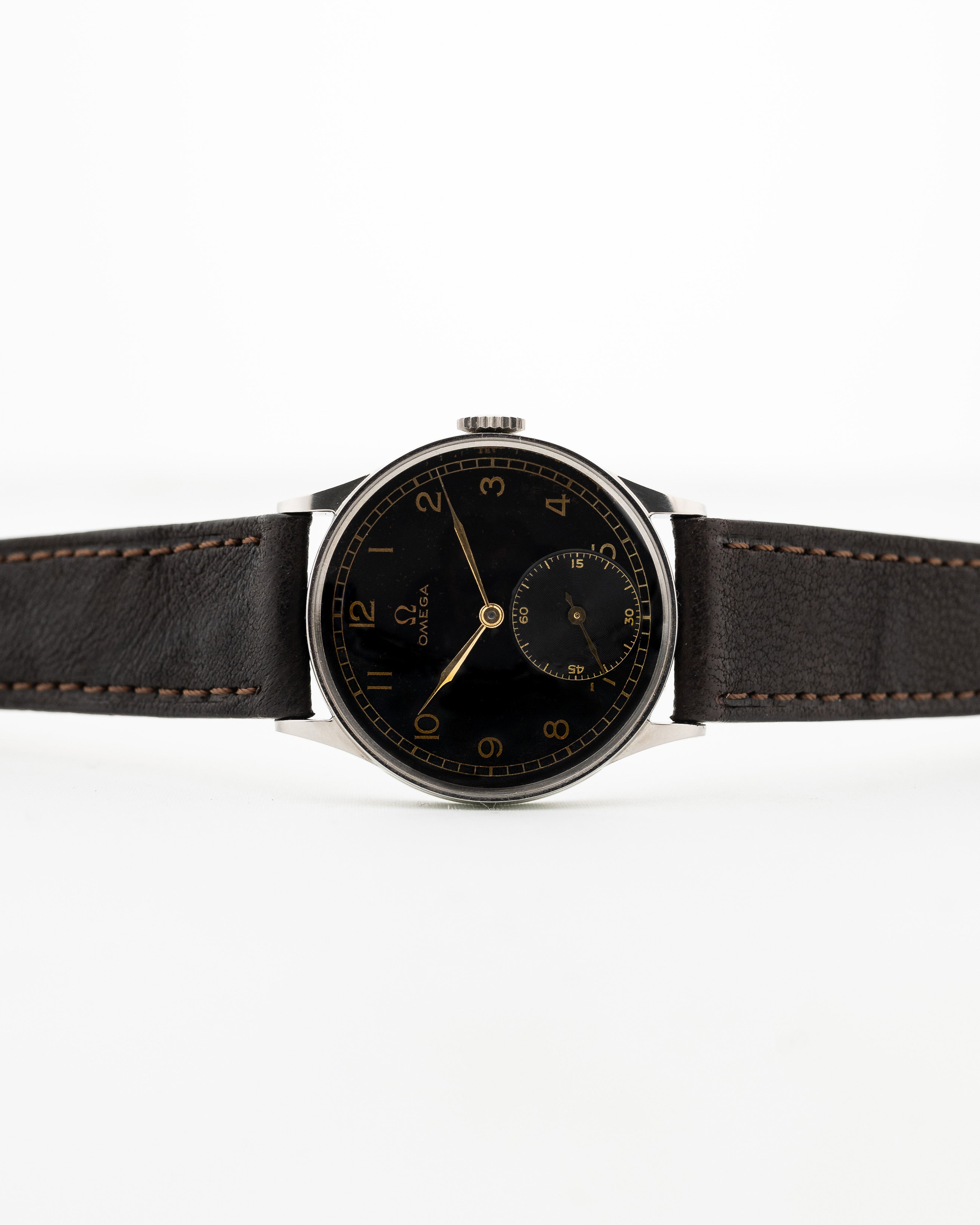Fitted with a 33 mm steel case, straight lugs, and with a gorgeous black dial, you really can't beat this watch. The gilt dial has aged beautifully, and it features Arabic numerals, a subsidiary seconds dial and syringe hands further stepping up this watch's dress game a notch.