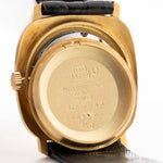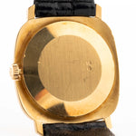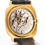 Patek Philippe 3543 Square Roman from the 1970s on a wrist. 31mm in 18k Yellow Gold with Manual wind movement, Golden sunburst dial and Original Leather strap.