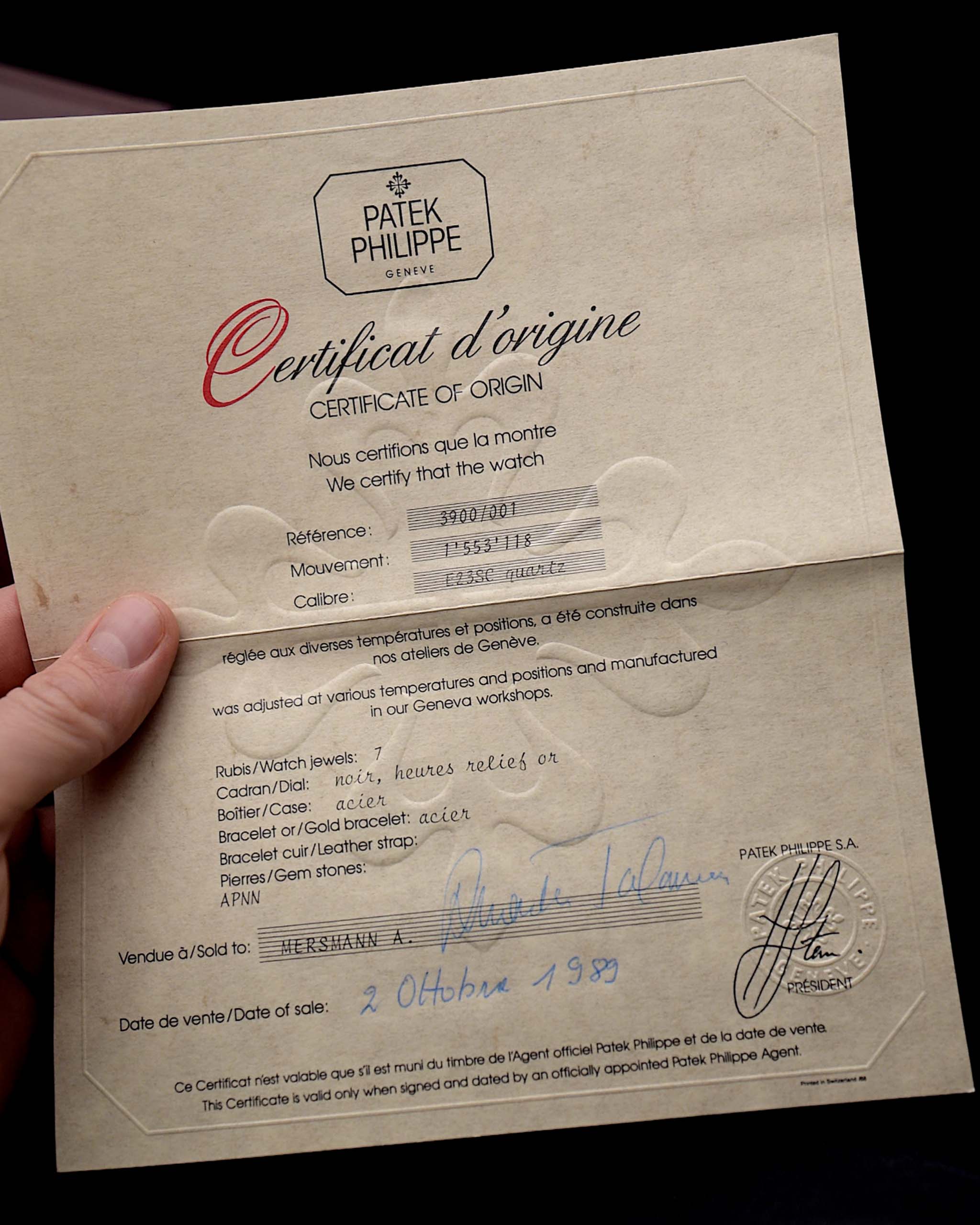 The best part of this particular piece that comes with the original Patek Philippe certificate from the first purchase in Lugano Switzerland from 2nd October 1989.
