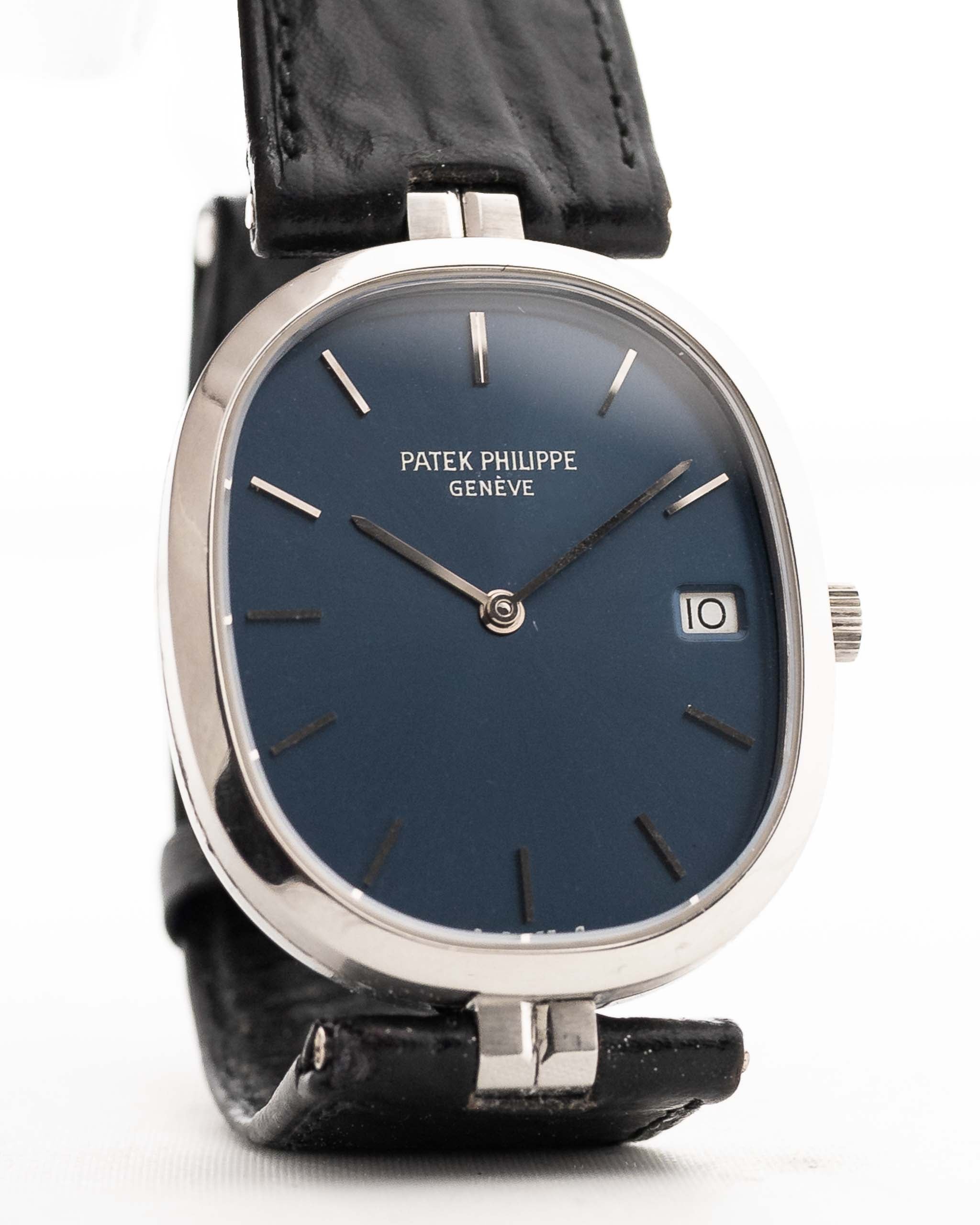 The deep blue sunburst sigma dial is untouched and flawless, displaying the clean minimalist design language that has defined the Ellipse since 1968. Balanced, refined, and unmistakably Patek, it pairs beautifully with the matching steel folding clasp.