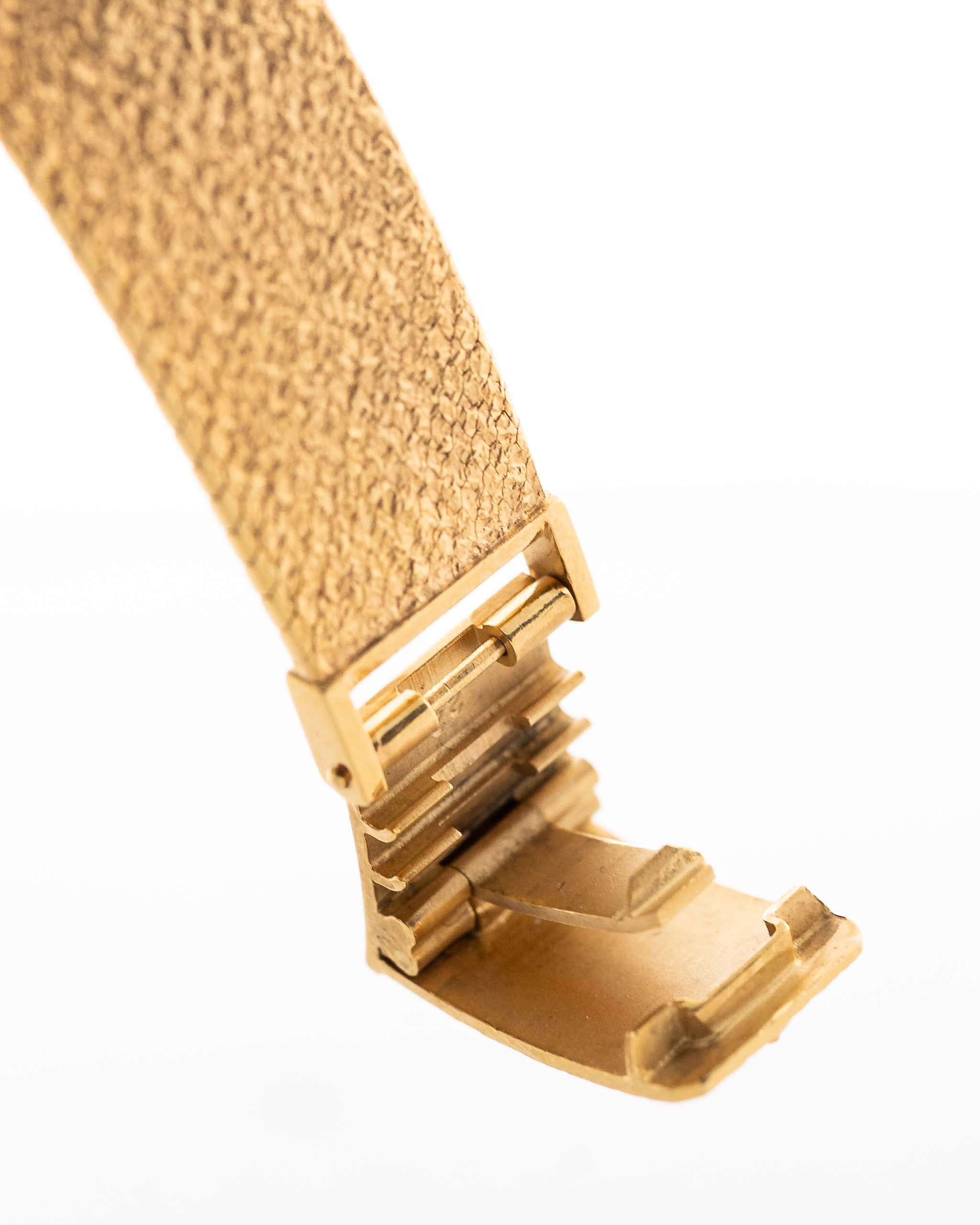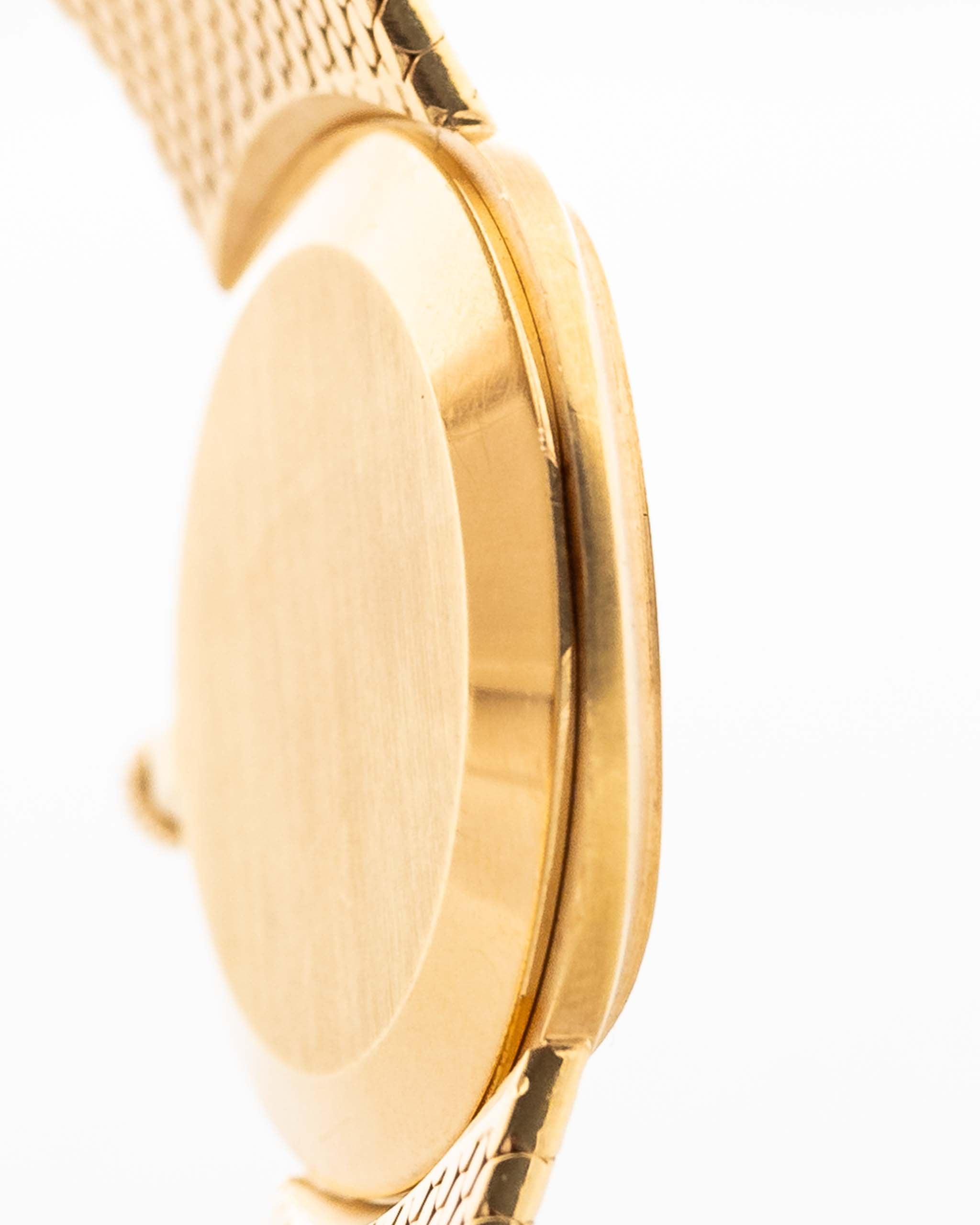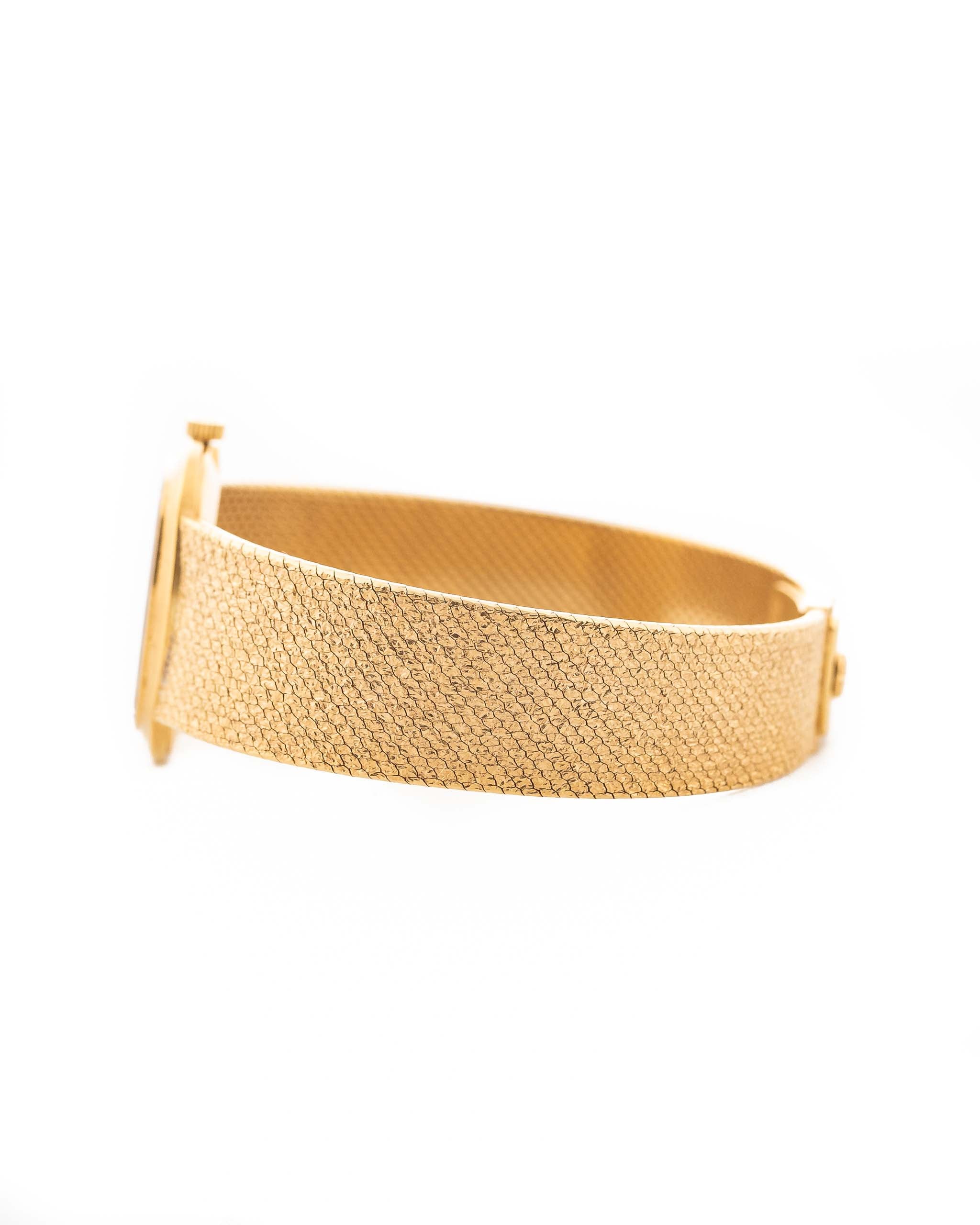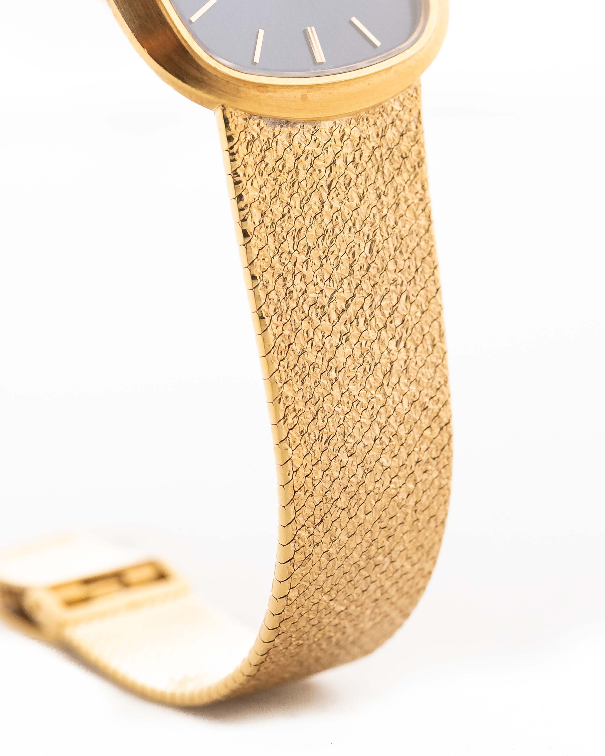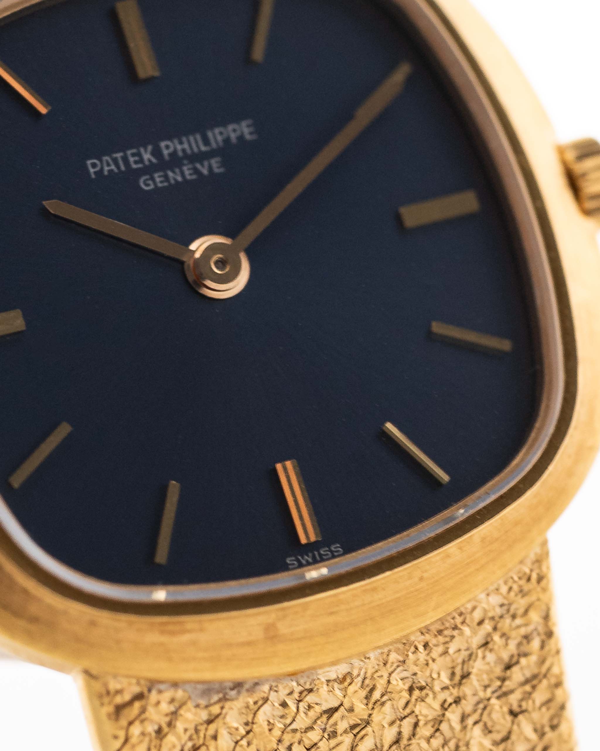 The icing on the cake, on this particular Patek Philippe is the integrated bracelet forged from 18k yellow gold in a very unique structure. Inside we find the reliable Patek Philippe manual wound caliber 175.