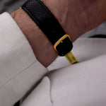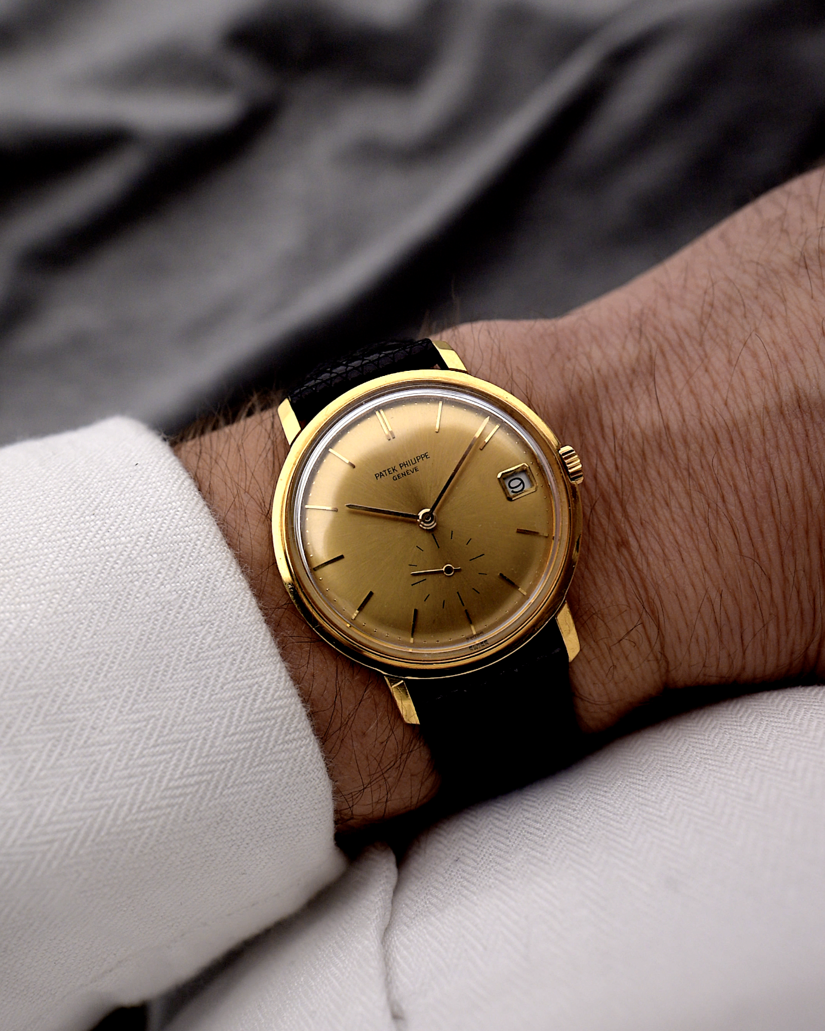 Patek kept all of the stylistic characteristics of a dress watch, which explains the elegant look of the 3445. With this reference, the crown is recessed into the yellow-gold case, further adding to the elegance of the watch. Similarly, the thin and long indexes bring an outstanding balance to the sunburst dial.