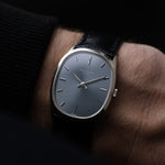The minimalist aesthetics of the oval-shaped case with simple onyx hour markers and hands have been in the company's collection since 1968.