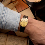 Its 18k yellow gold case is slim, sophisticated, and in superb condition. Powered by the manual-wind Caliber 175, this watch is not just a visual masterpiece but also a symbol of mechanical excellence. It comes complete with the original Patek Philippe gold buckle, making it a complete vintage treasure.