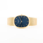 Our reference 3748 / 1 comes in outstanding condition and a stunning blue sigma sunburst dial with the Patek Philippe manual Cal. 215 including the original box and papers. Icing on the cake is the integrated 18k yellow gold bracelet.