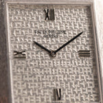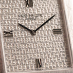 Vintage Patek Philippe Gondolo 3572 Watch Roman from the 1970s on a wrist. 26mm in 18k White Gold with Manual wind Caliber 175, Flawless hammered dial & White gold bracelet.