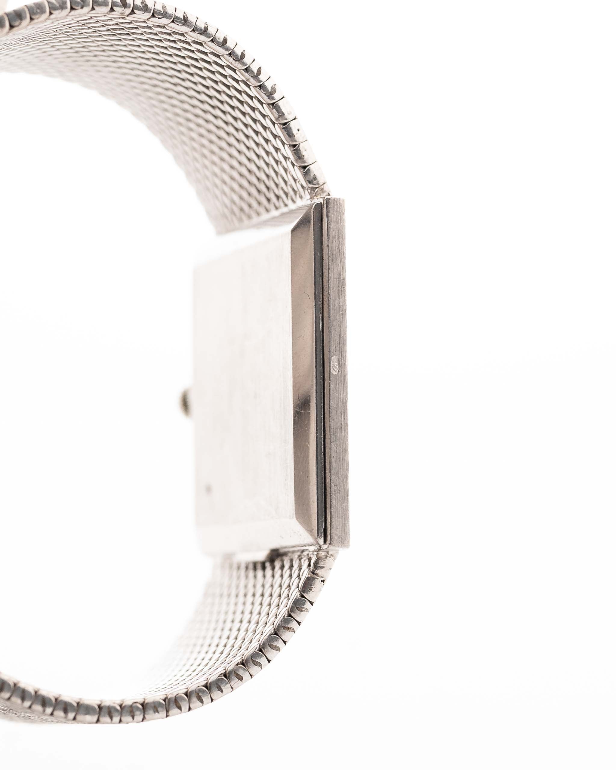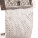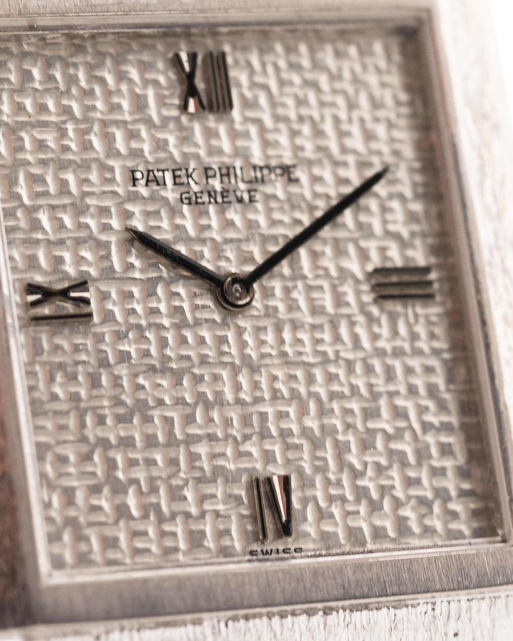 The Patek Philippe Gondolo Ref. 3572 is 1970s luxury visualized in a timepiece. Crafted entirely from 18k white gold, this piece blends minimalism with fine artistry — from the lug-less square case to the incredibly rare hammered gold dial.