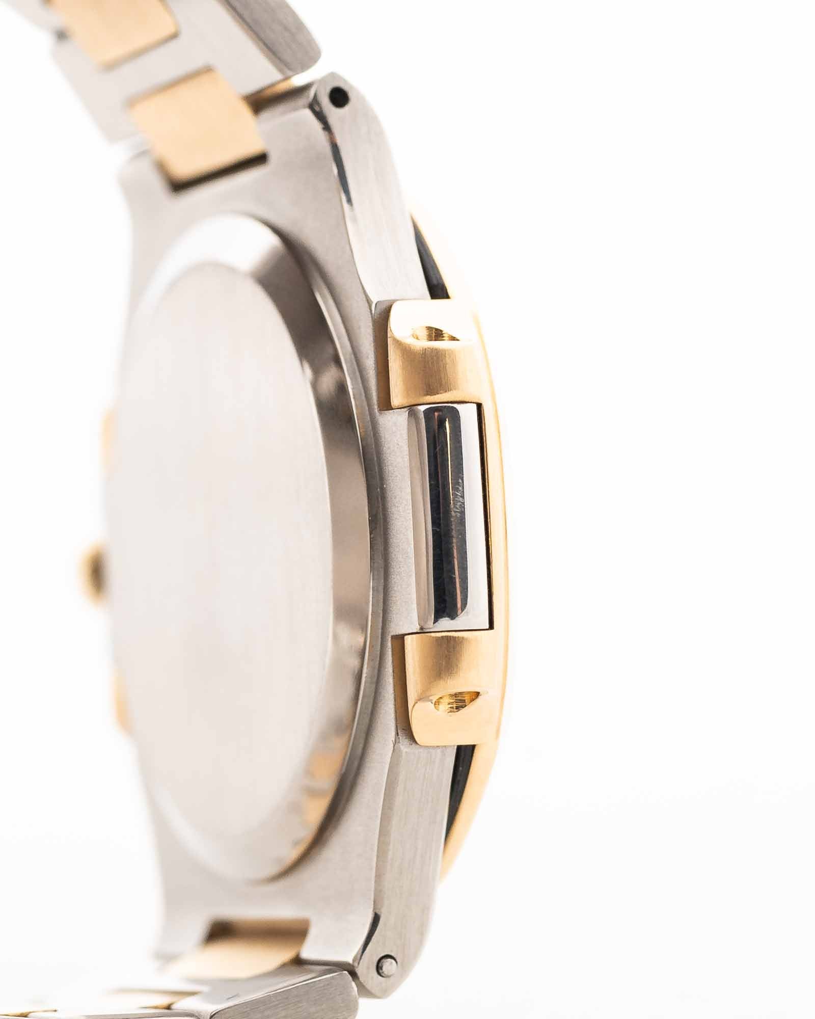 This Patek Philippe Nautilus Ref. 3800/1JA represents the perfectly balanced mid-size evolution of Gérald Genta’s iconic design. Crafted in a rare two-tone combination of stainless steel and 18k yellow gold, the 37.5 mm case delivers sportiness with unmistakable elegance.