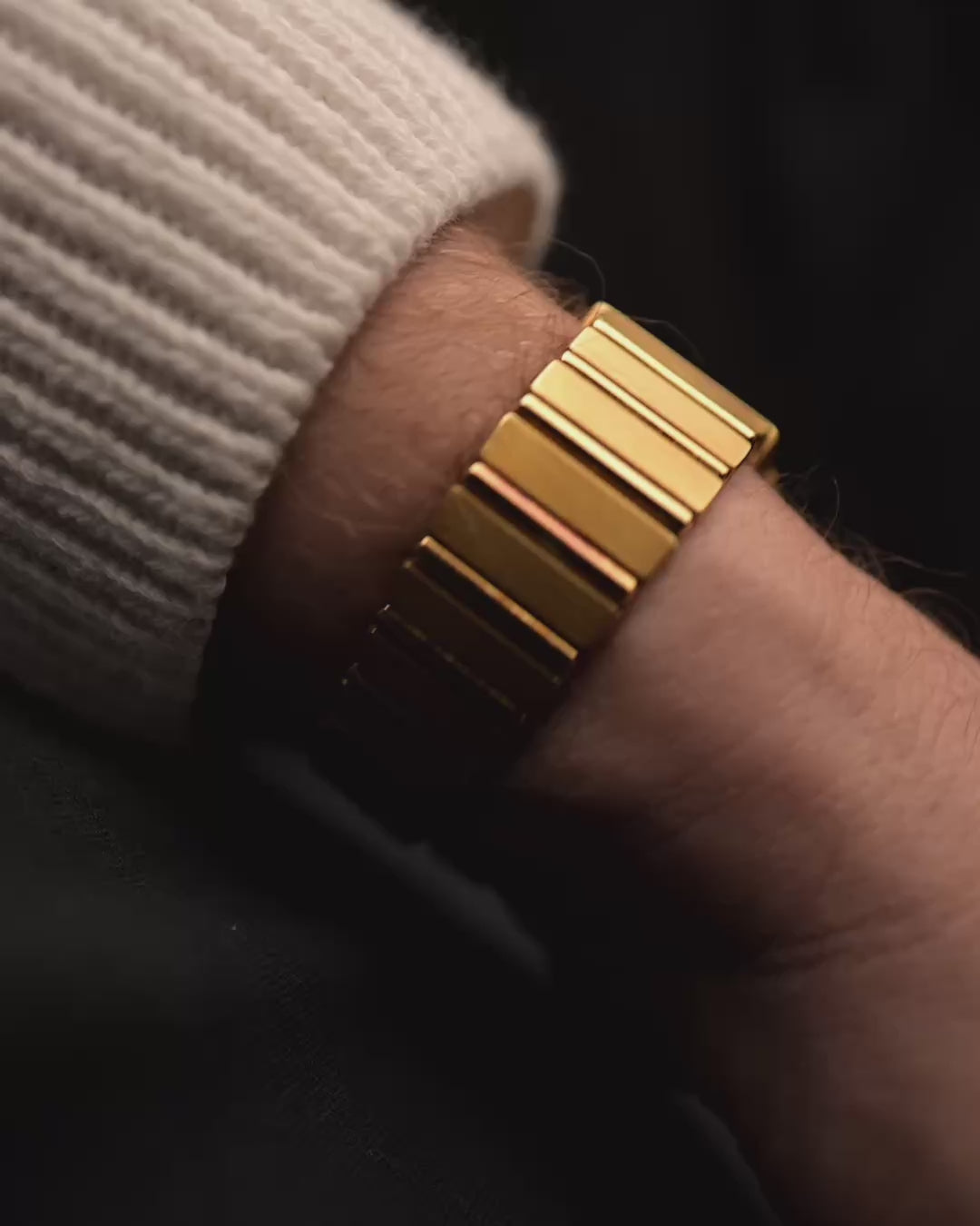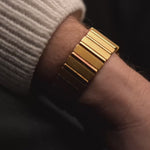 The smooth, rounded case transitions seamlessly into the integrated gold bracelet, a technical and aesthetic triumph that remains one of Piaget’s signatures. Every polished link reflects the brand’s dedication to tactile elegance and comfort — wearing it feels less like a watch and more like a finely tailored piece of gold sculpture.