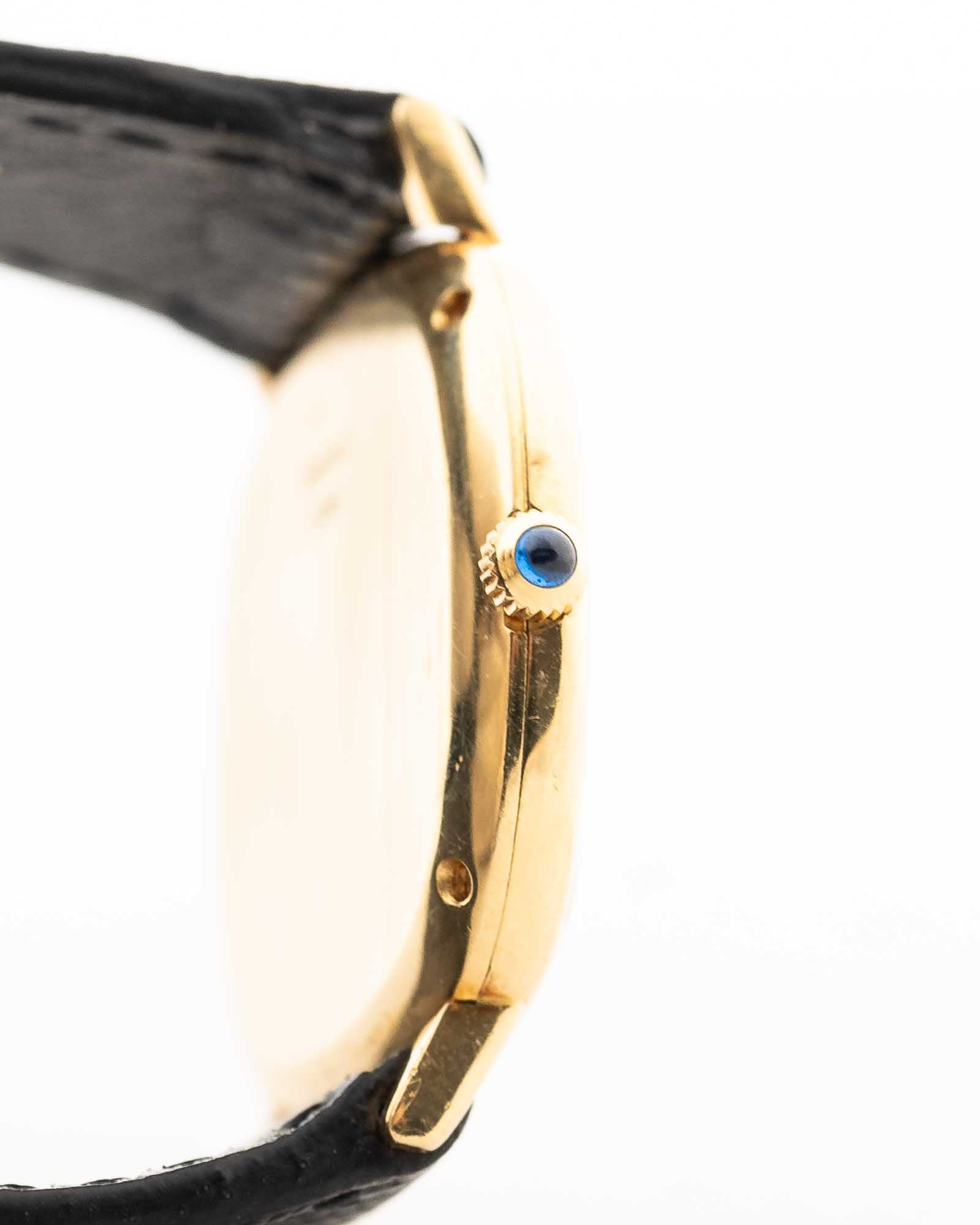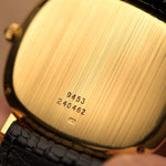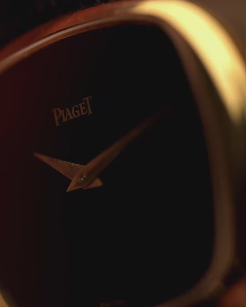 Few watches embody 1970s elegance quite like this Piaget Ref. 9453 — a sleek TV -shaped creation crafted in solid 18k yellow gold and fitted with a natural Onyx stone dial that shimmers with layered depth.