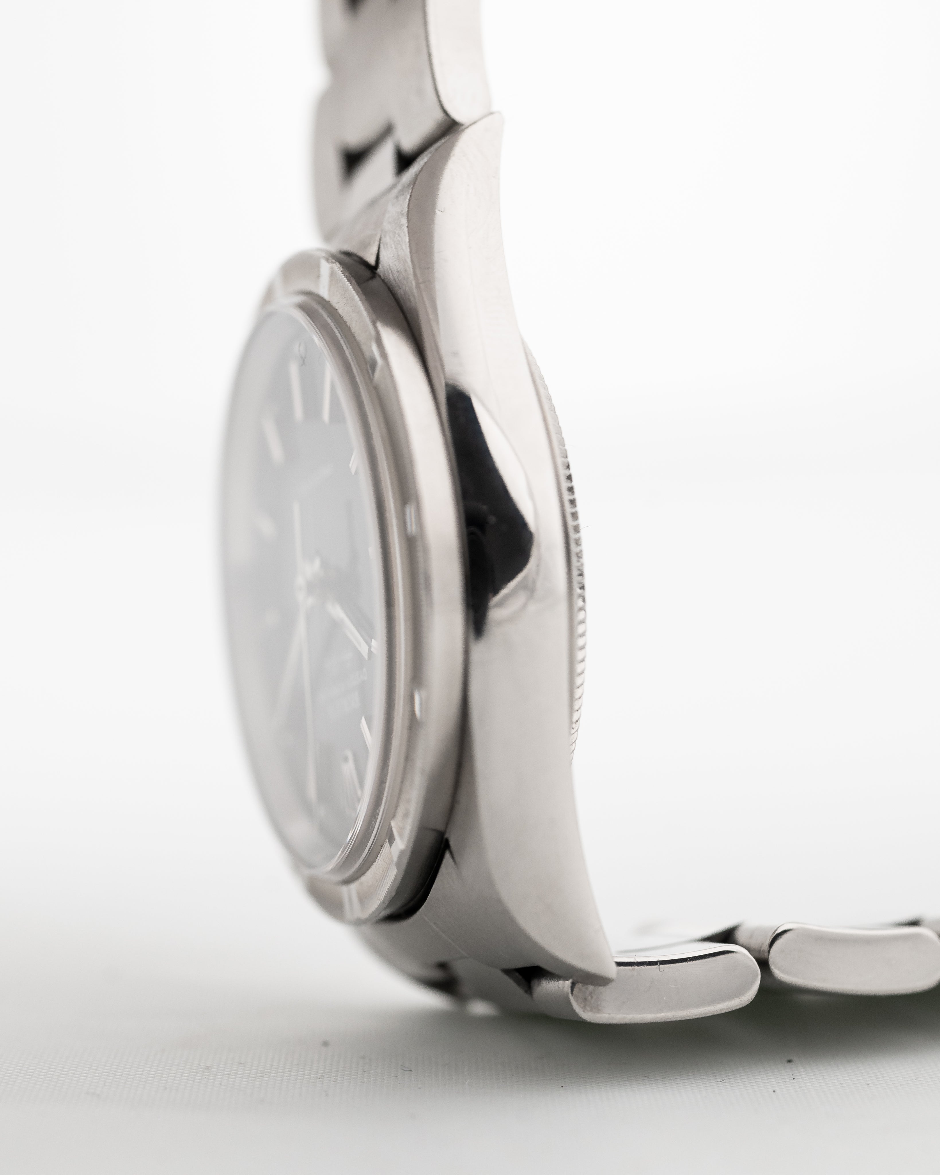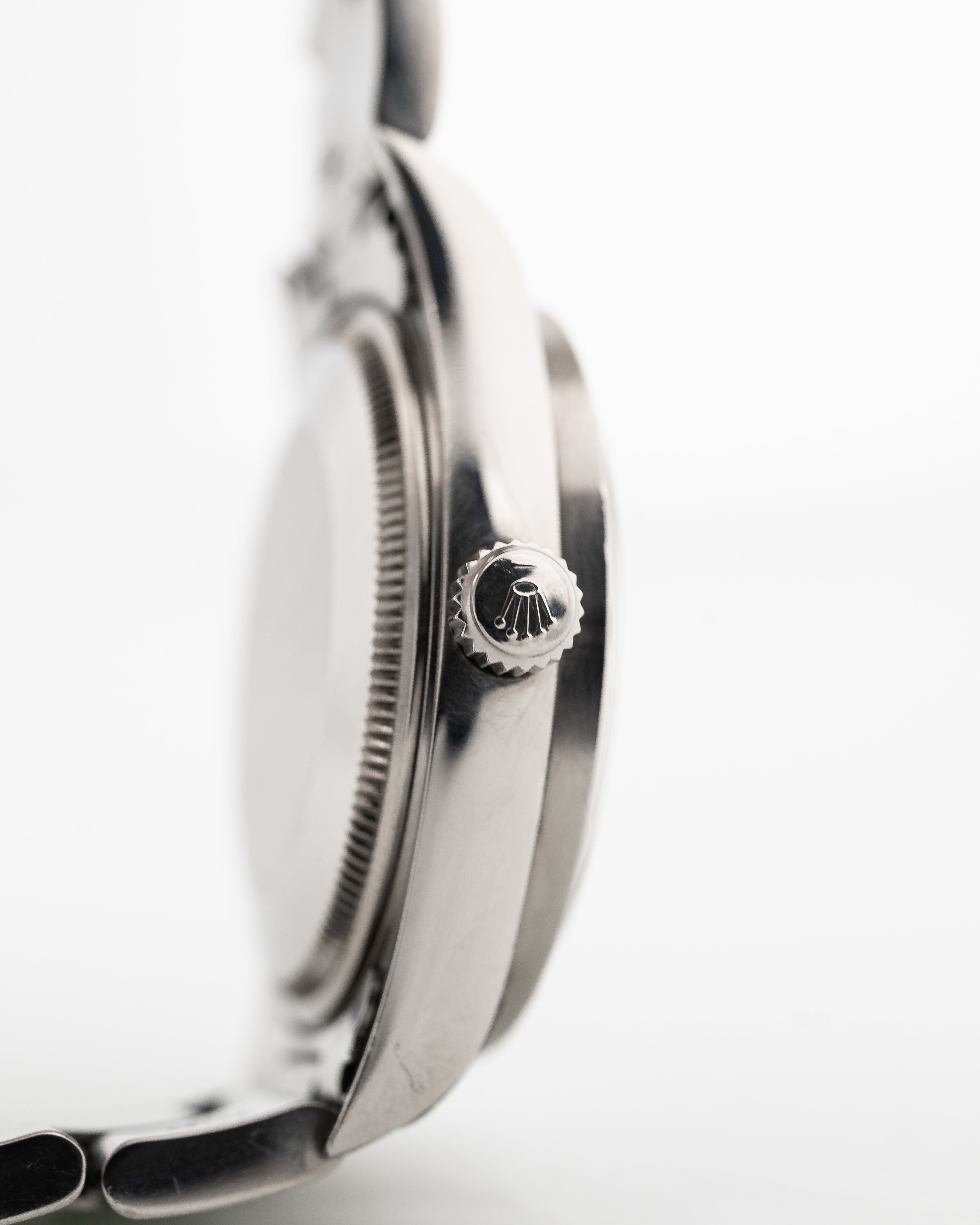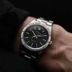 The Air-King is one of the last under-the-radar models by Rolex and has all the classic styling one could ask for from the Oyster Perpetual family. This reference made simplicity its asset - in this case, the clean black dial is accented with applied indexes for clear legibility and the broad batten handset adds an overall elegant look.