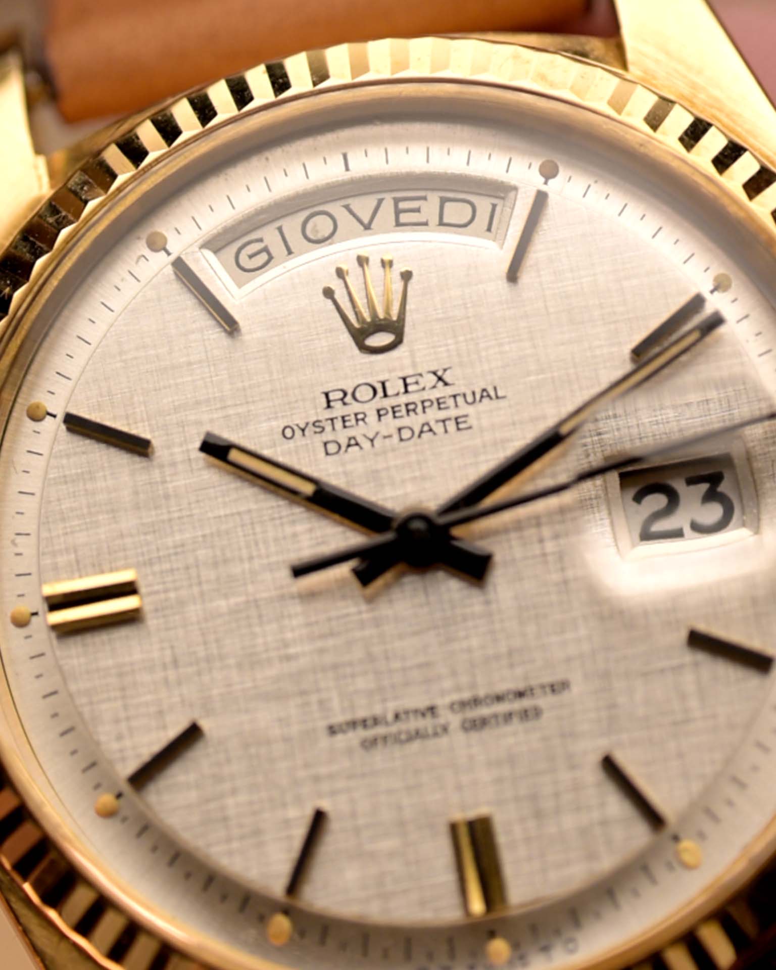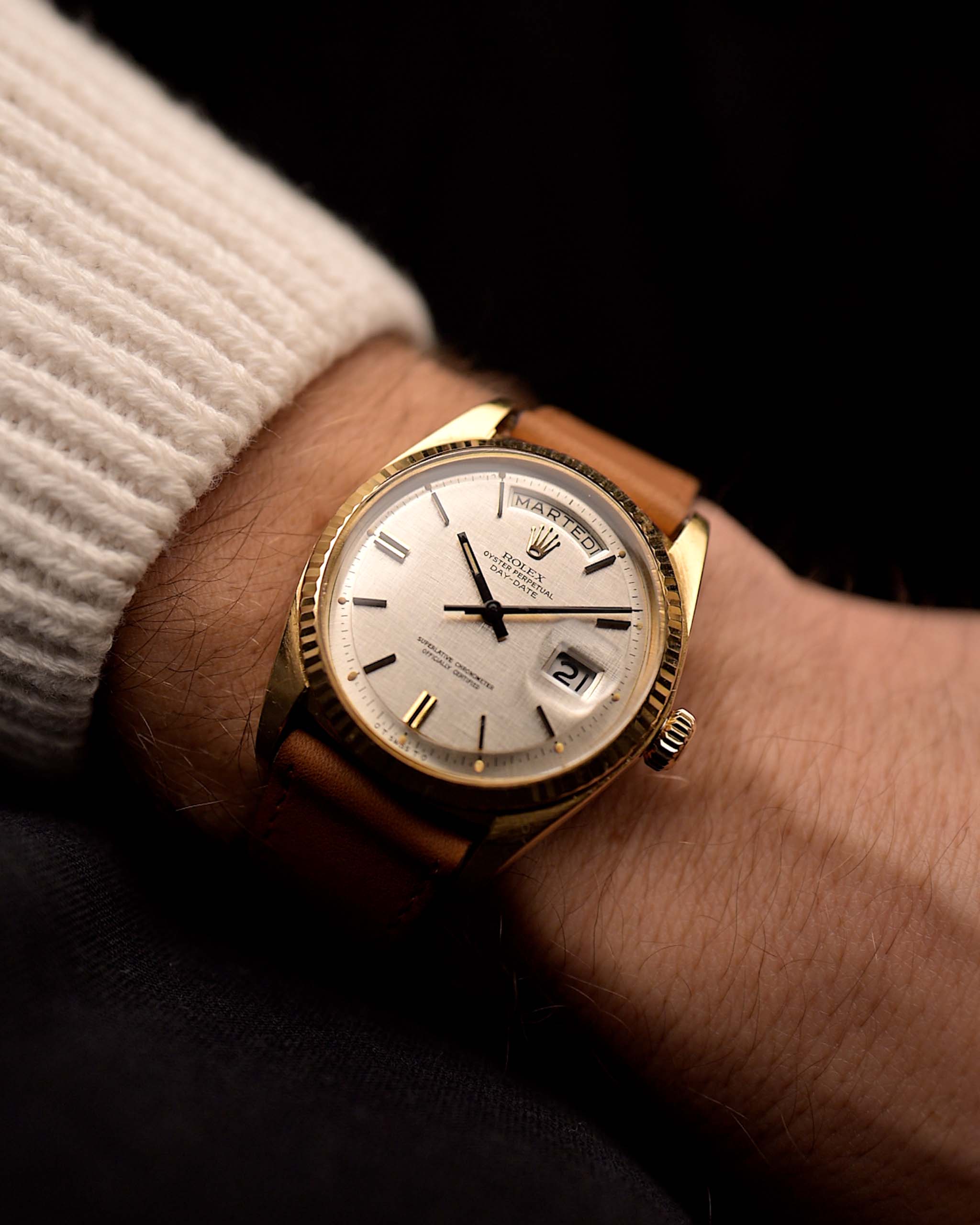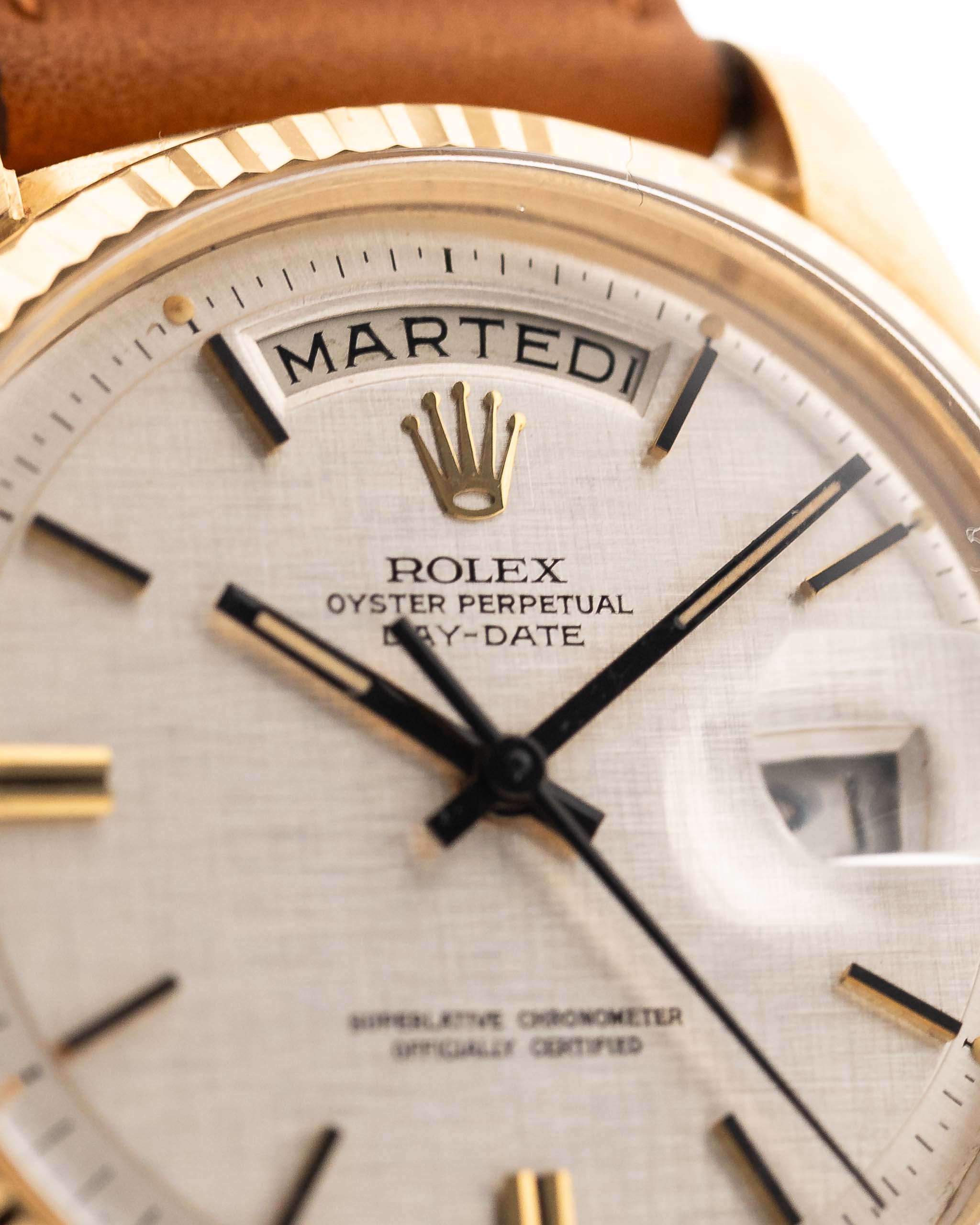 Rolex Day-Date 1803 Linen Dial 1973 - A timeless icon with a rare dial and unmistakable presence.