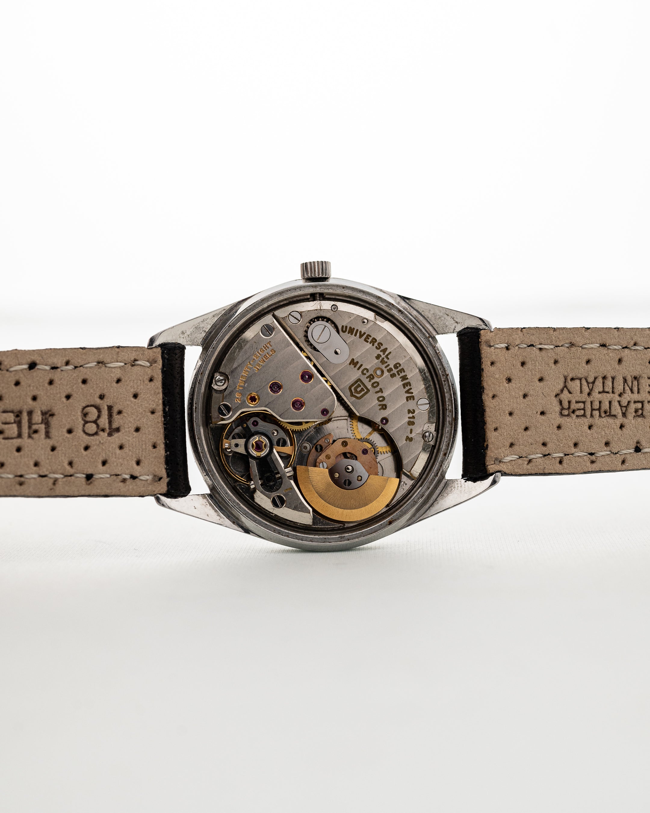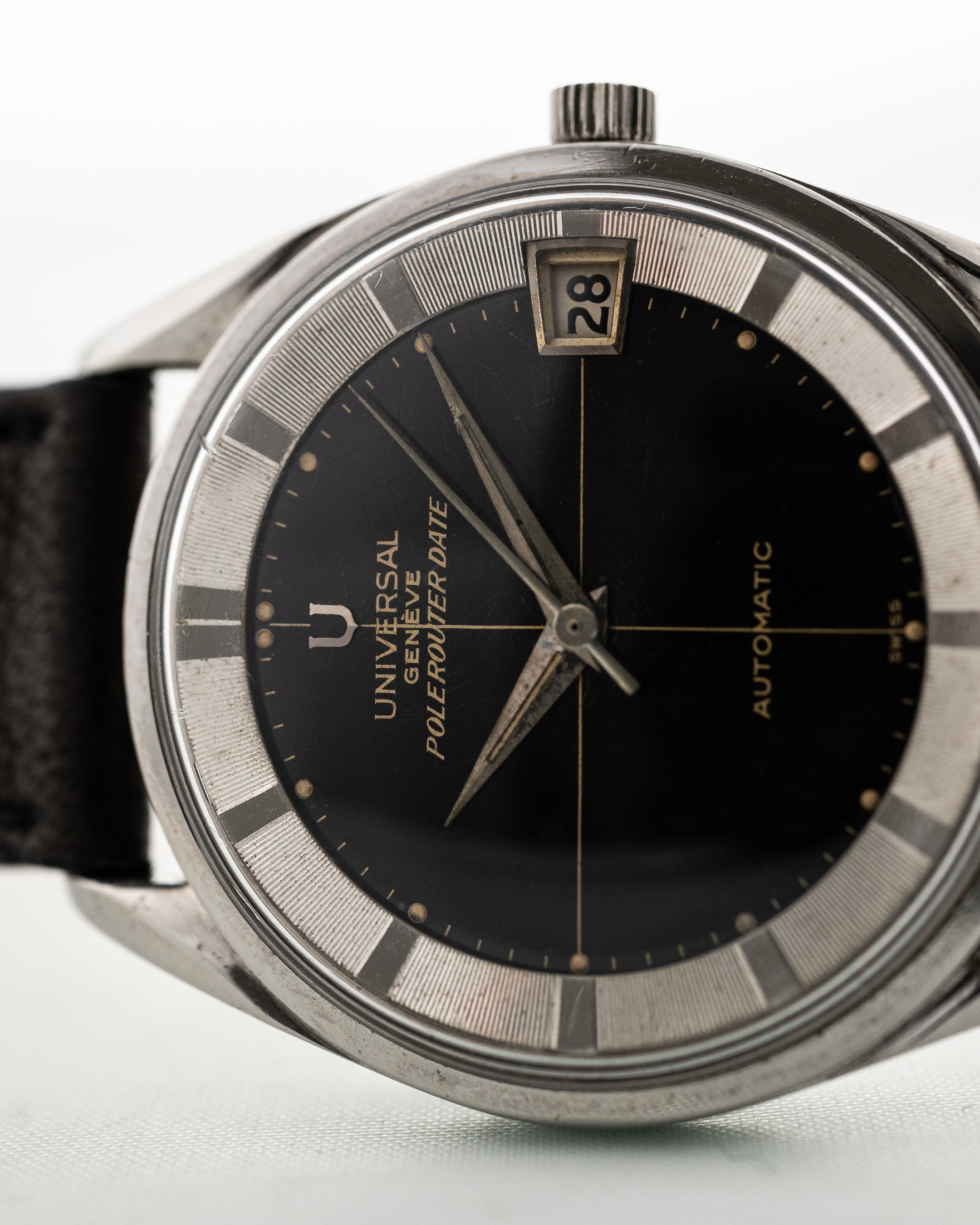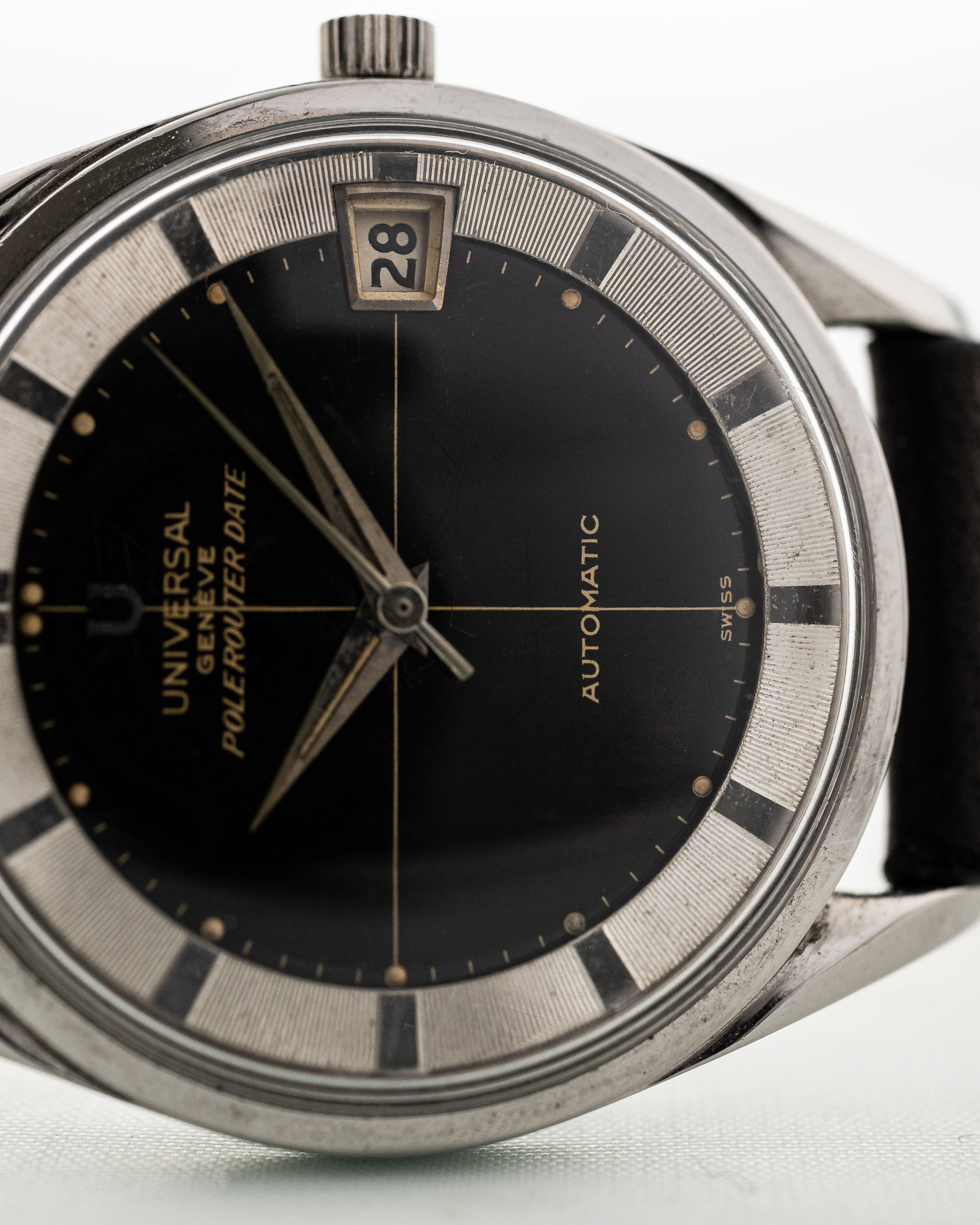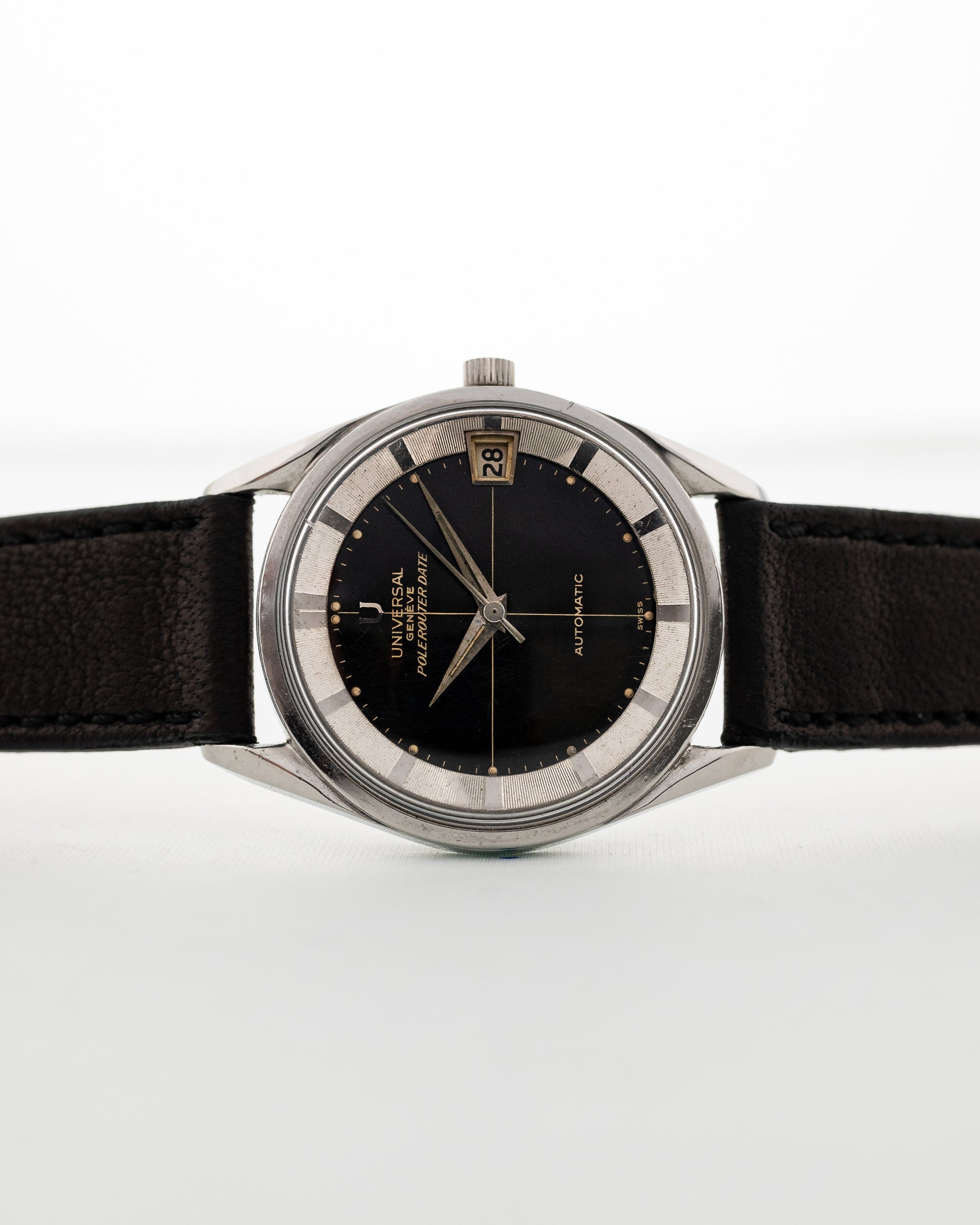 The Polerouter was produced in 1954 by Universal Genève in partnership with Scandinavian Airline System (SAS) by a then 24-year-old Gerald Genta. Universal Genève developed the automatic Polerouter to be more resistant to the strong magnetic fields at the North and South poles.