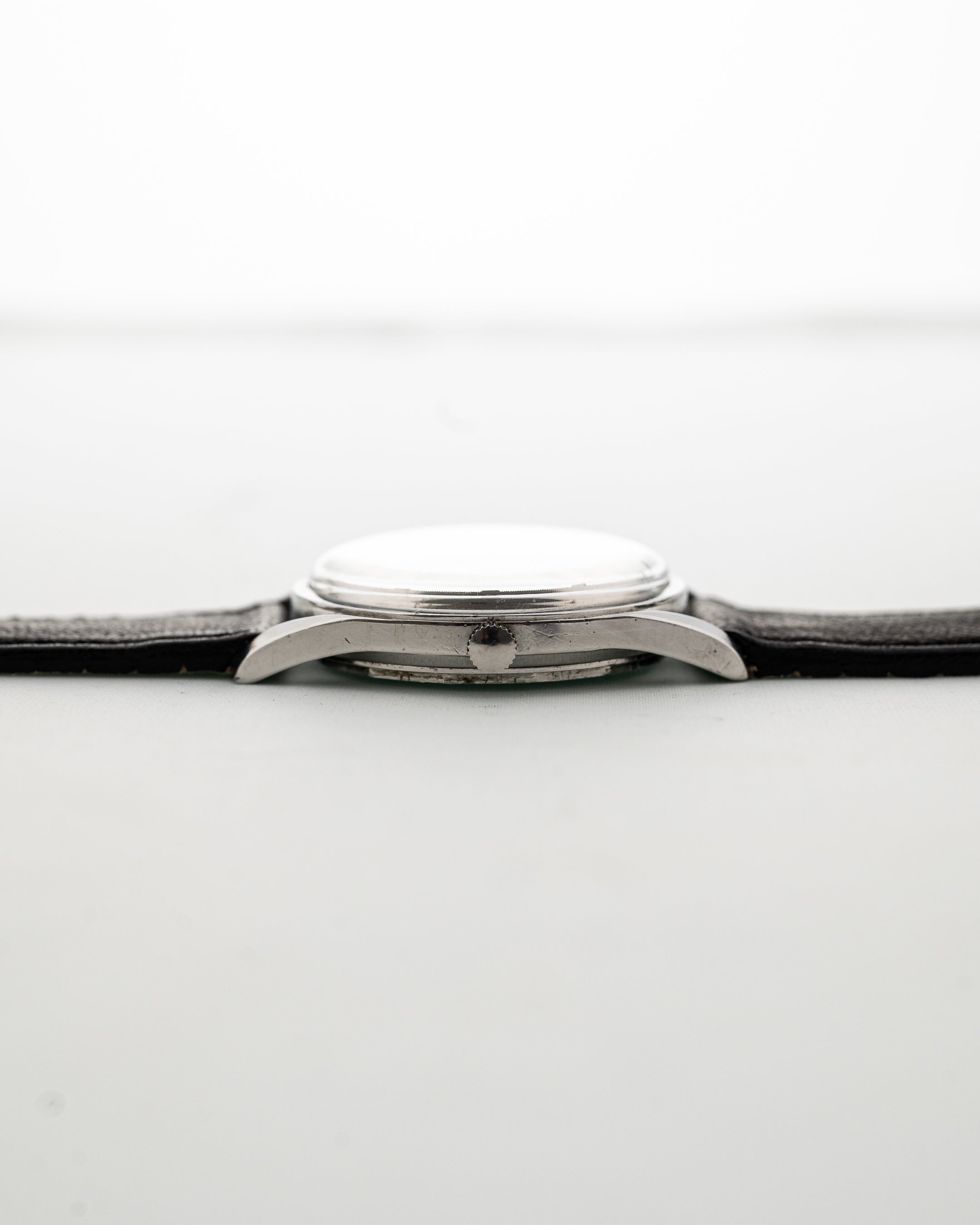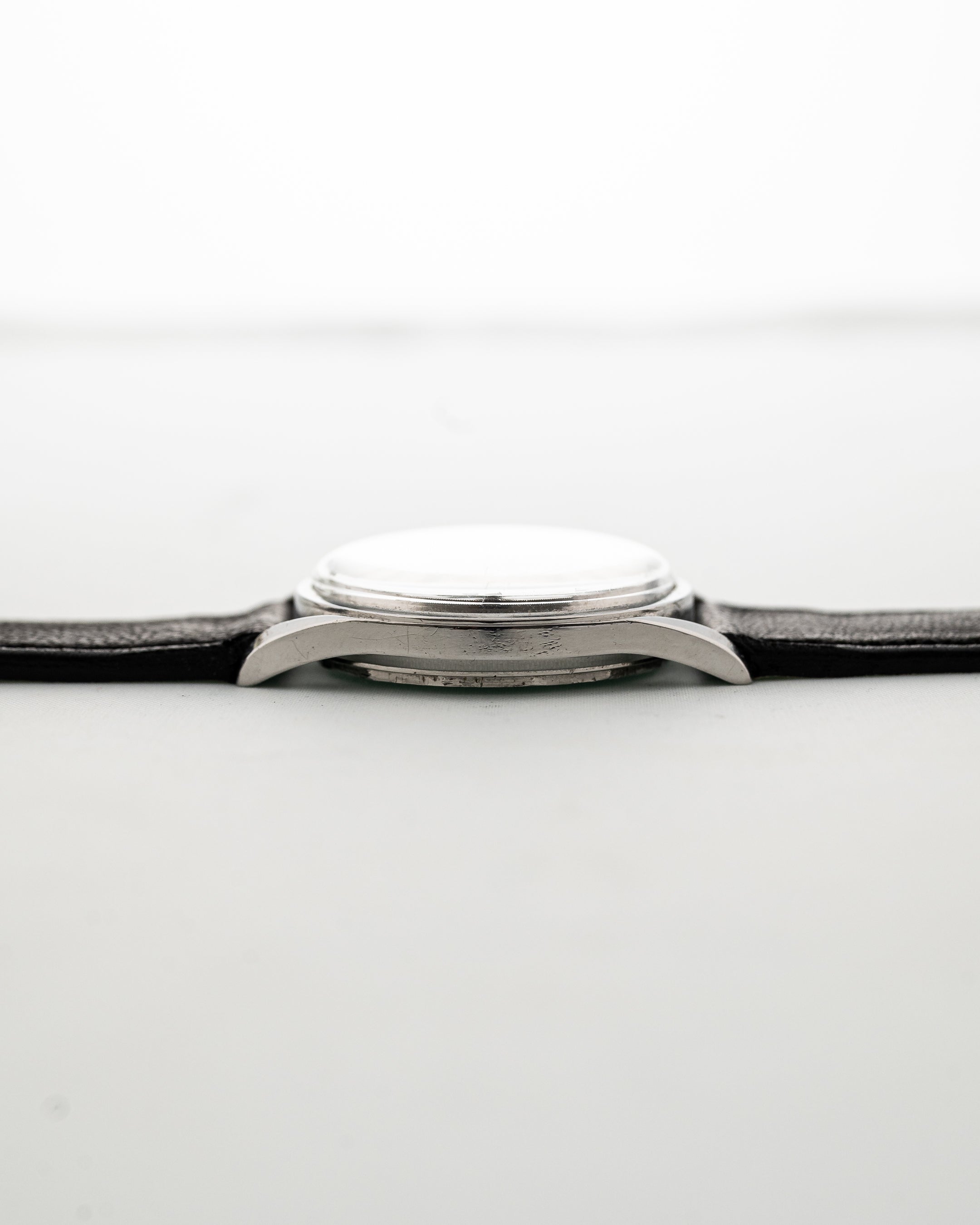 The version you see here is stainless steel with a stunning black dial in flawless condition and mirrored steel chapter ring. Overall, this is a beautiful designed watch with a rich aviation history.