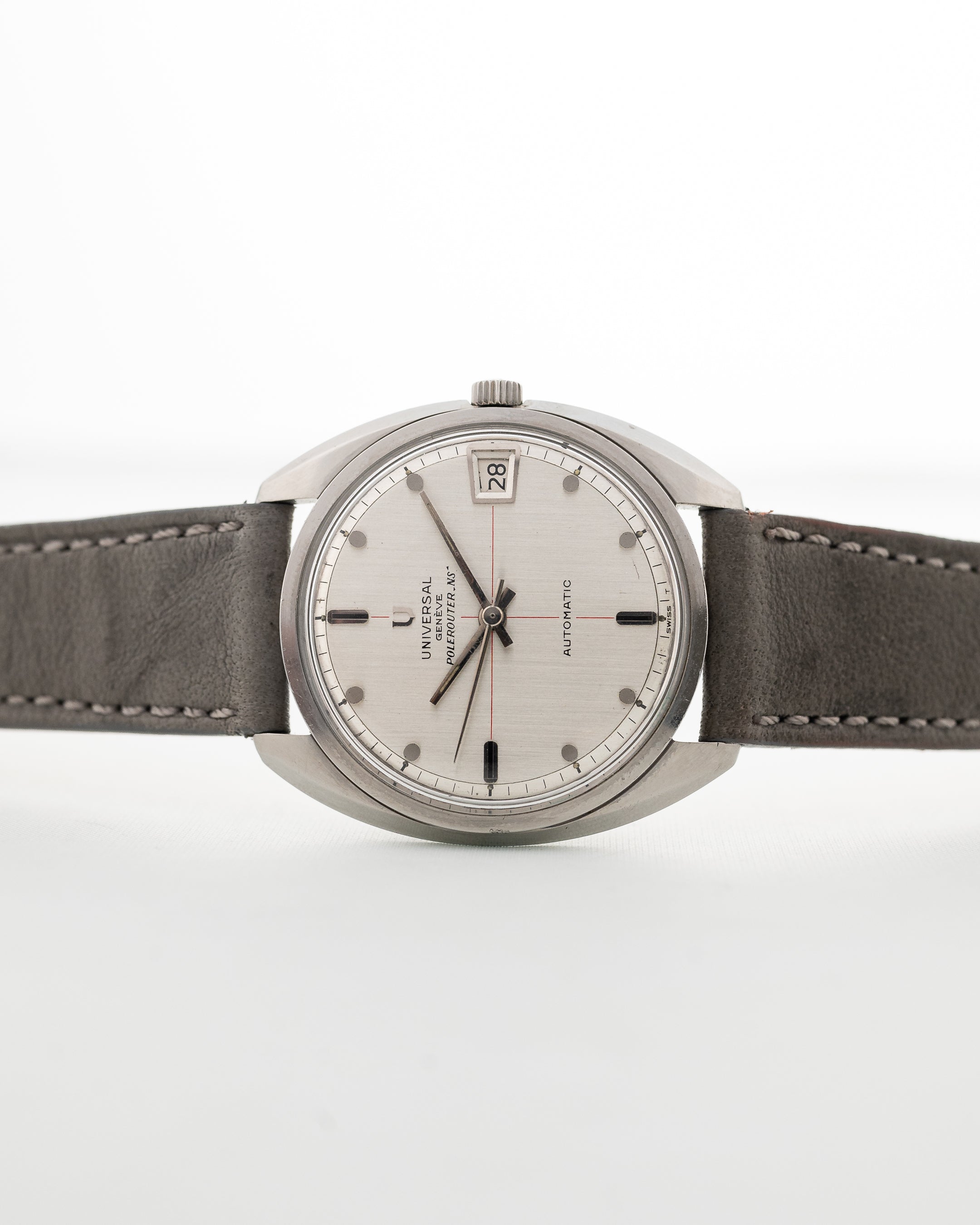 The Polerouter was produced in 1954 by Universal Genève in partnership with Scandinavian Airline System (SAS) by a then 24-year-old Gerald Genta. Universal Genève developed the automatic Polerouter to be more resistant to the strong magnetic fields at the North and South poles.