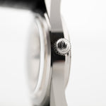 The version you see here is the no date bumper version in stainless steel with a stunning silver cross-hair dial and a mirrored stainless steel chapter ring which plays with light amazingly.
