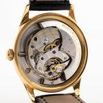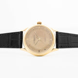 Here we have a beautiful example of a time only, 35 mm yellow gold Vacheron Constantin automatic from the 1950s. This piece has beautiful and warm cream two tone dial with applied yellow gold hour markers and hands.