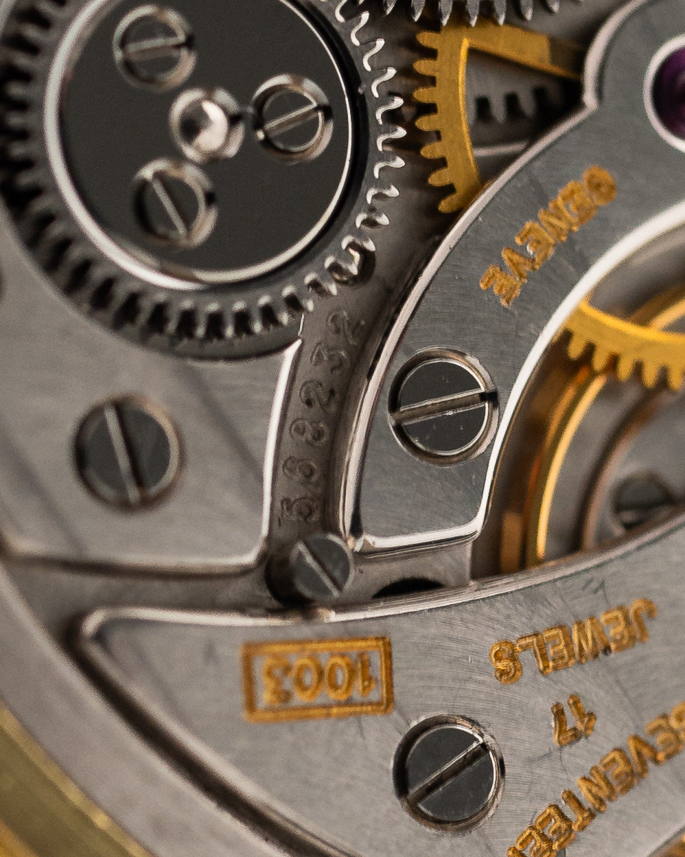 On the inside of the case back we also find the „key of Geneva“ stamp with the the number 1 which tells us that the case was produced in Geneva by „Eggy & Cie“ which produced wach cases from 1934 to 1990.