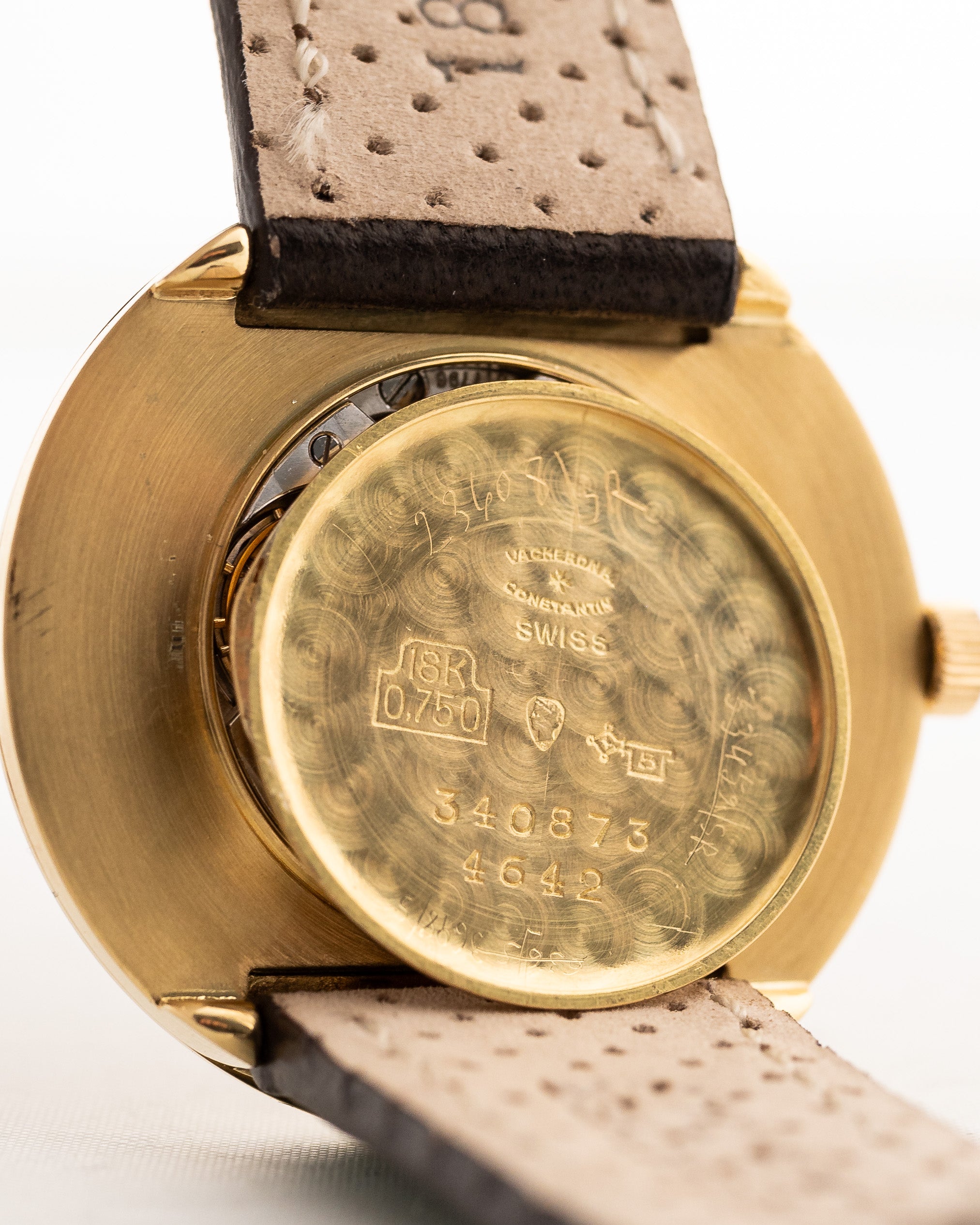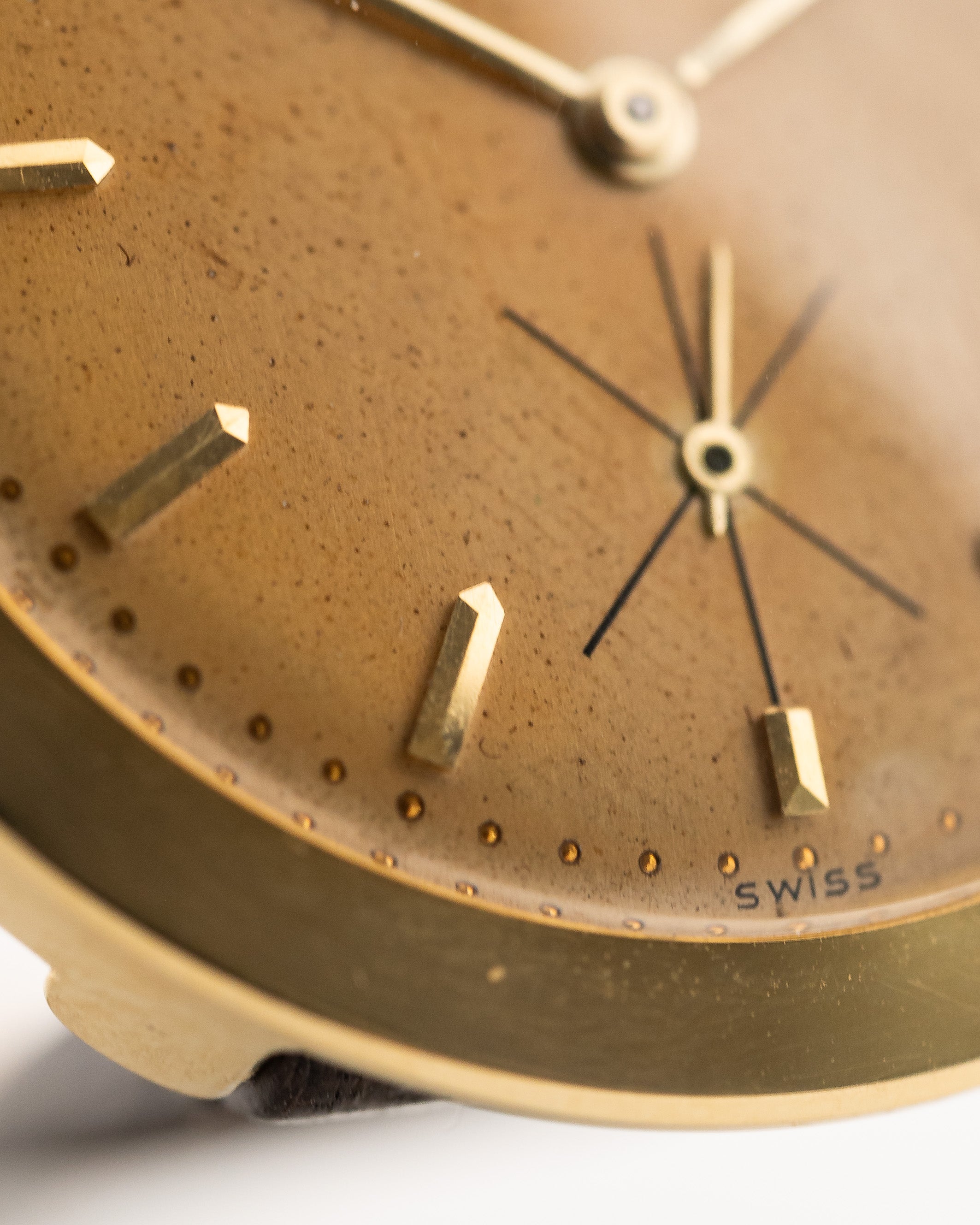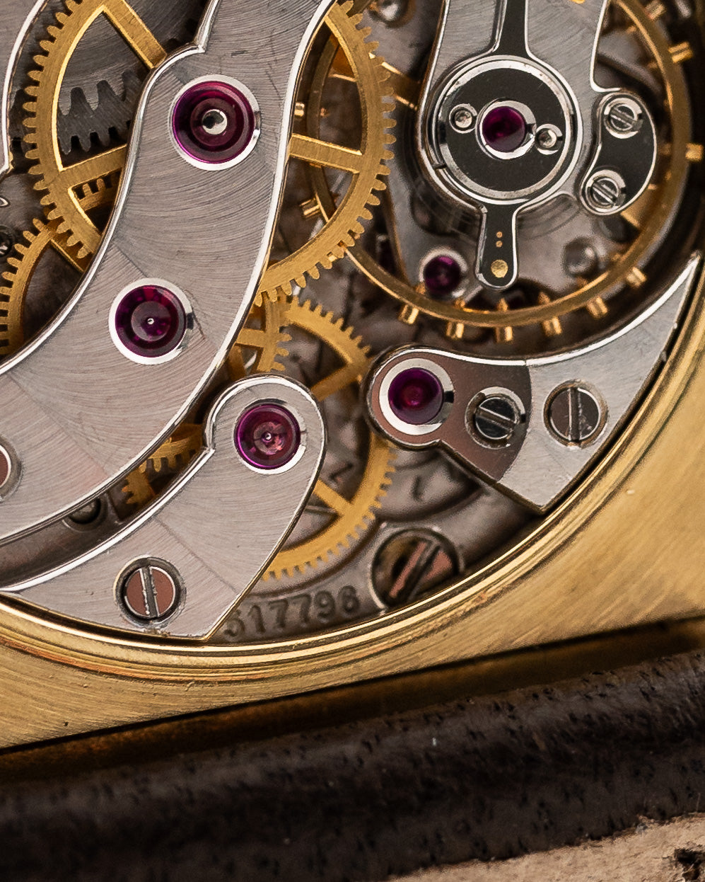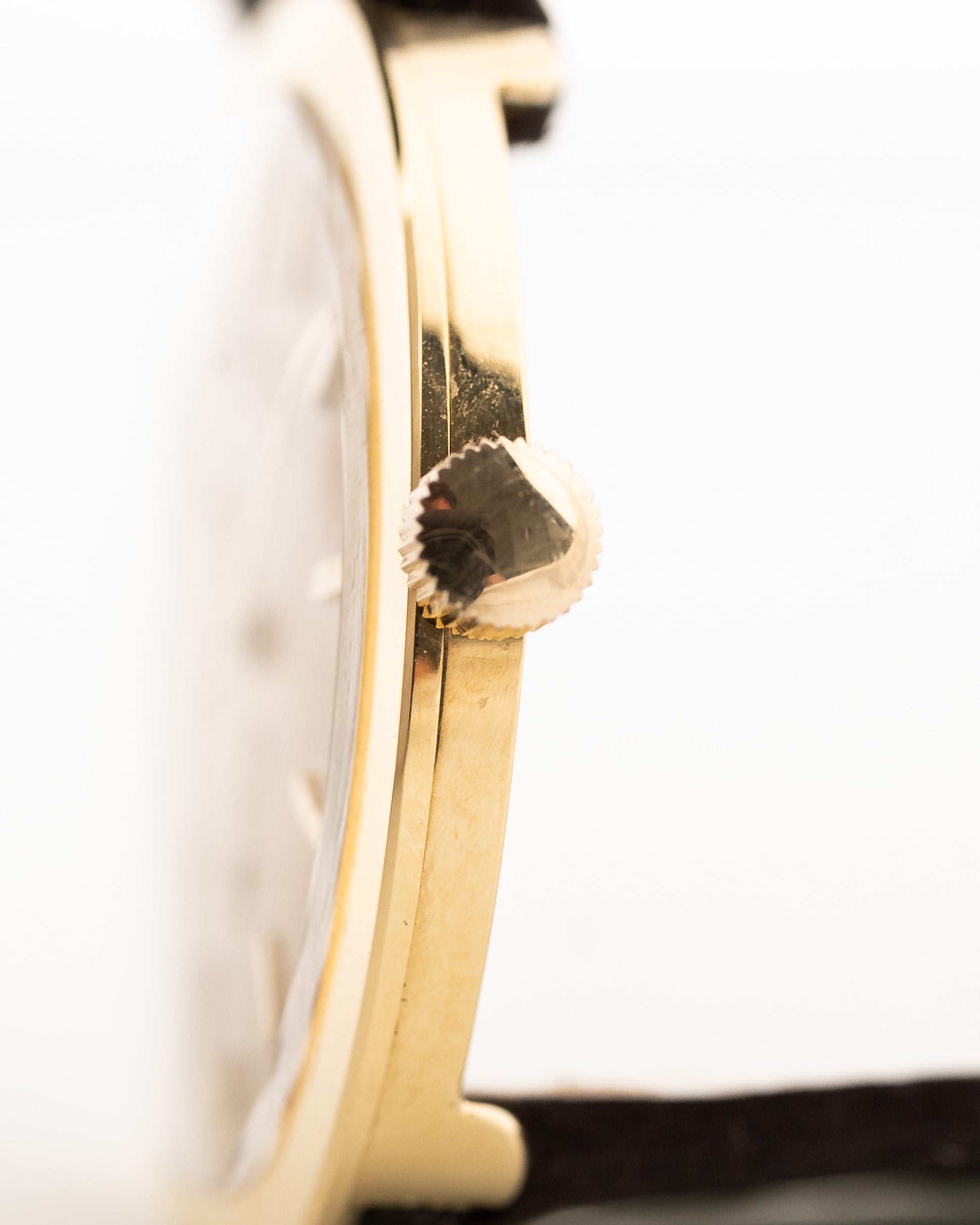 On the inside of the case back we also find the „key of Geneva“ stamp with the the number 5 which tells us that the case was produced in Geneva by „Georges Croisier/Jean-Pierre Ecoffey“ which produced wach cases from 1934 to 1990.