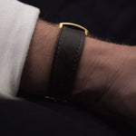 • brown leather strap fitting up to 21 cm wrist size / 2.3 mm thick