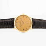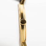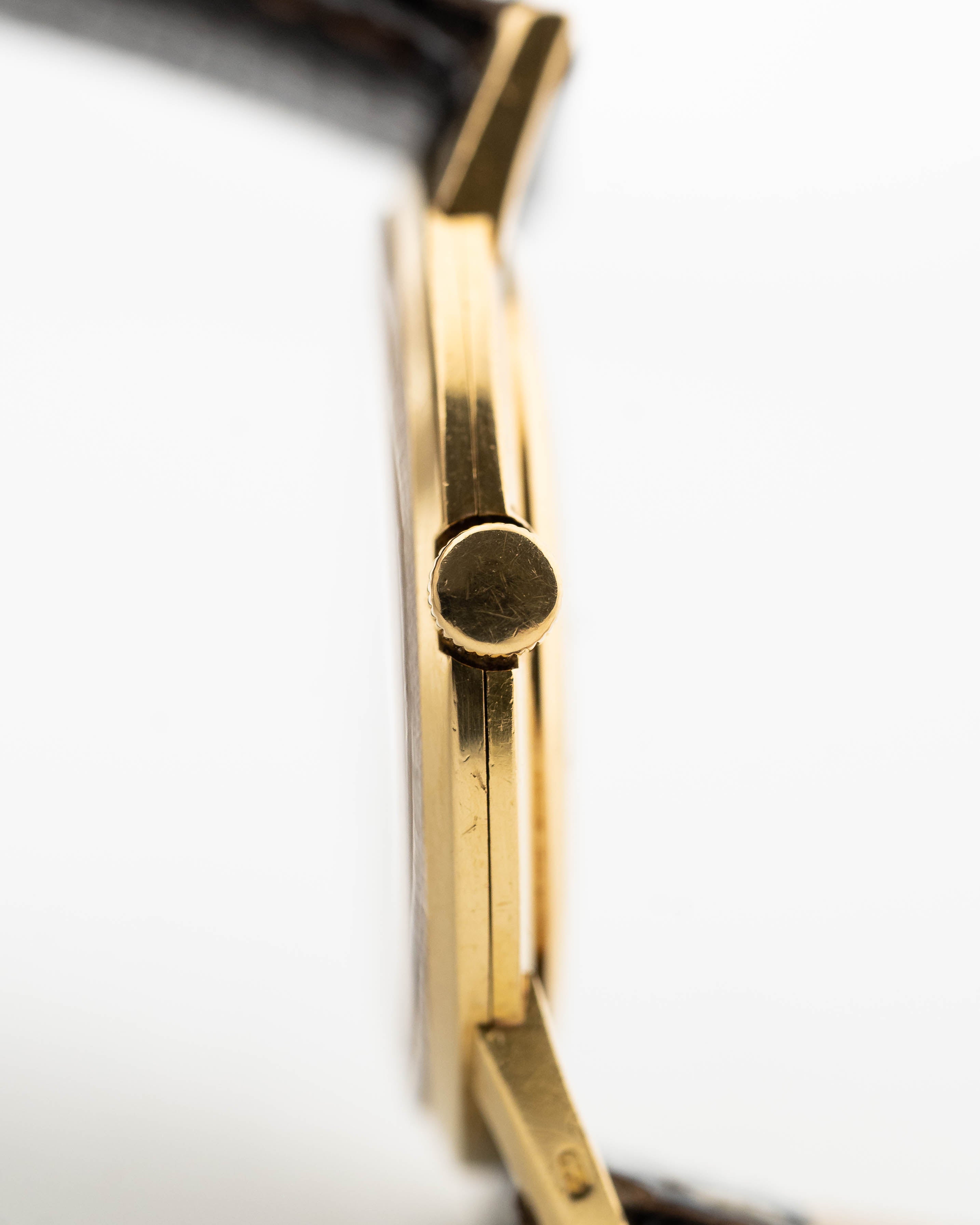 This particular piece is notable for its flawless condition and a strong 18k yellow gold case.