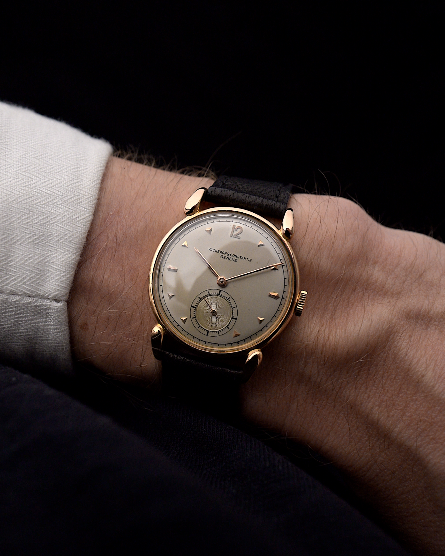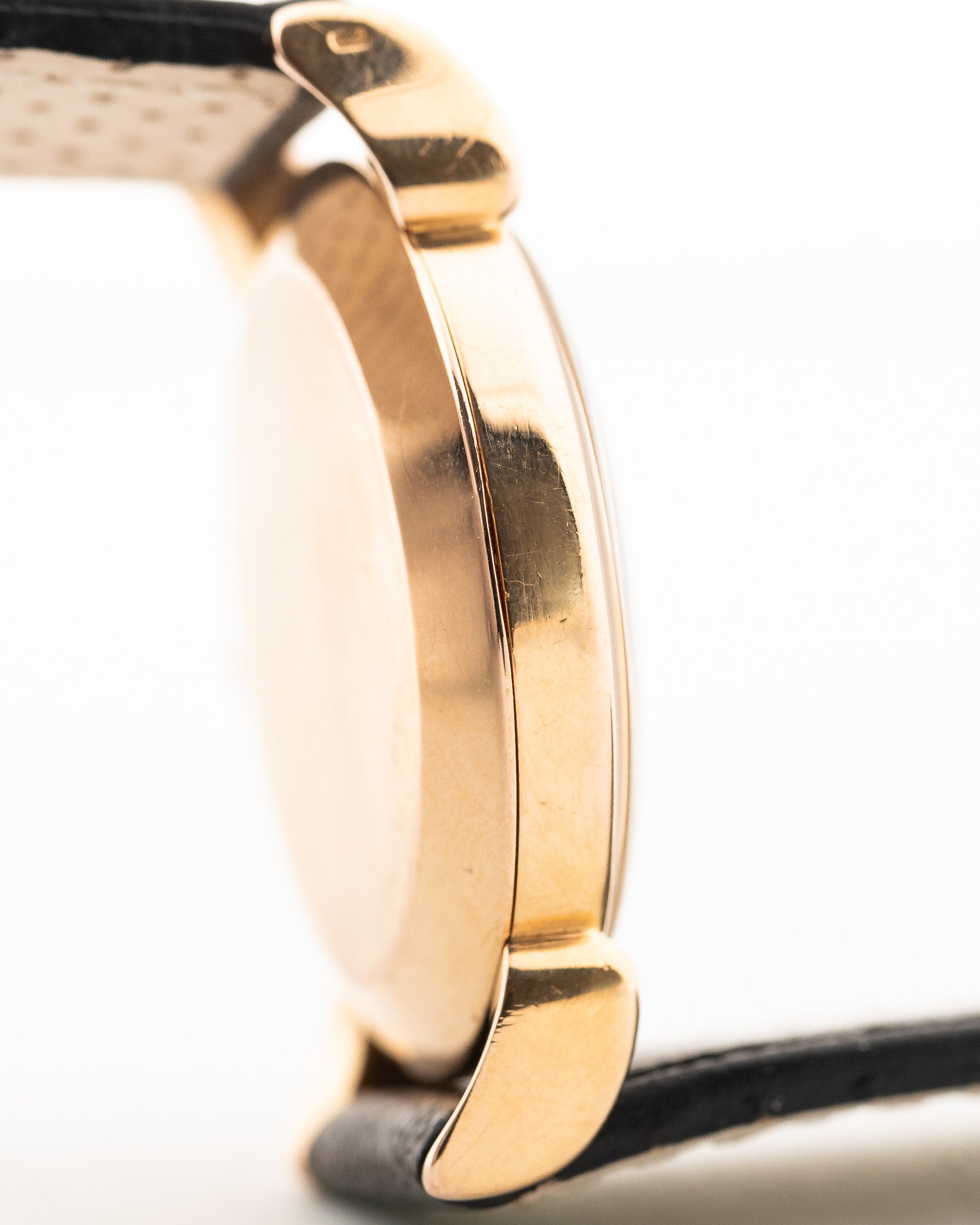 Here we have a beautiful example of a time only, 33 mm 18k rose gold Vacheron Constantin with Gerlach 18k Tear Drop case from the 1940s.