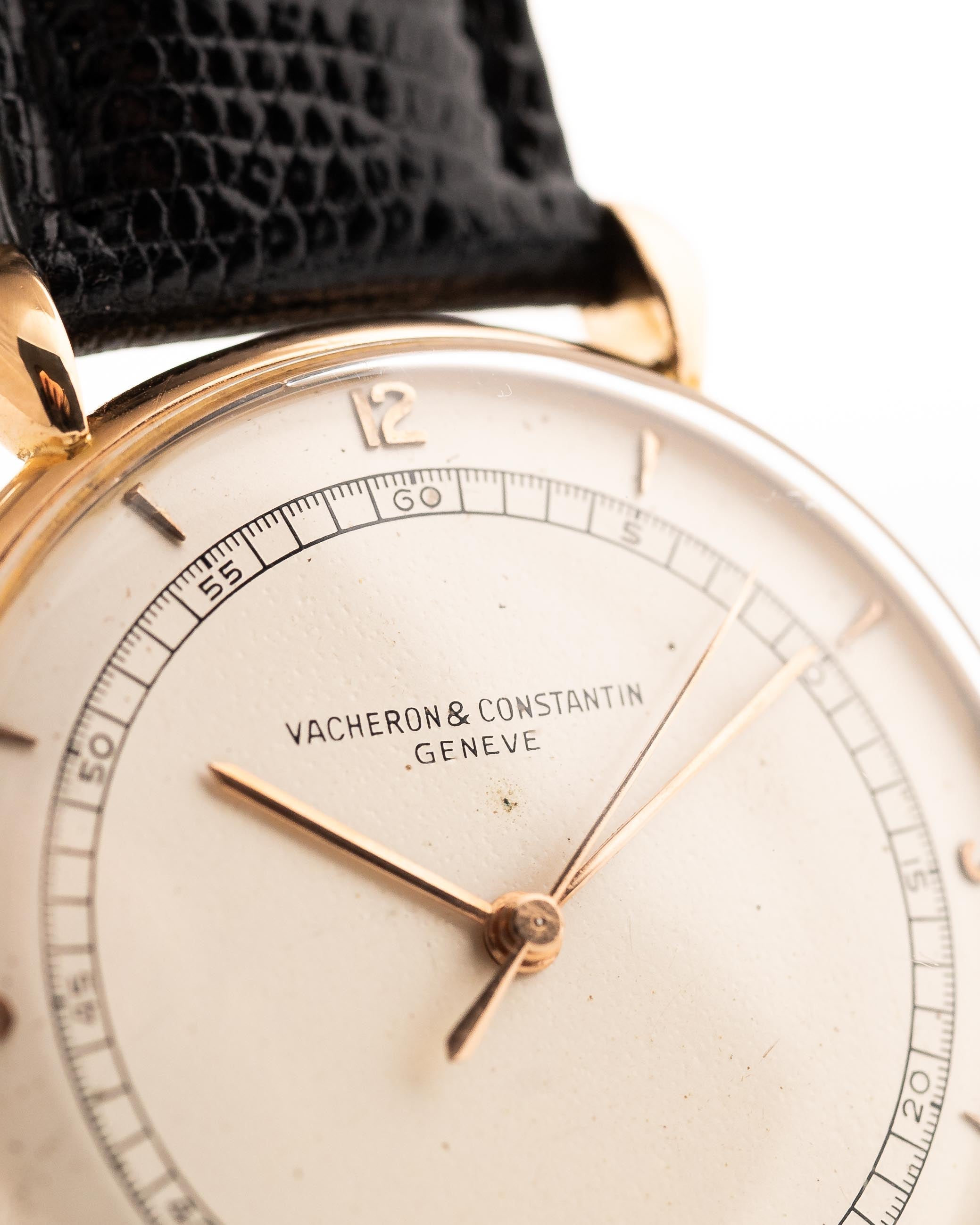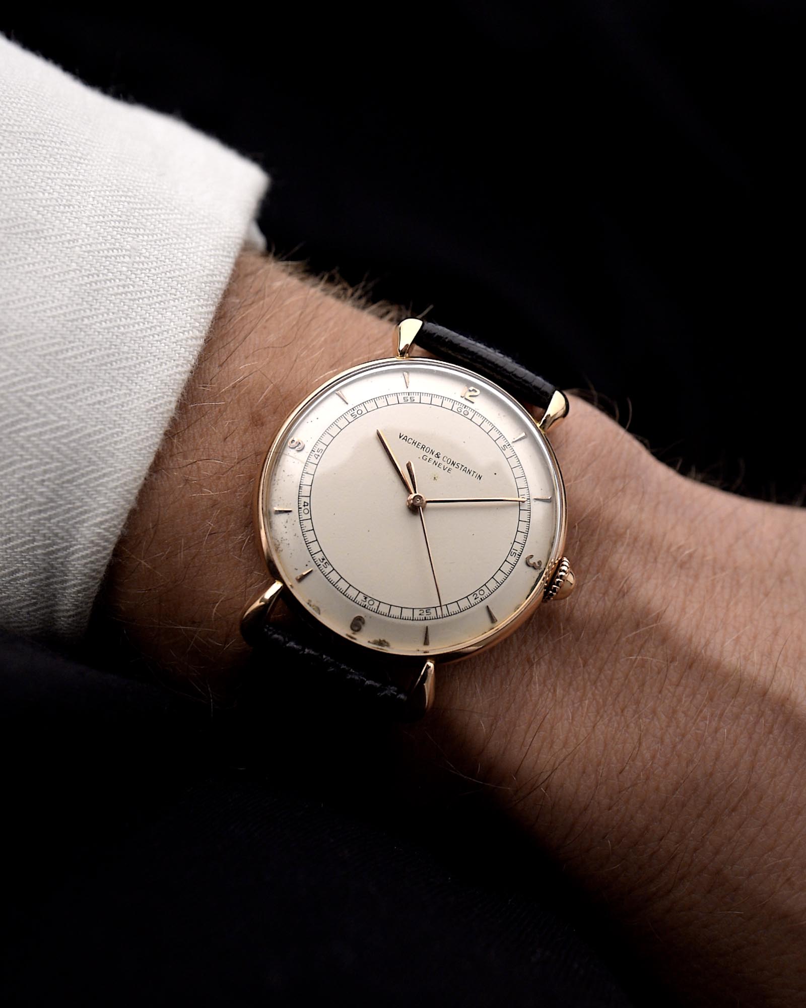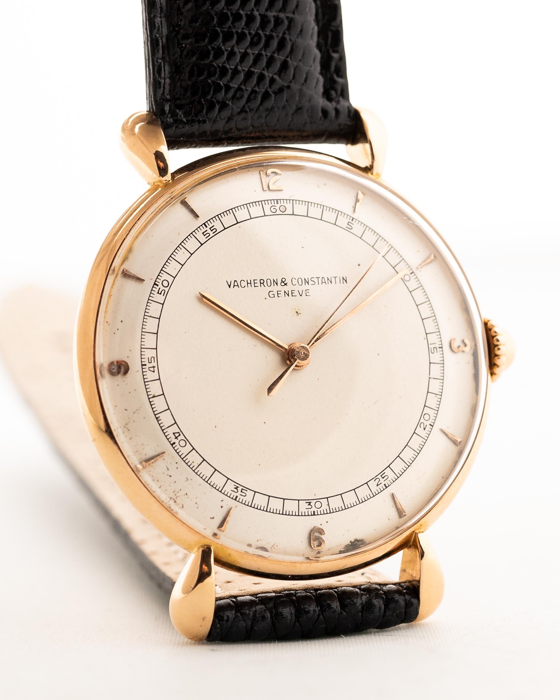 Here we have a beautifully finished Vacheron Constantin dress watch from the 1940s with unique teardrop lugs and an amazingly designed dial with so many details that it's difficult to mention them all.