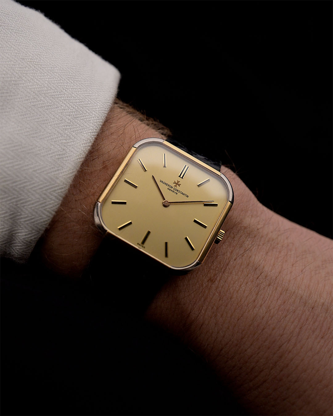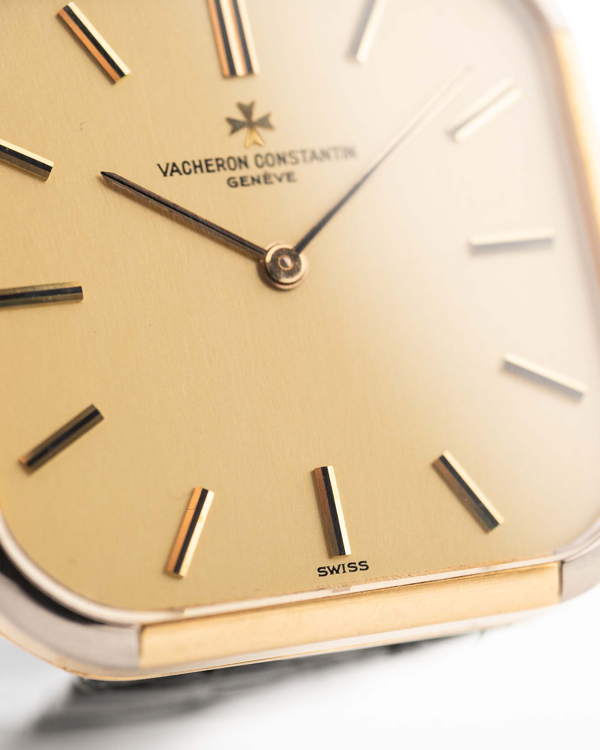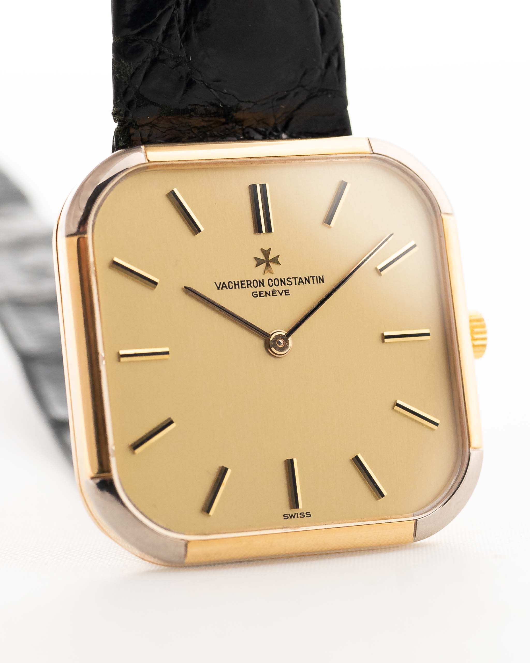 Here we have a beautifully finished Vacheron Constantin dress watch in a square shaped rare two tone case design from 1970s.