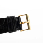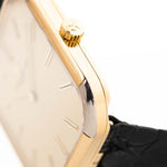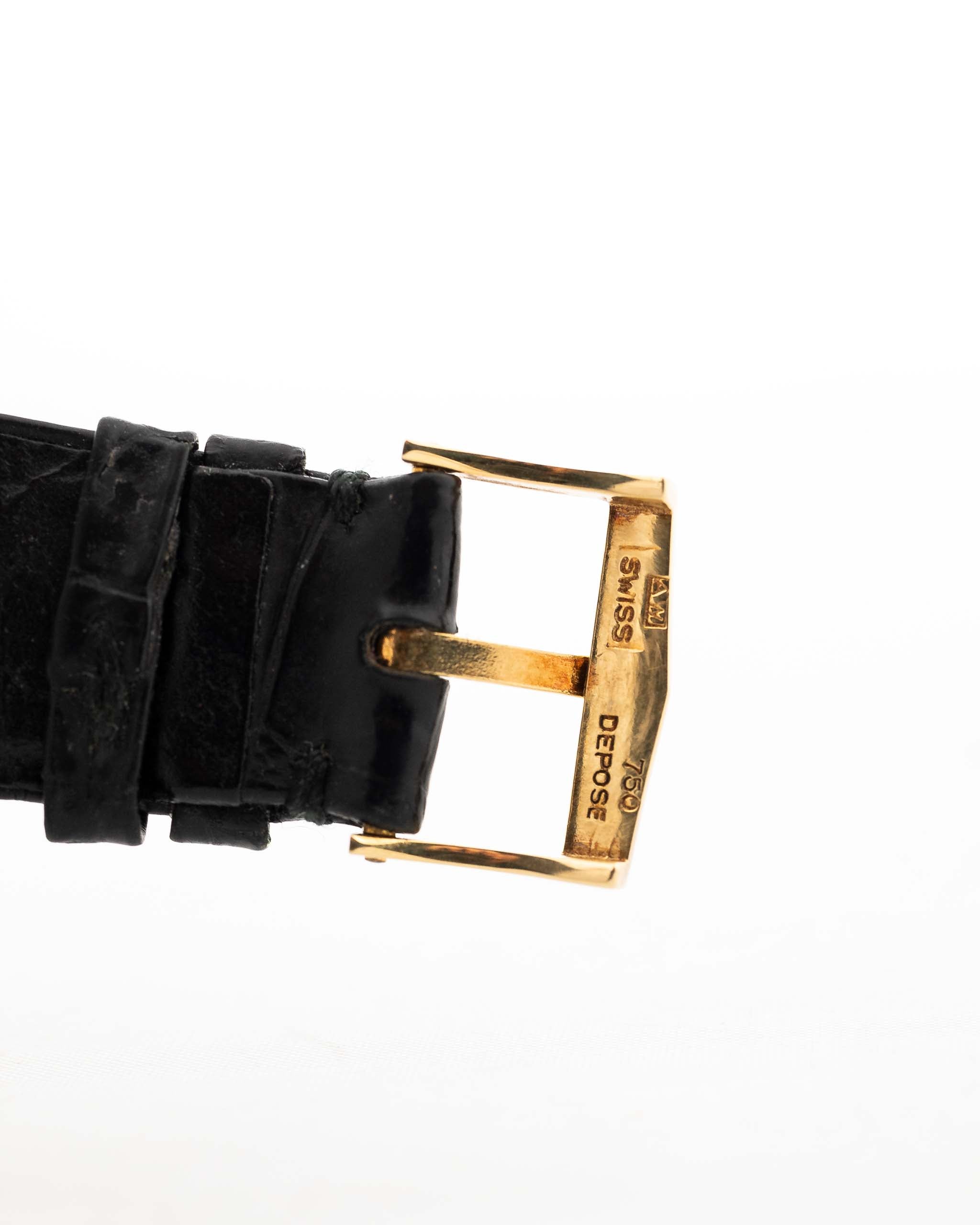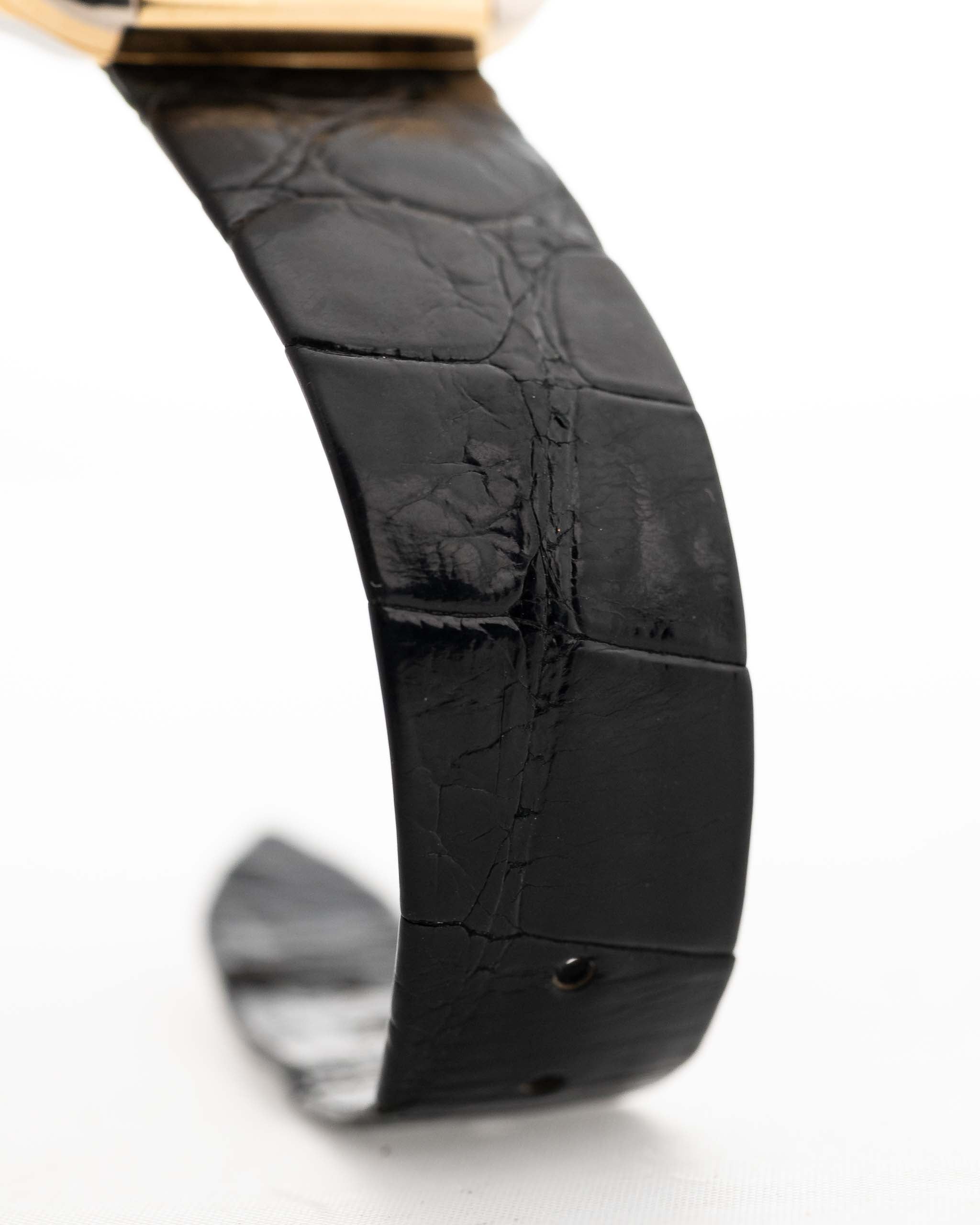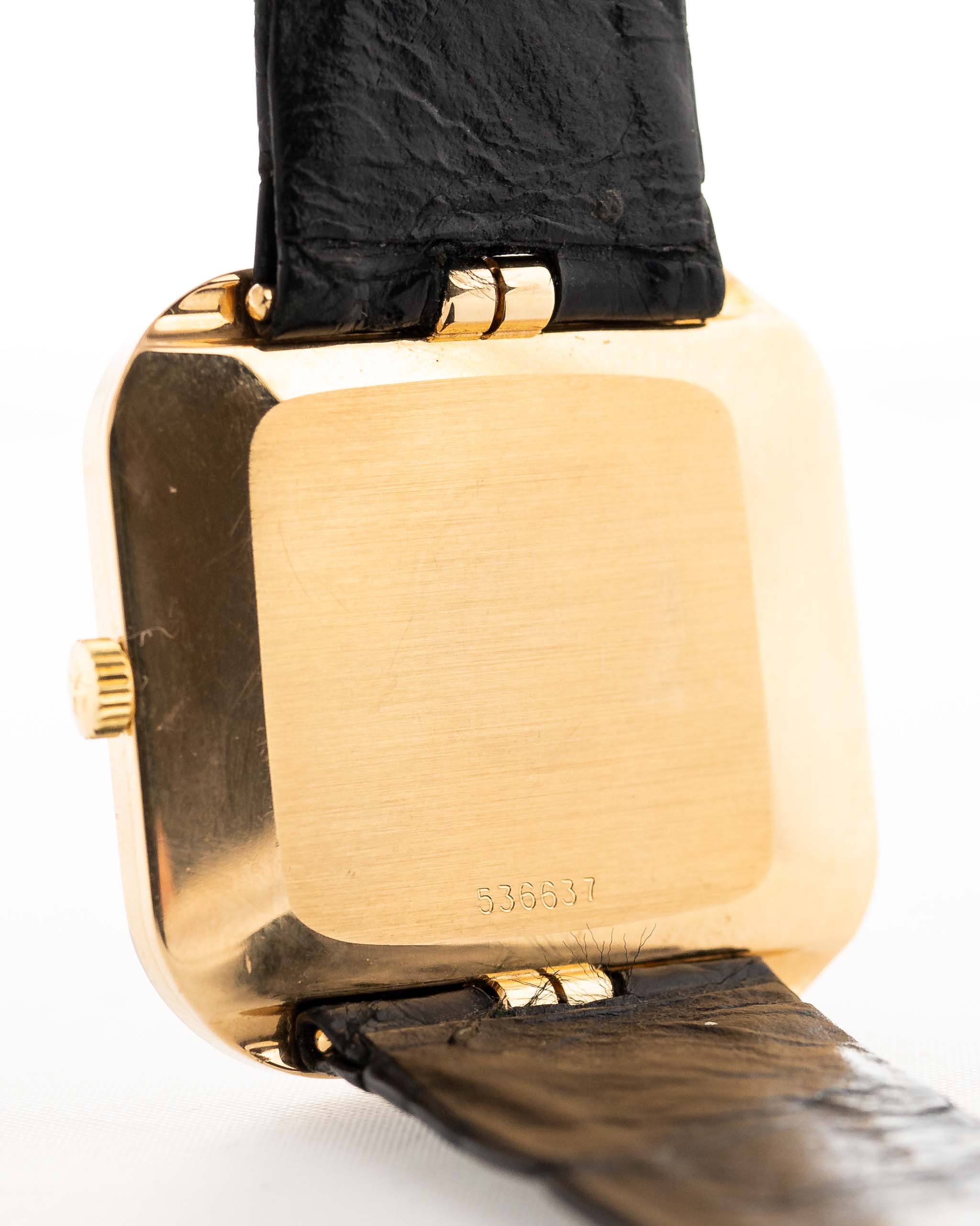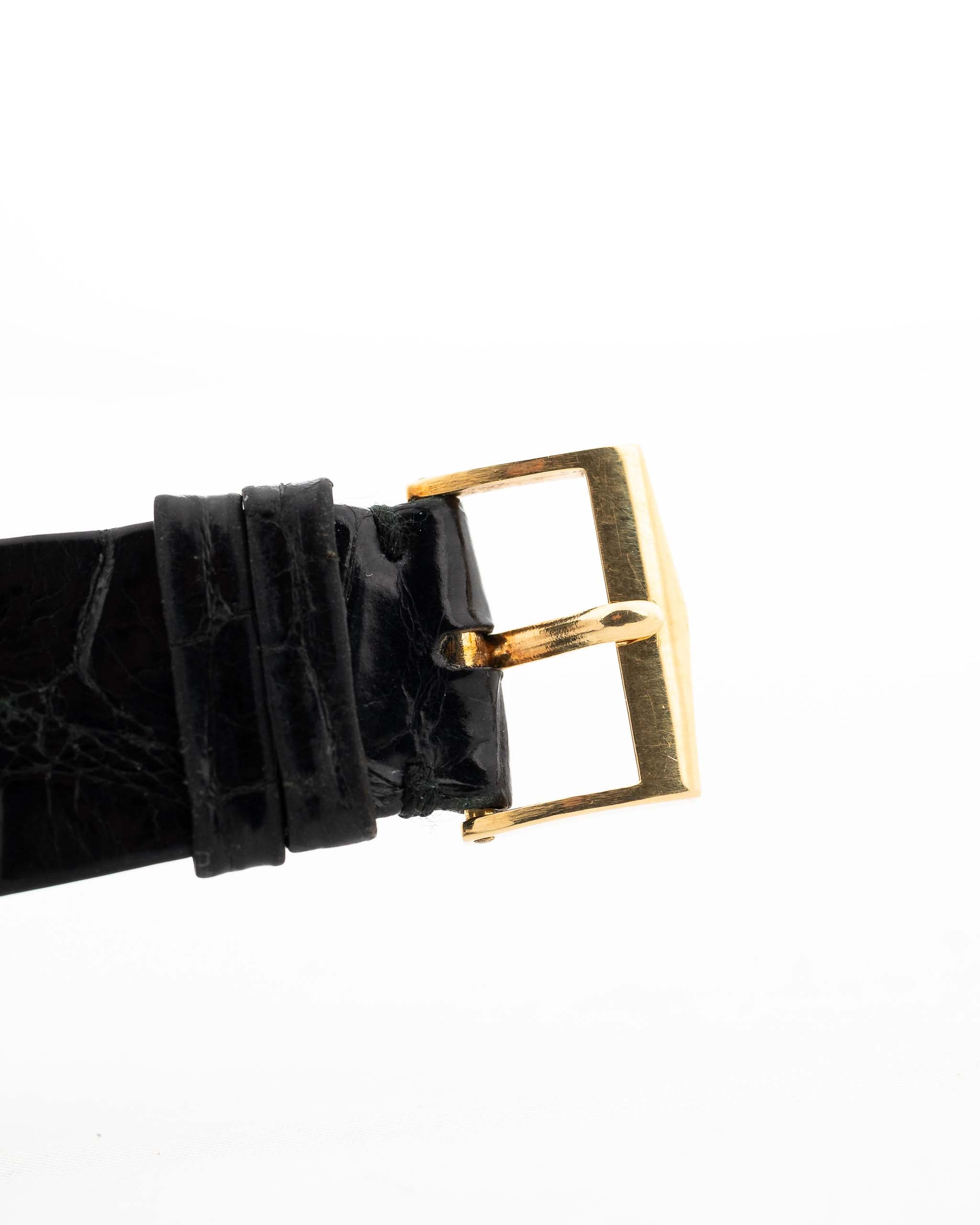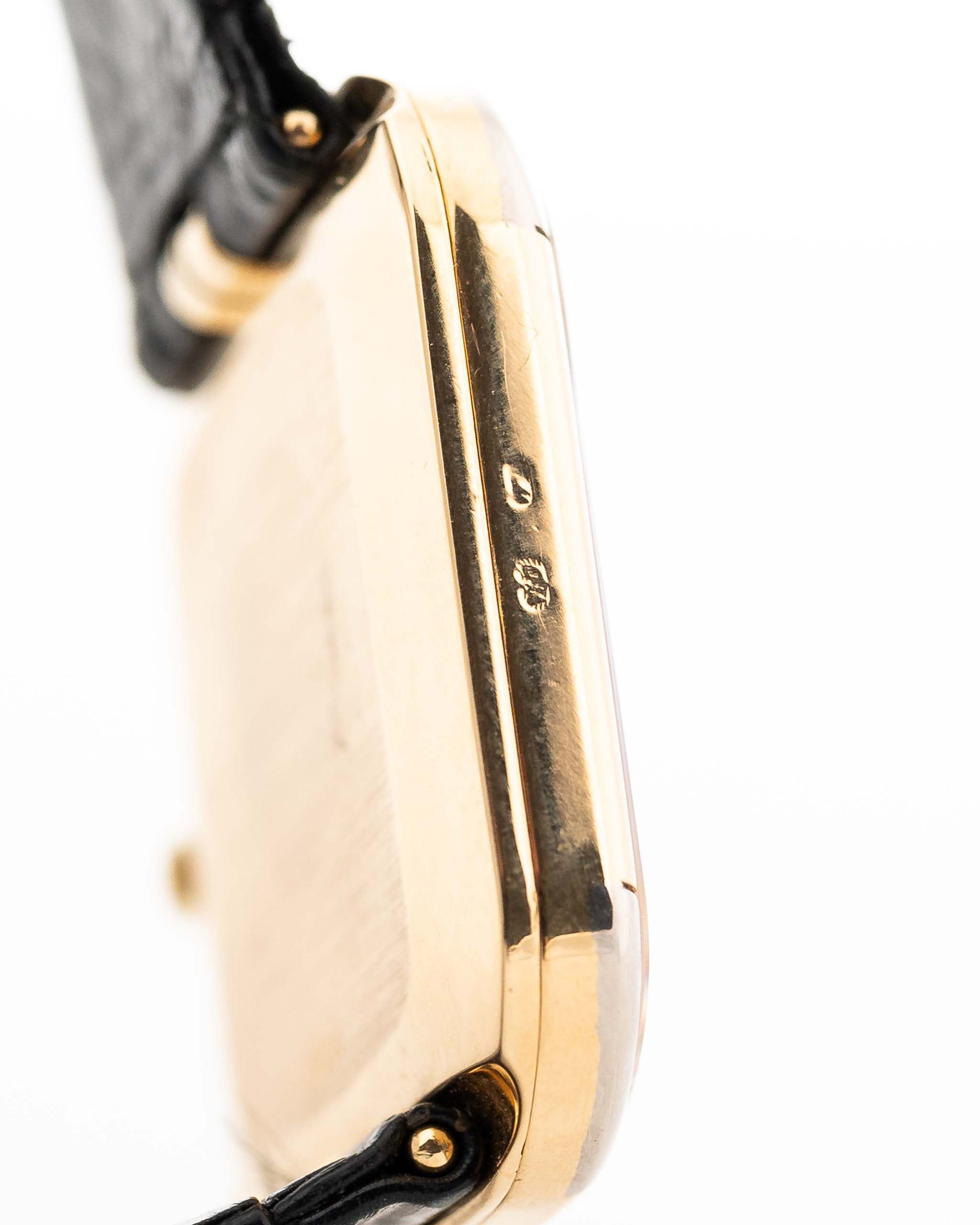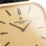 This particular piece is notable for its beautiful clean golden dial, wonderful designed hands and hour markers with onyx inlays, and a sharp 18k yellow gold case with corners in 18k white gold and comes with the original Vacheron Constantin strap and Vacheron Constantin 18k yellow gold buckle.
