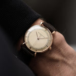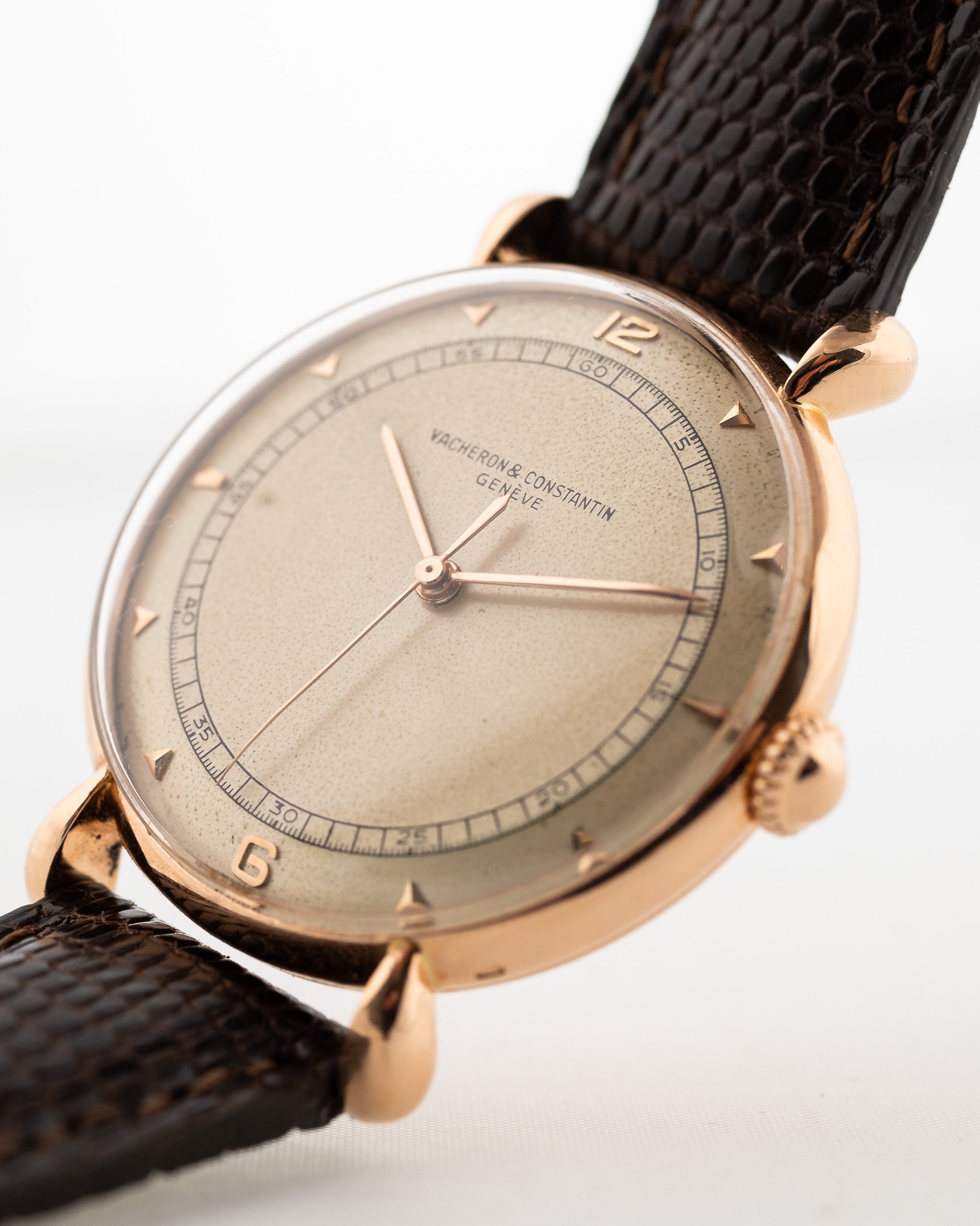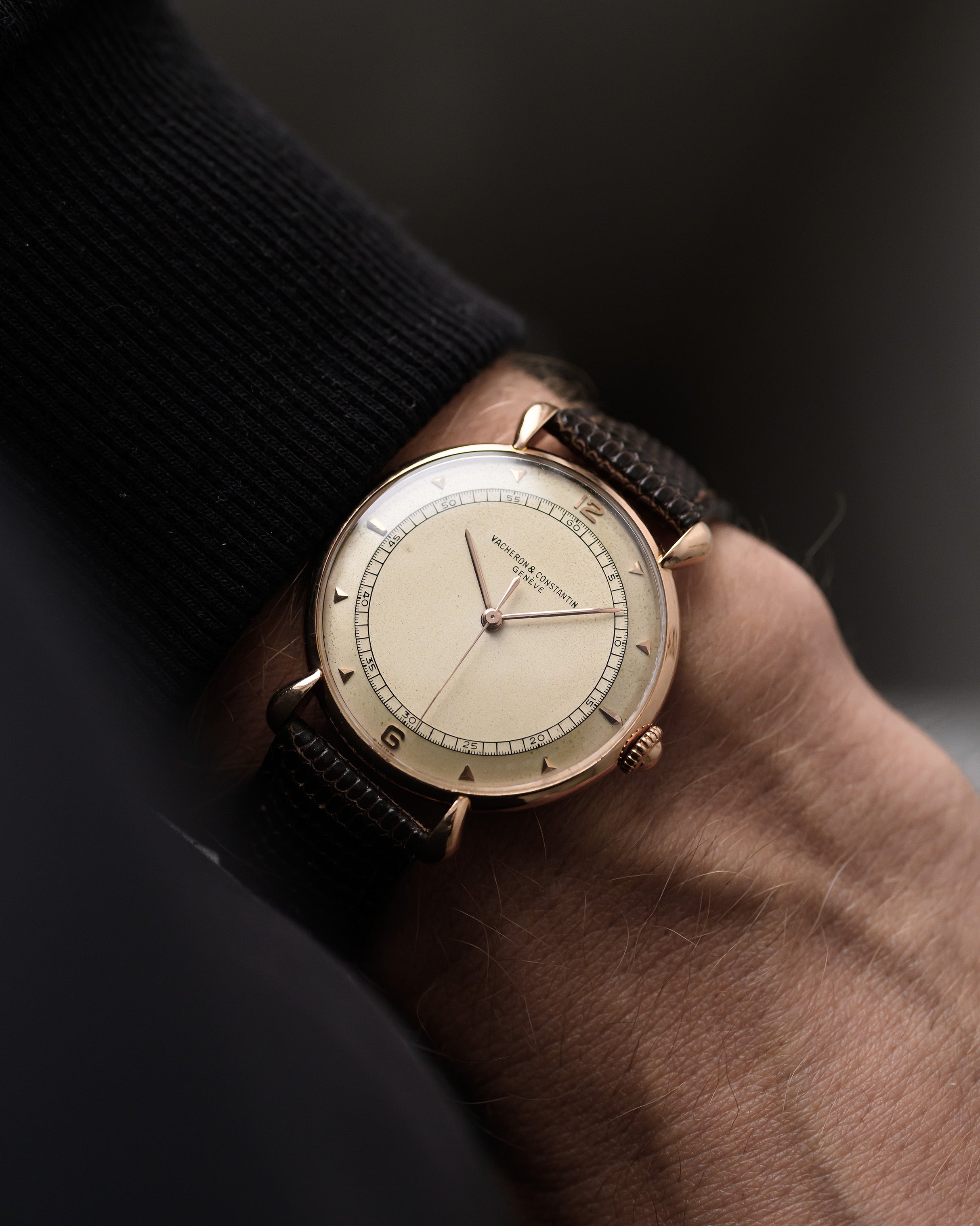 Here we have a beautifully finished Vacheron Constantin dress watch from 1950 with unique teardrop lugs and an amazingly designed dial with so many details that it's difficult to mention them all.