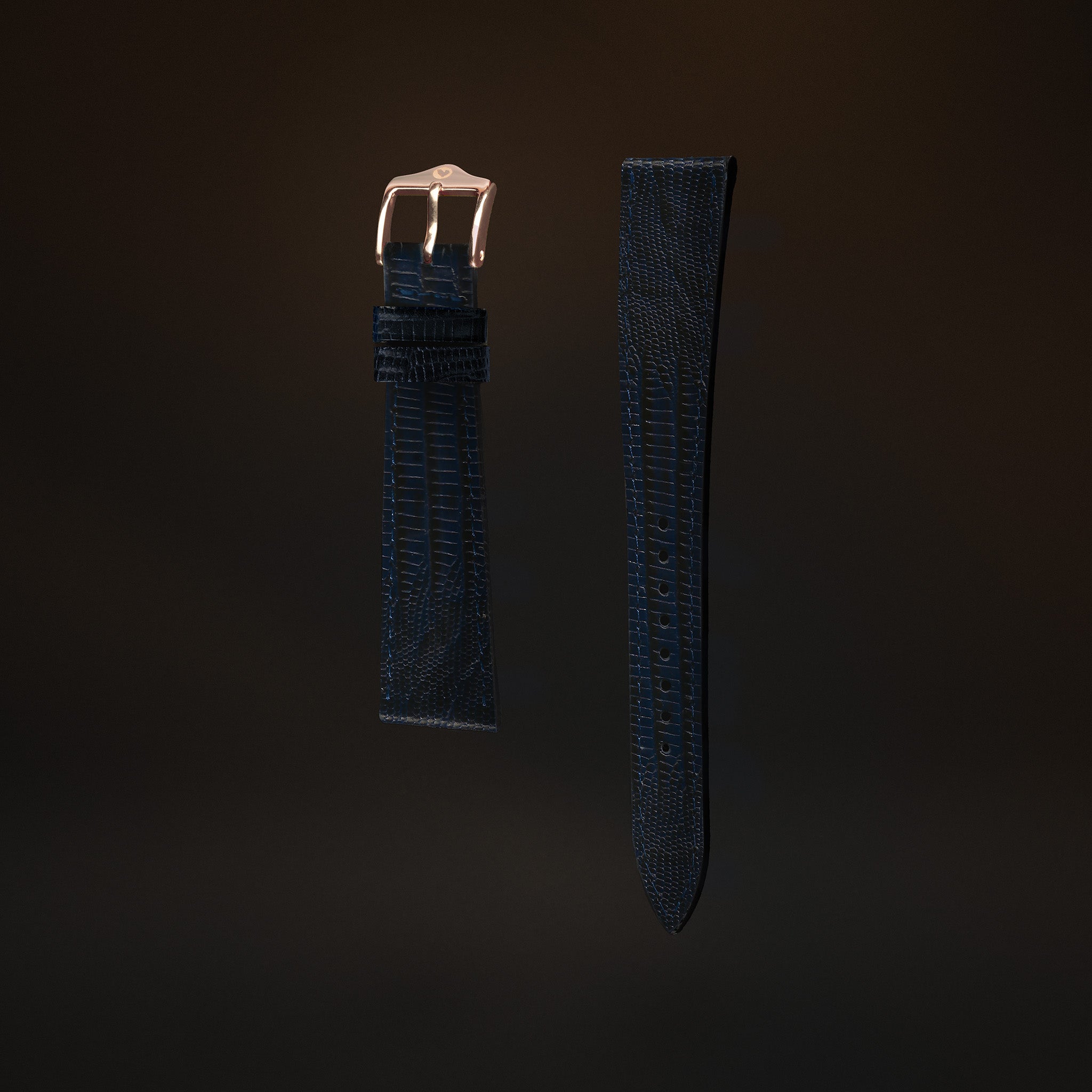 Crafted from fine italien calf leather, the embossed lizard pattern provides an exotic, shiny texture while remaining sustainable. At just 2 mm thin, it fits your wrist perfectly from the first wear. The unique tapered shape is a discreet complement and builds a well deserved frame for your classic vintage watch.
