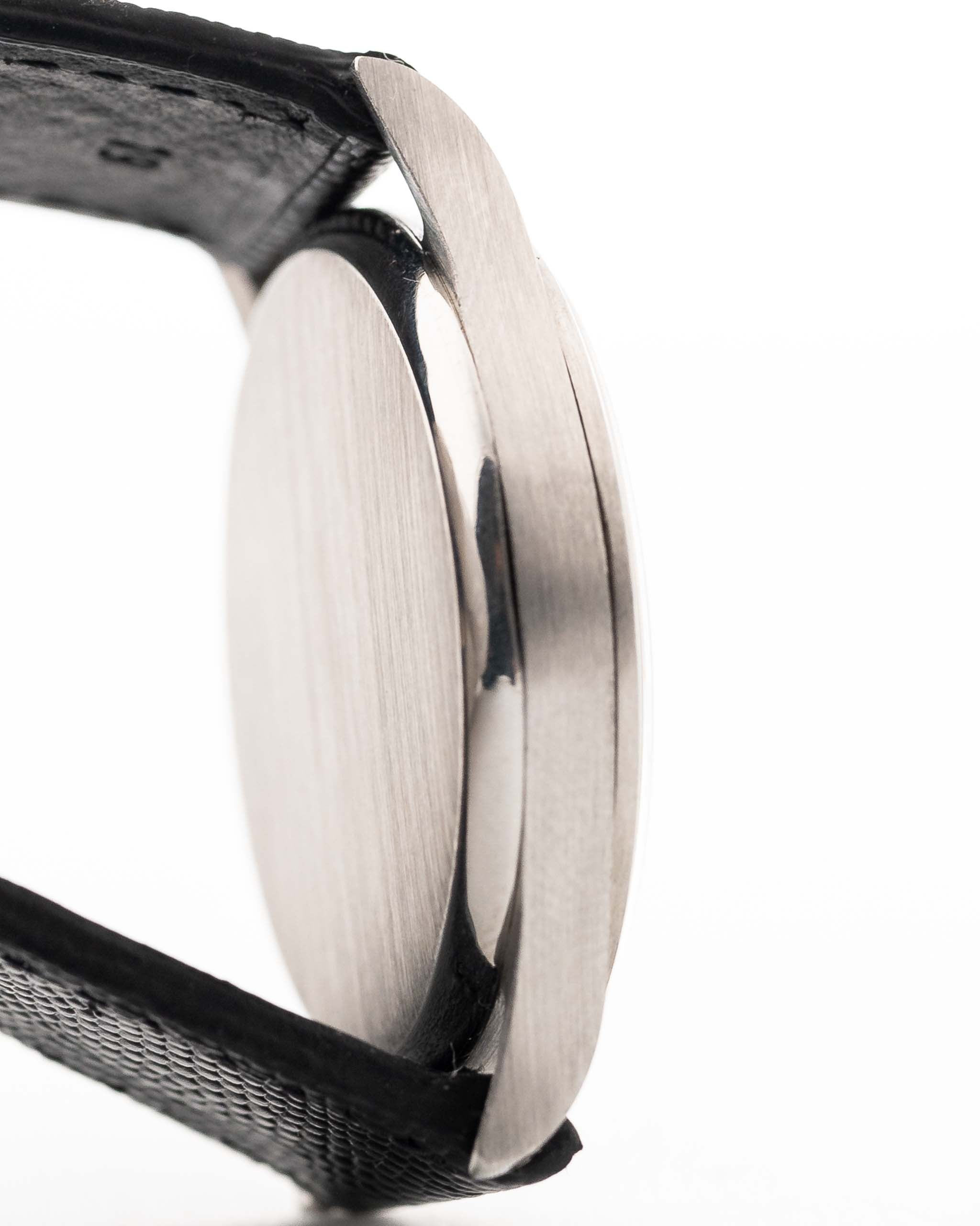 This early IWC dress watch from 1940 is a masterclass in Swiss understatement — where mechanical purity meets refined design. Its beautifully shaped downturned lugs give the stainless steel case a more sculptural presence on the wrist, and the original silver dial with sub seconds at six o’clock embodies a timeless sense of balance and symmetry.