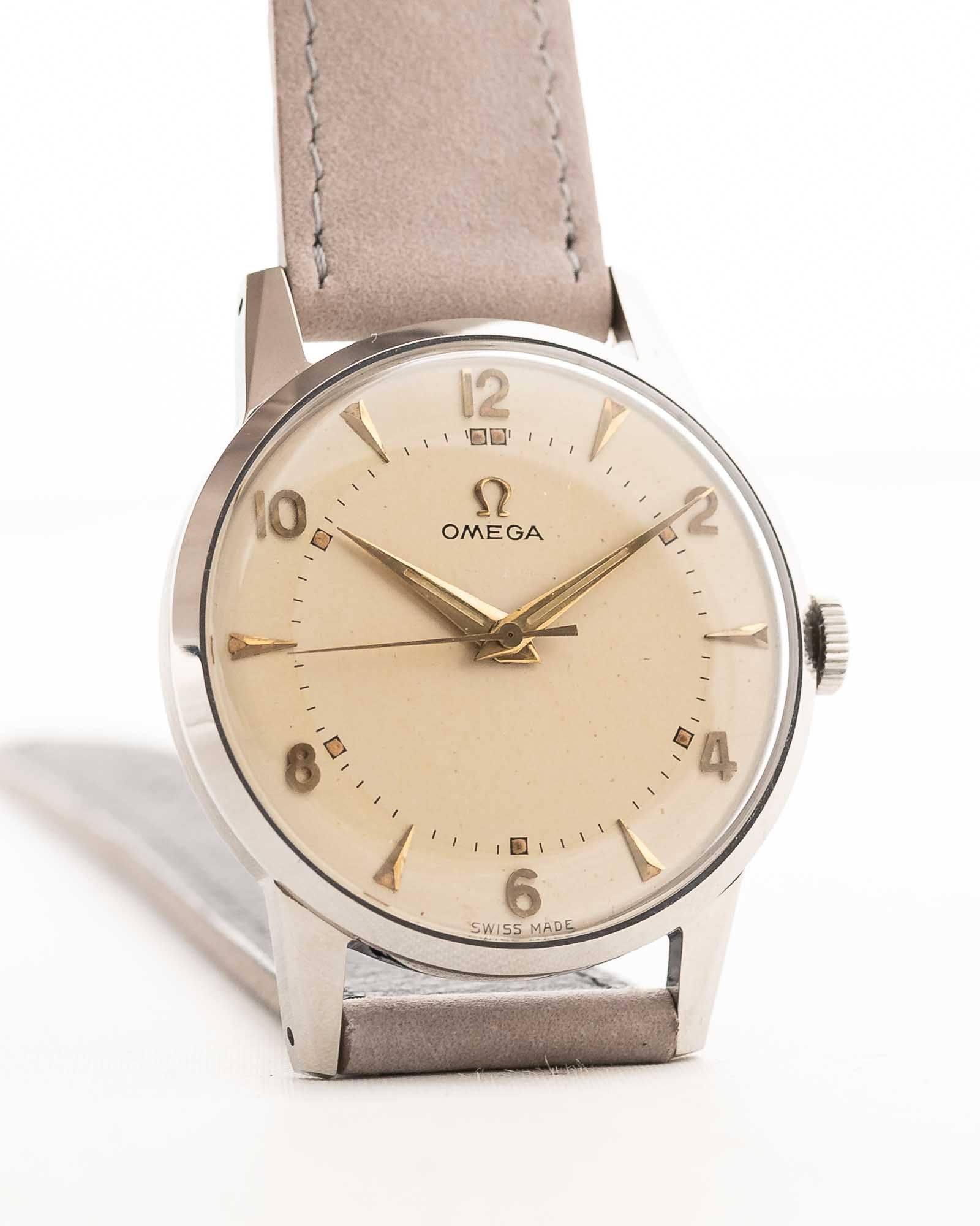 Omega 復古腕錶是工具錶的實用性與中世紀之美的完美結合。簡潔的錶盤。扭曲表耳。餡餅盤紋理。泛著懷舊光澤的指針。它們不僅是工具,更是一個世紀的運動藝術品。