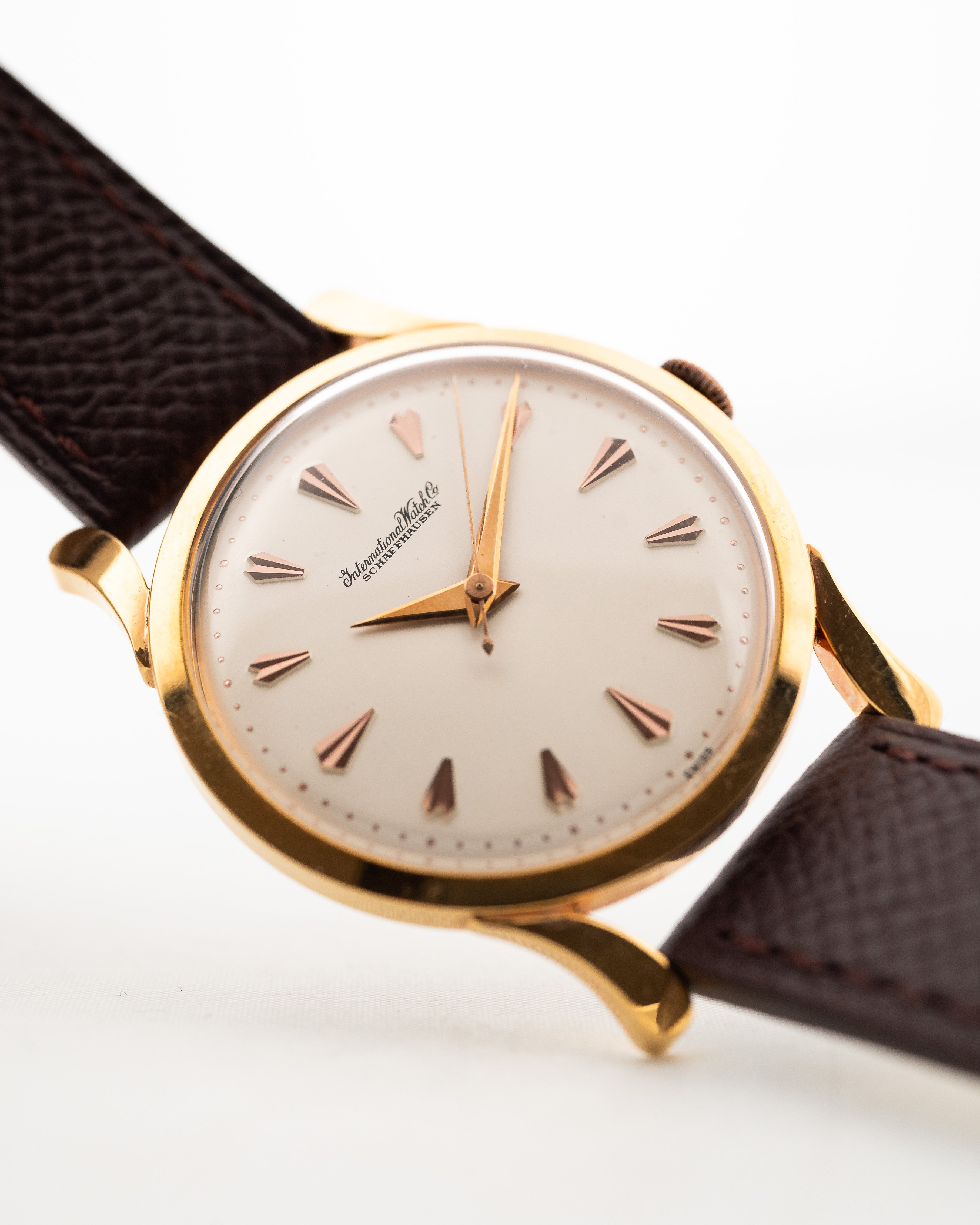 從早期開始,IWC萬國錶就生產各式各樣的腕錶,從正裝腕錶到航空腕錶,應有盡有。這枚鍍玫瑰金精鋼 Calatrava 風格腕錶配備獨特的錶耳,將成為眾人收藏的常備款式,尤其是其美麗而罕見的箭形時標,保存狀況極為完好。