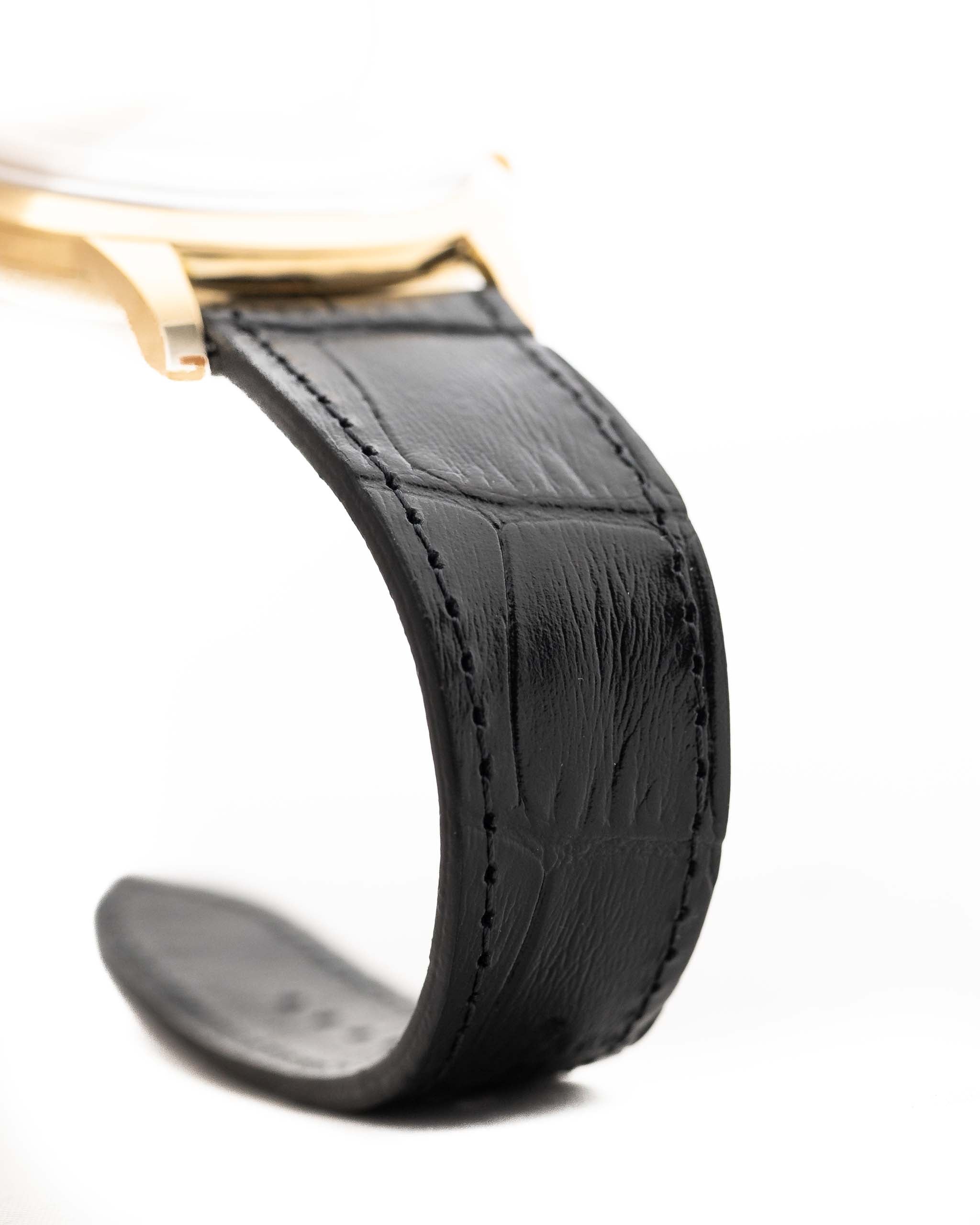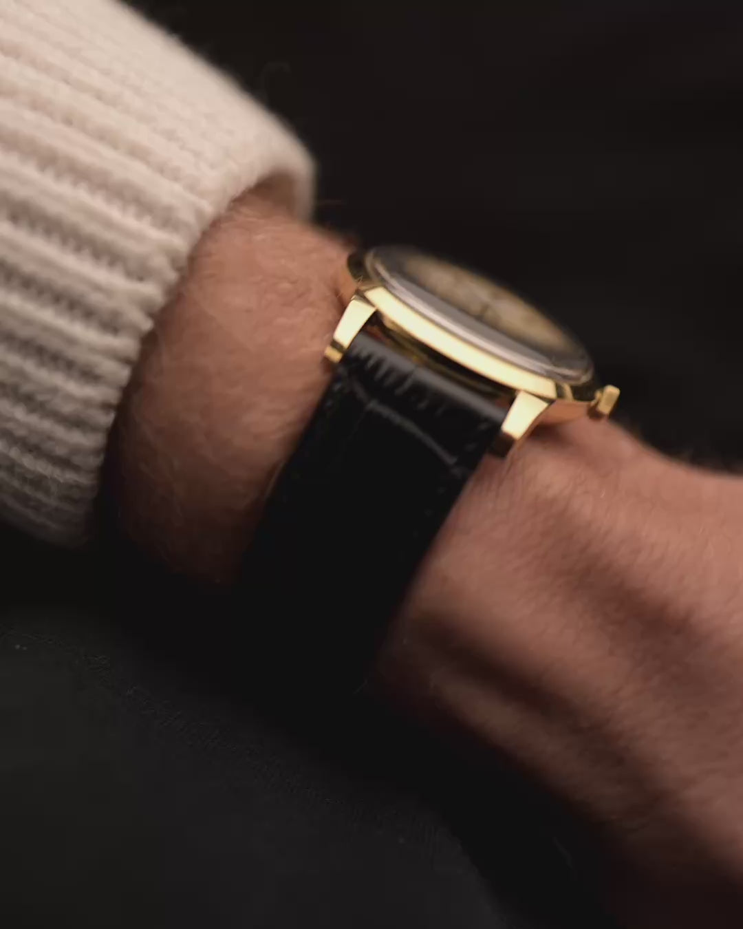 這款1952年的IWC萬國錶自動腕錶以36.5毫米18K黃金超大錶殼傲視同代。這款腕錶搭載傳奇的IWC萬國錶852機芯,是當代最受推崇的自動機芯之一,散發出永恆的優雅氣質。18K黃金搭配柔和下垂的錶耳,結合太子妃式指針和刻度,營造出腕上均衡優雅的輪廓。