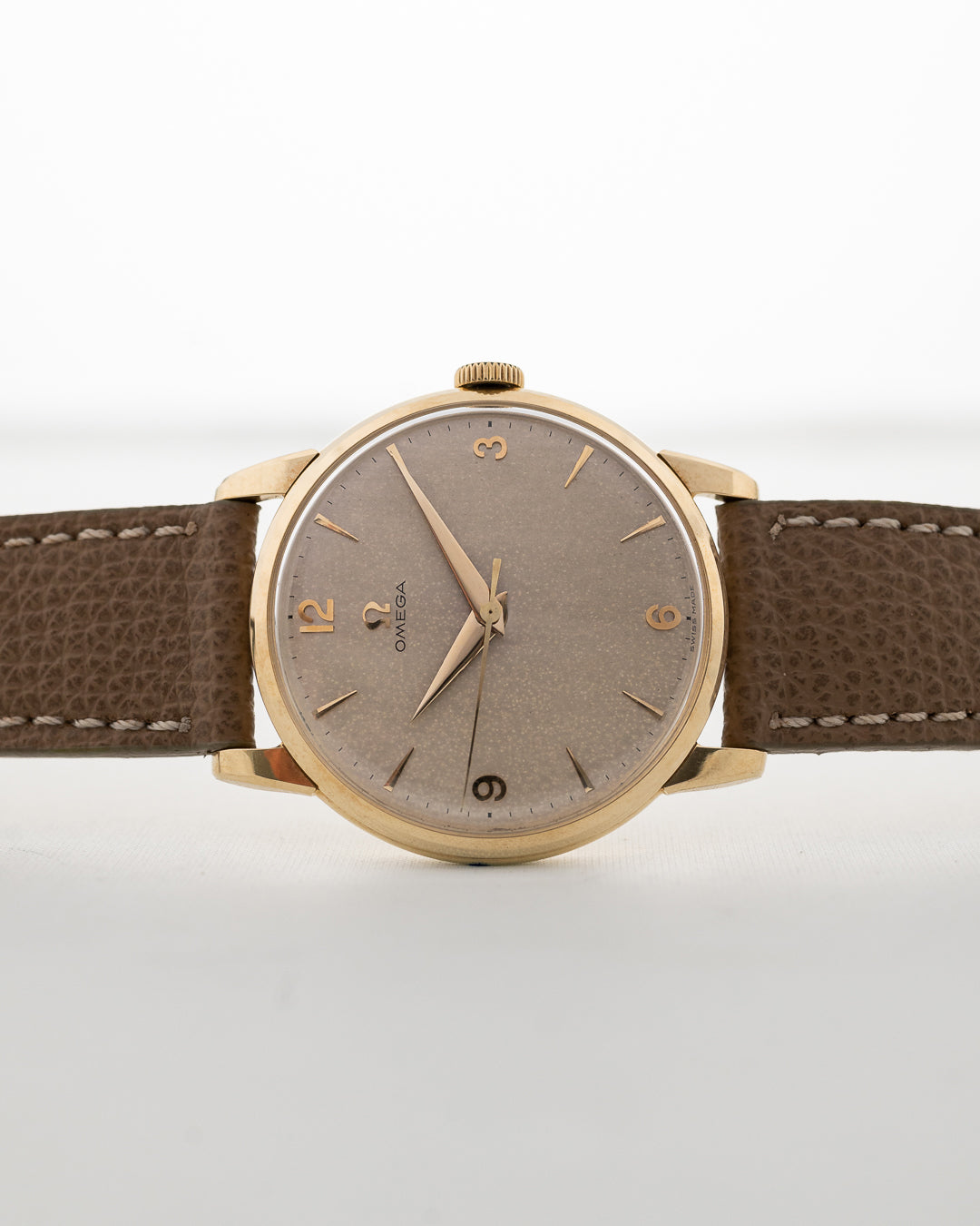 這款腕錶不僅美觀,而且實用。配備 35mm 14K 黃金錶殼、大膽的錶耳、華麗的奶油色錶盤,整個錶盤均呈現令人驚嘆的均勻銅綠色澤。