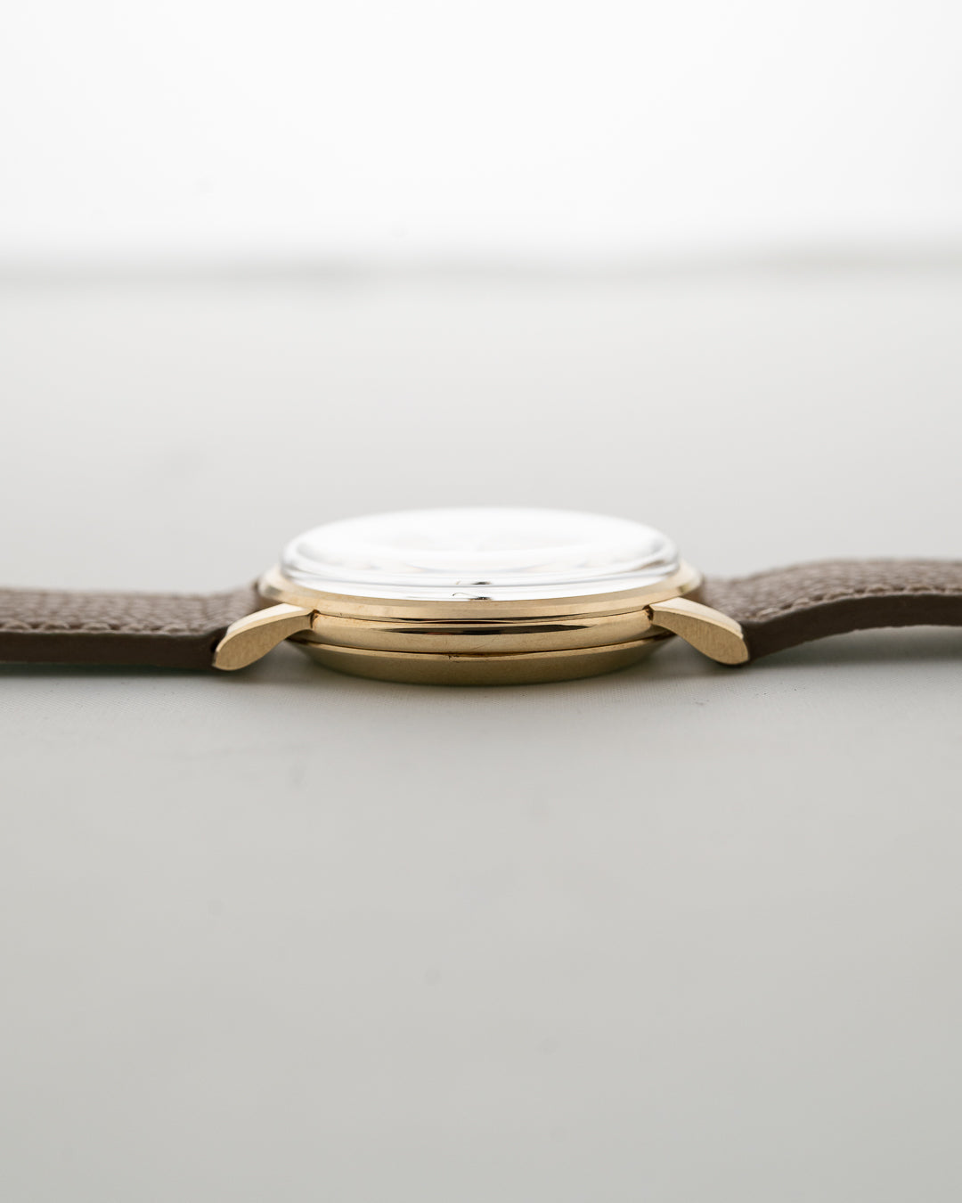 • 3- 機身 14K 黃金錶殼,搭配按扣式錶背