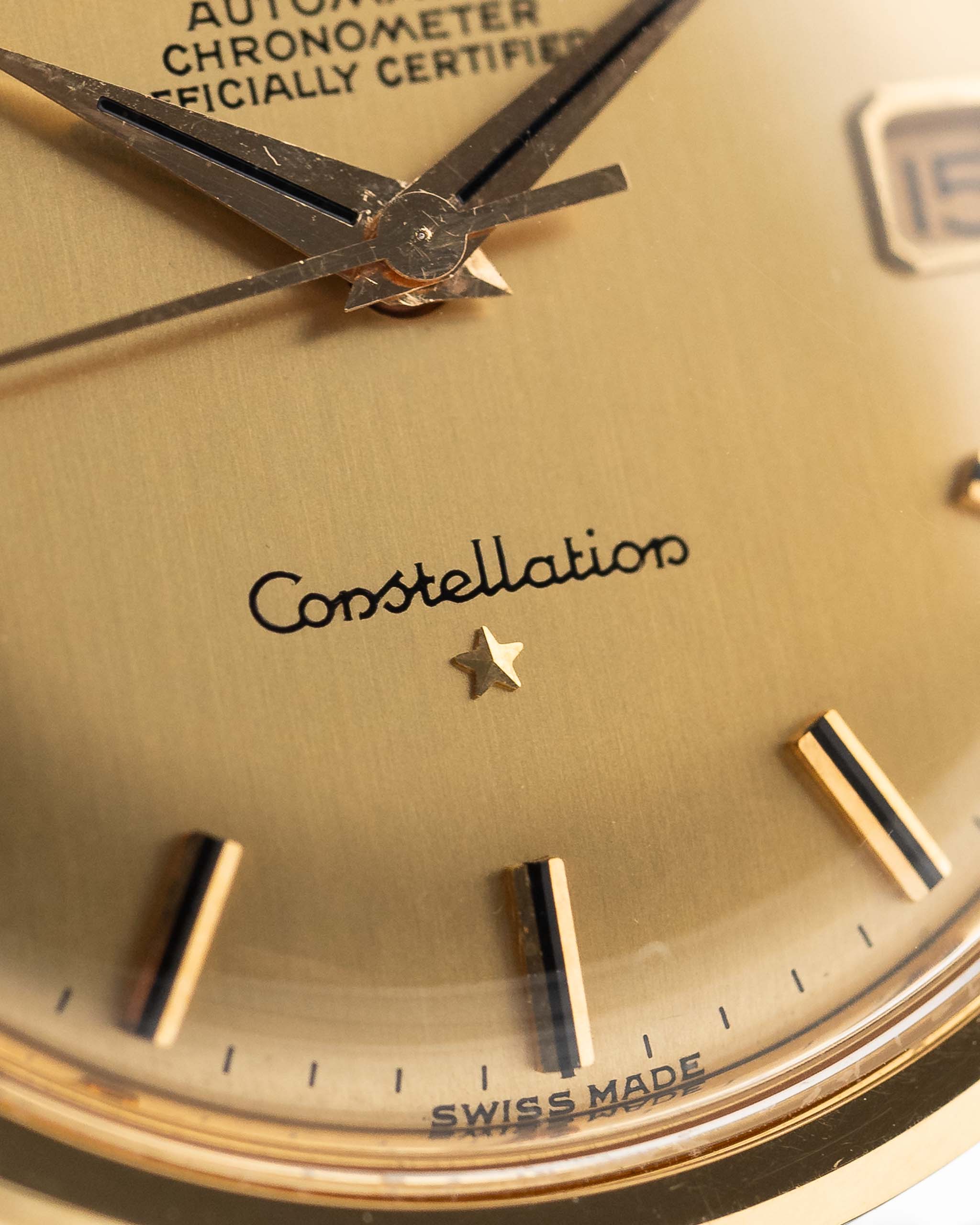 Omega Constellation 168004 Date Onyx 1966 黃金錶盤特寫