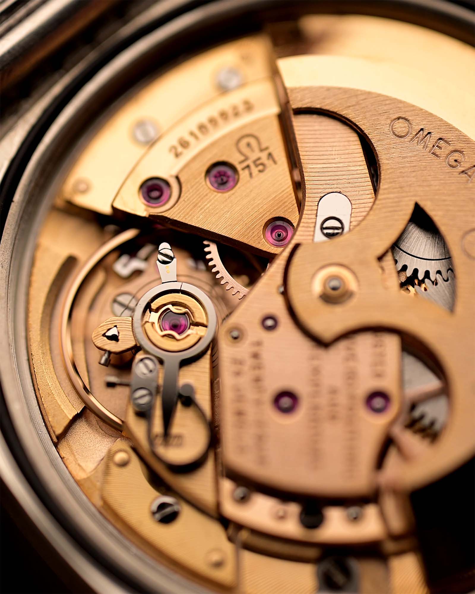 在錶內,您可以找到經瑞士官方天文台認證的 Omega Caliber 751 機芯,這是一款堅固耐用的自動機芯,以其可靠性和流暢的日期顯示功能而著稱。