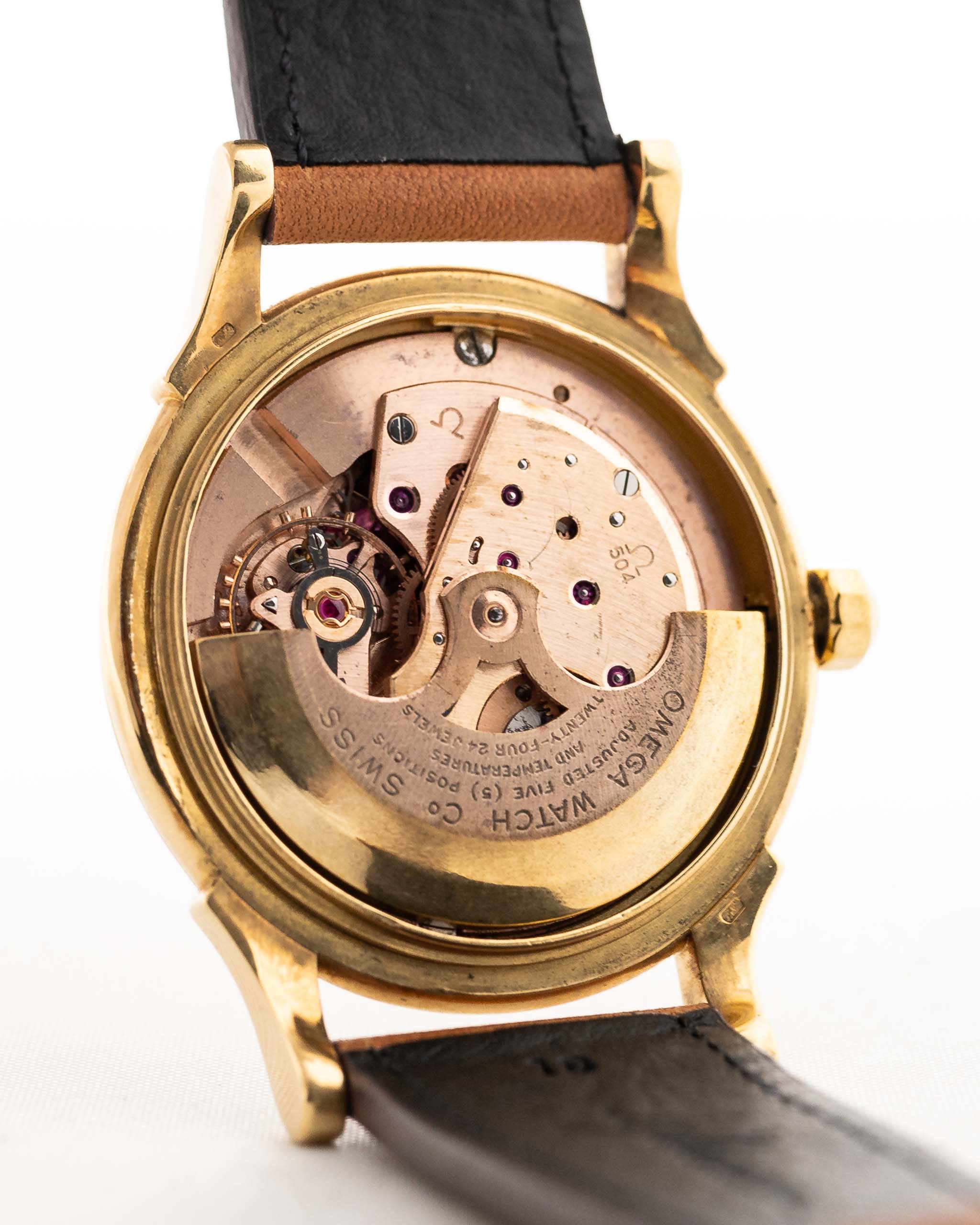 比例勻稱、簡潔而經典,這款 Constellation 配備旋入式錶背、Omega 504 自動天文台機芯、微微下翻的錶耳以及非常罕見的 18K 全玫瑰金錶盤。