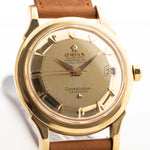 這款精巧美麗的 Omega Constellation De Luxe Calendar 自動天文台表擁有您對正裝腕錶的一切要求:35 mm 18K 黃金錶殼、中央秒針、非常美麗的 Pie Pan 錶盤和罕見的箭形棒狀時標。星座系列於 1952 年首次推出,是 Omega 對 Rolex Datejust 的回應。