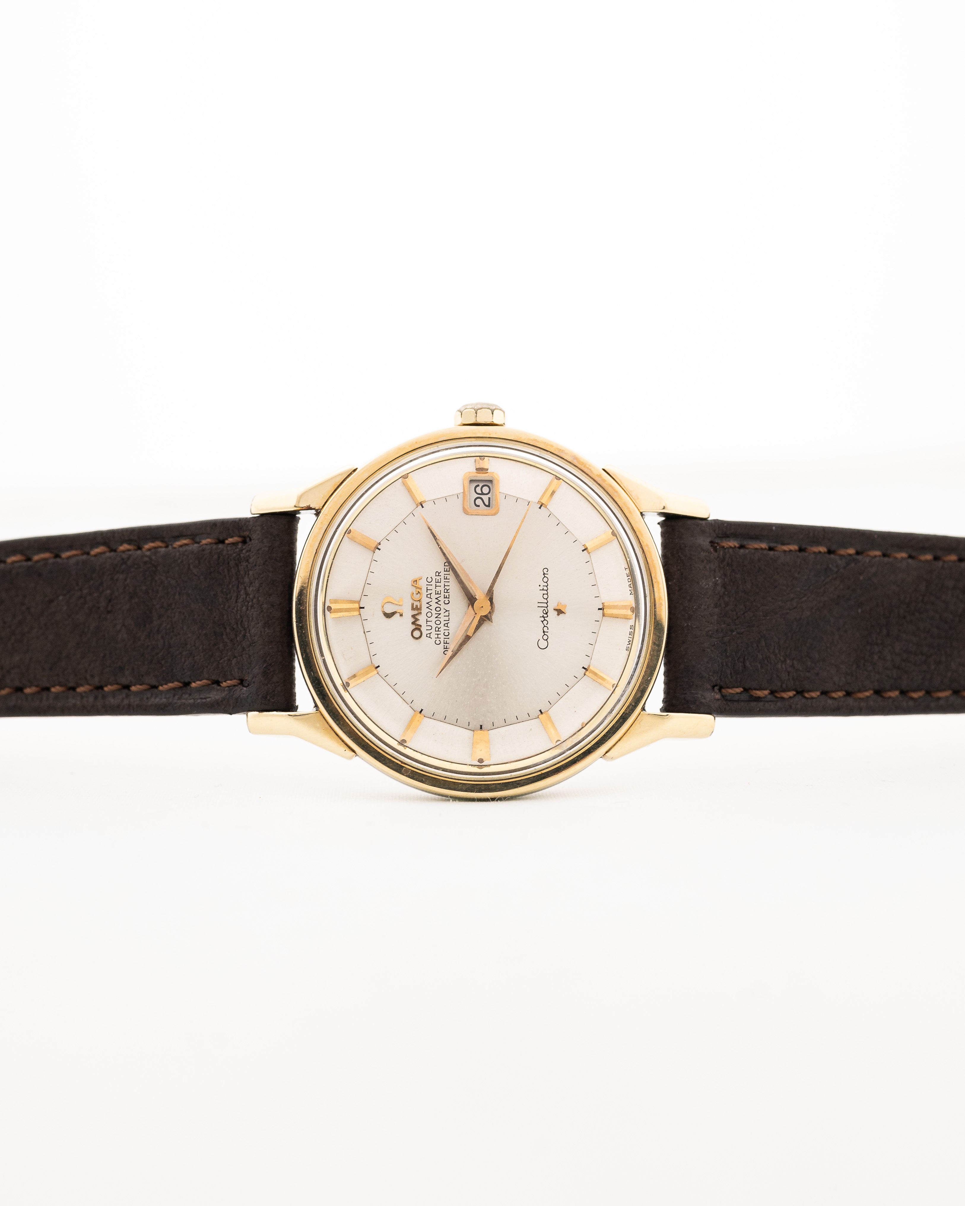 比例勻稱、簡潔而經典,這款 Constellation 配備旋入式錶背、Omega 561 自動天文台機芯和微微下翻的錶耳。