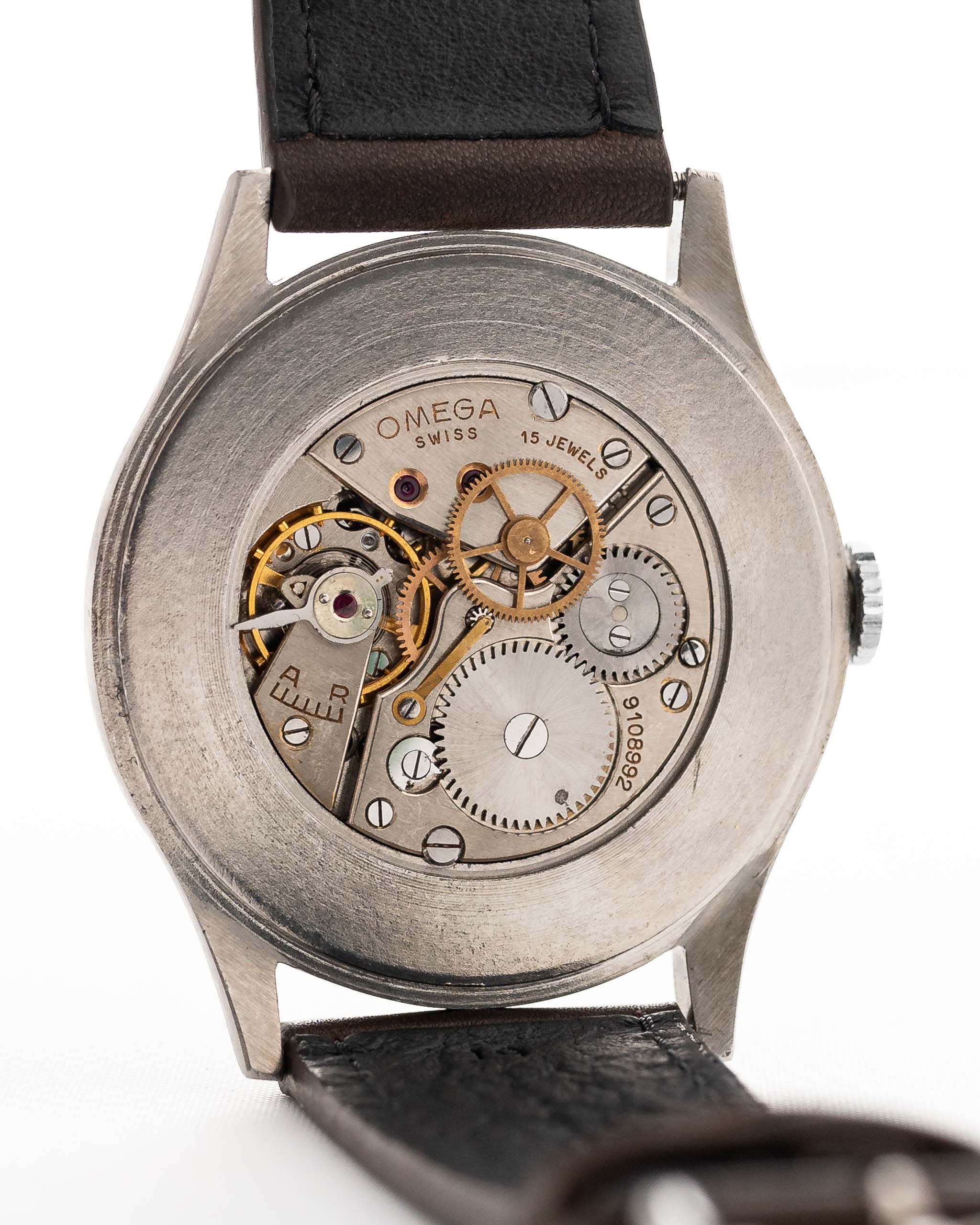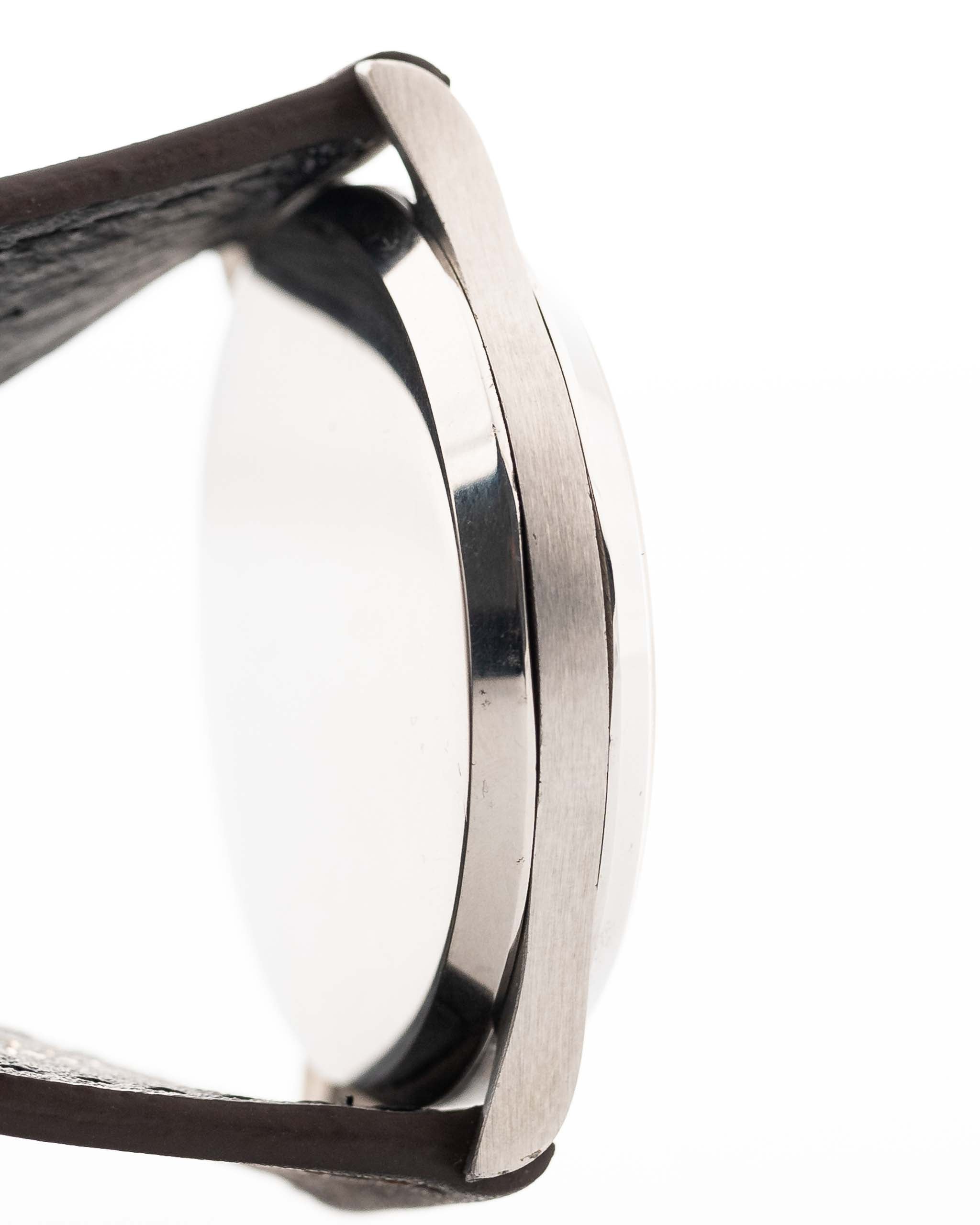 這並不是我們愛上的第一款 1930 年代的 Omega。這款腕錶擁有 37.5 毫米的超大精鋼錶殼,華麗的阿拉伯數字錶盤佈局和 Pontife 時針使其更具吸引力。