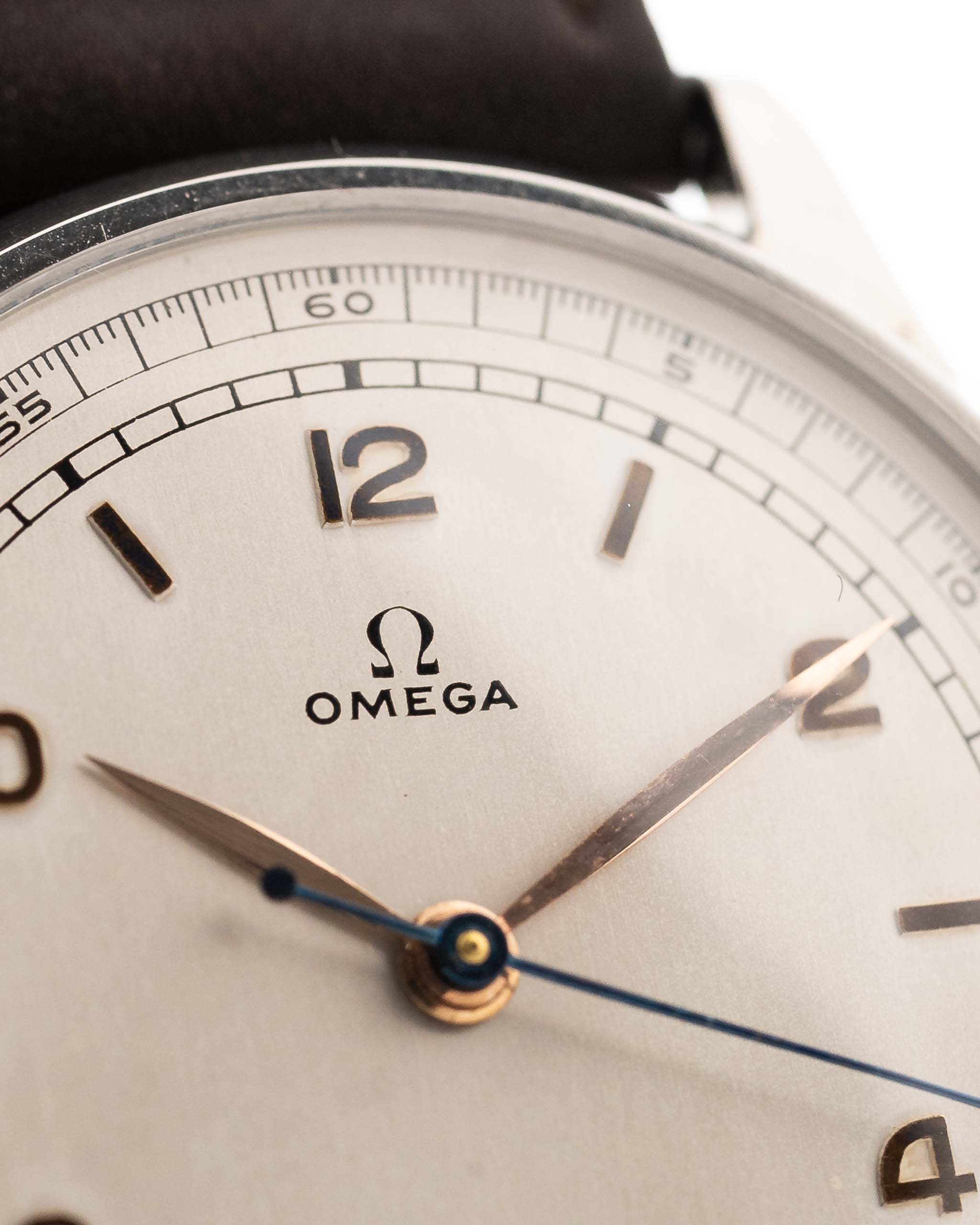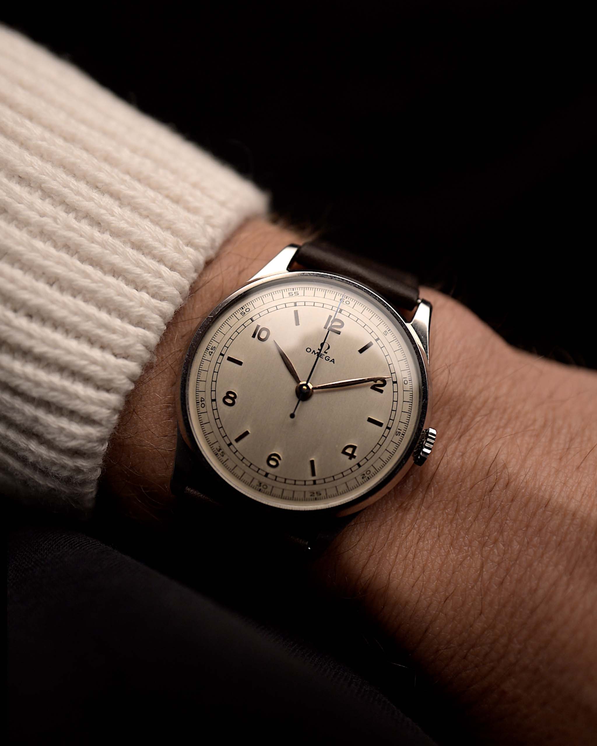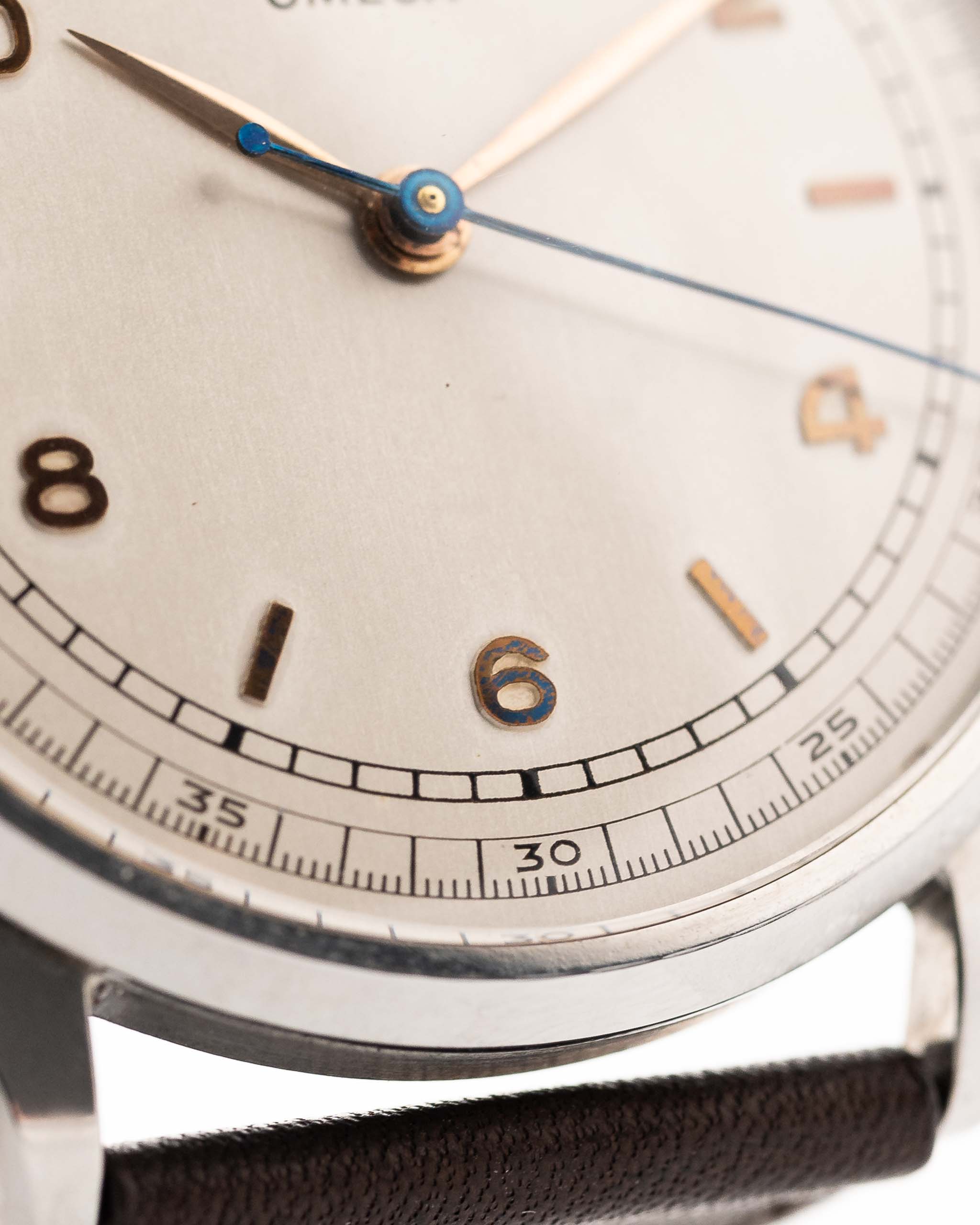 這並不是我們愛上的第一款 1930 年代的 Omega 腕錶。這款腕錶擁有 37.5 毫米的超大精鋼錶殼,華麗的錶盤佈局搭配玫瑰數字和美妙的玫瑰葉指針,使其更具吸引力。
